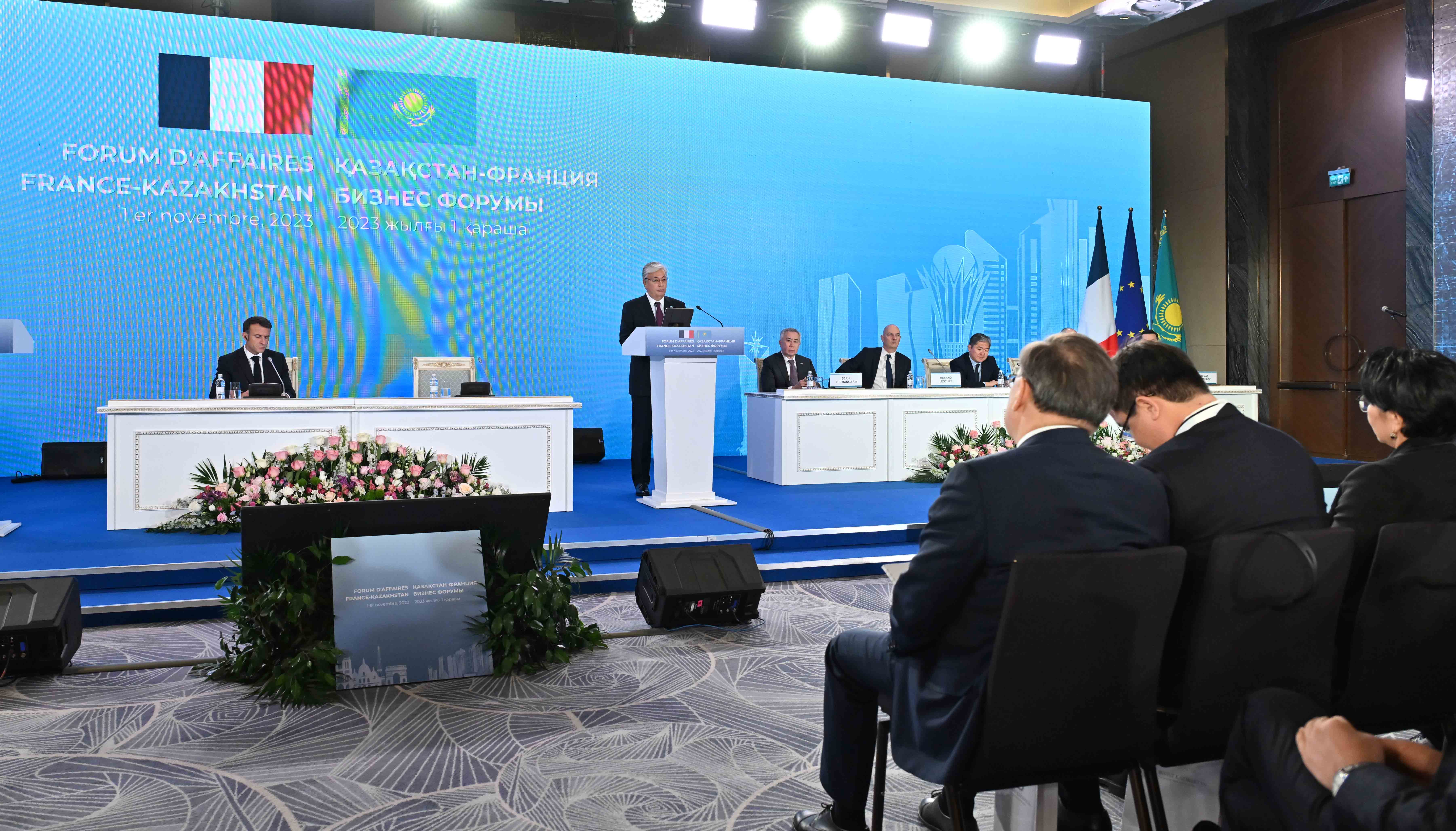 Мемлекет басшысы Қасым-Жомарт Тоқаев пен Франция Президенті Эмманюэль Макрон қазақ-француз бизнес-форумының ашылуына қатысты.