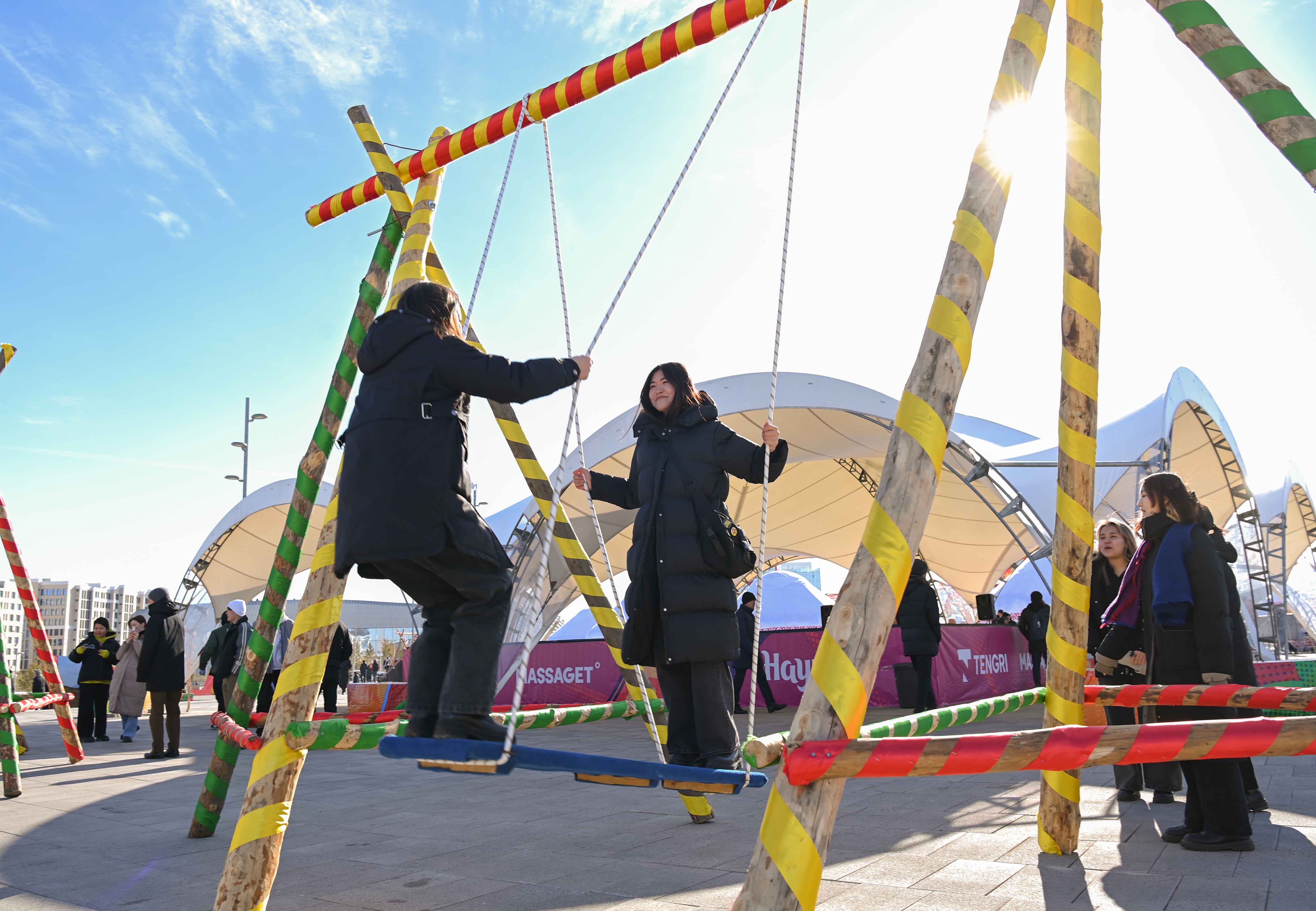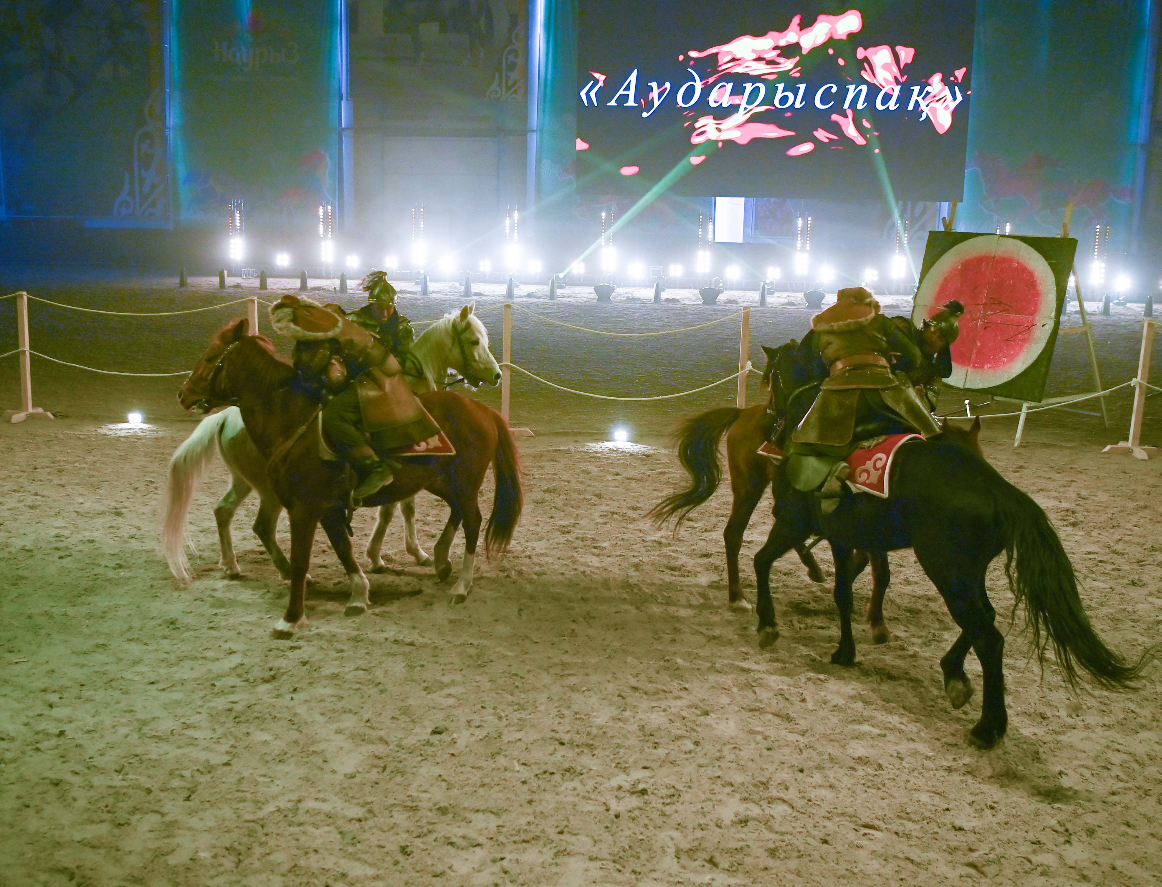 Сондай-ақ Мемлекет басшысы Nomad Stunts тобының өнерін тамашалады. Каскадерлер аударыспақ, қыз қуу, теңге ілу, садақ ату сияқты ұлттық ойын түрлері мен көшпенділердің әскери шеруін көрсетті.