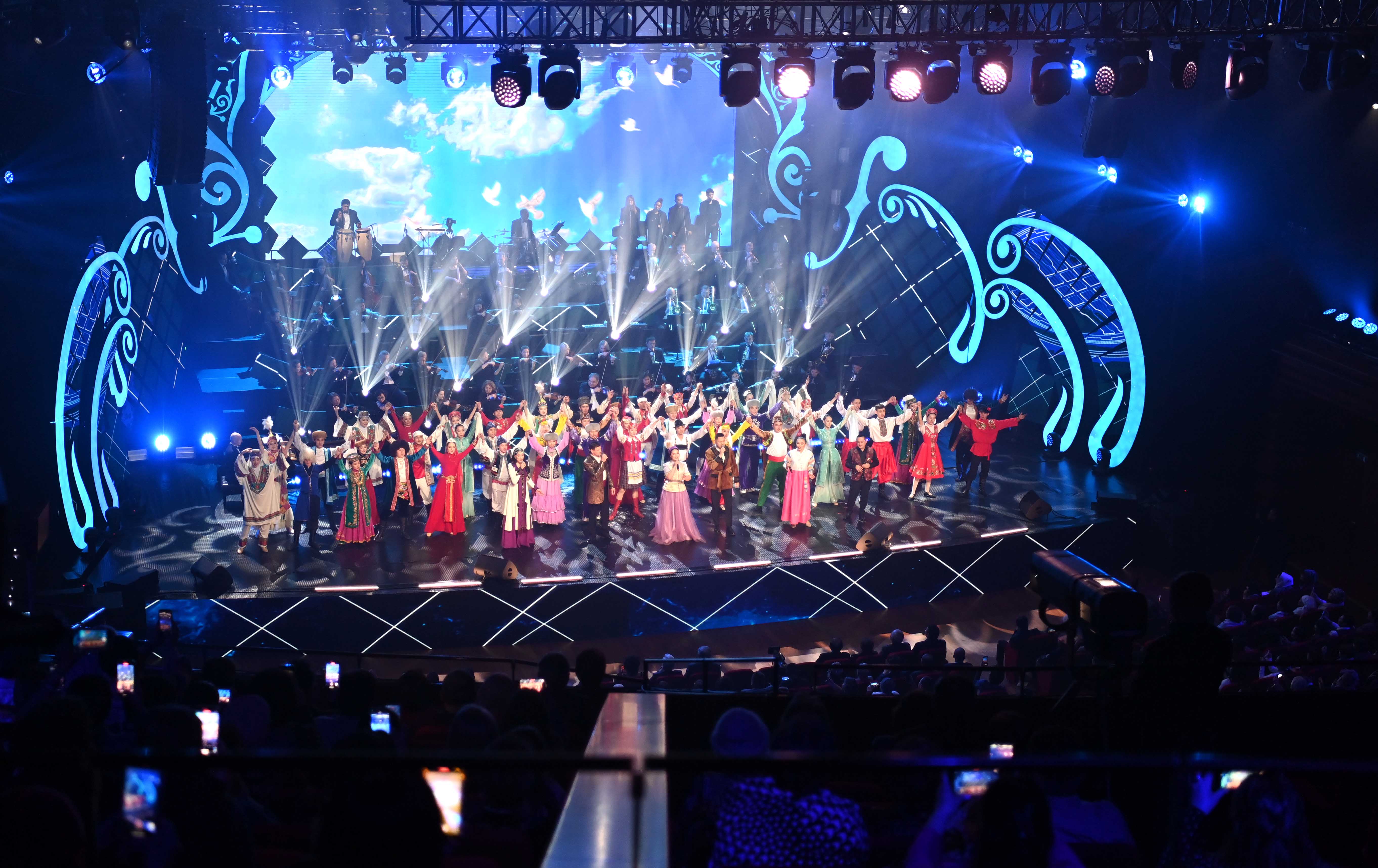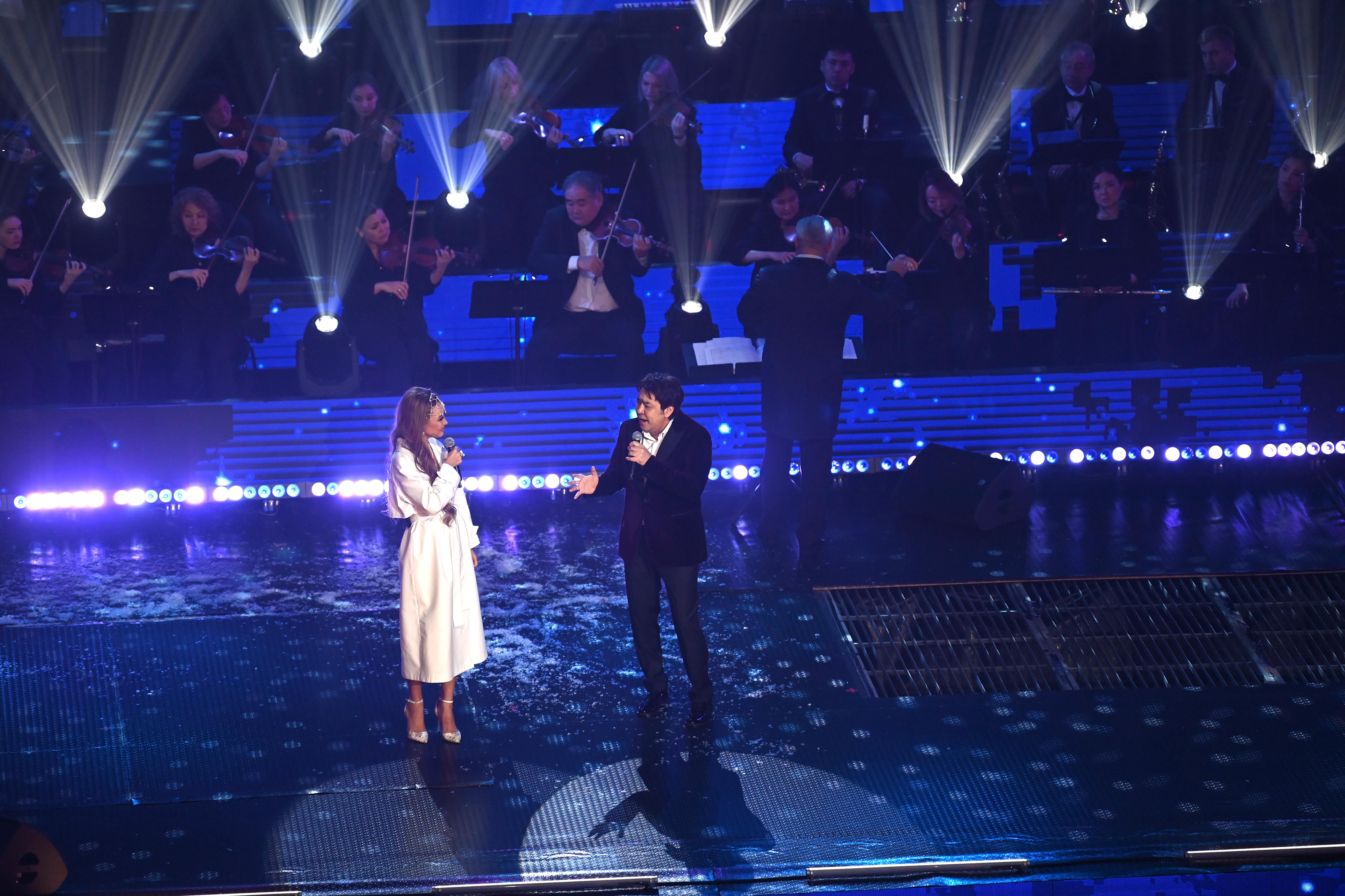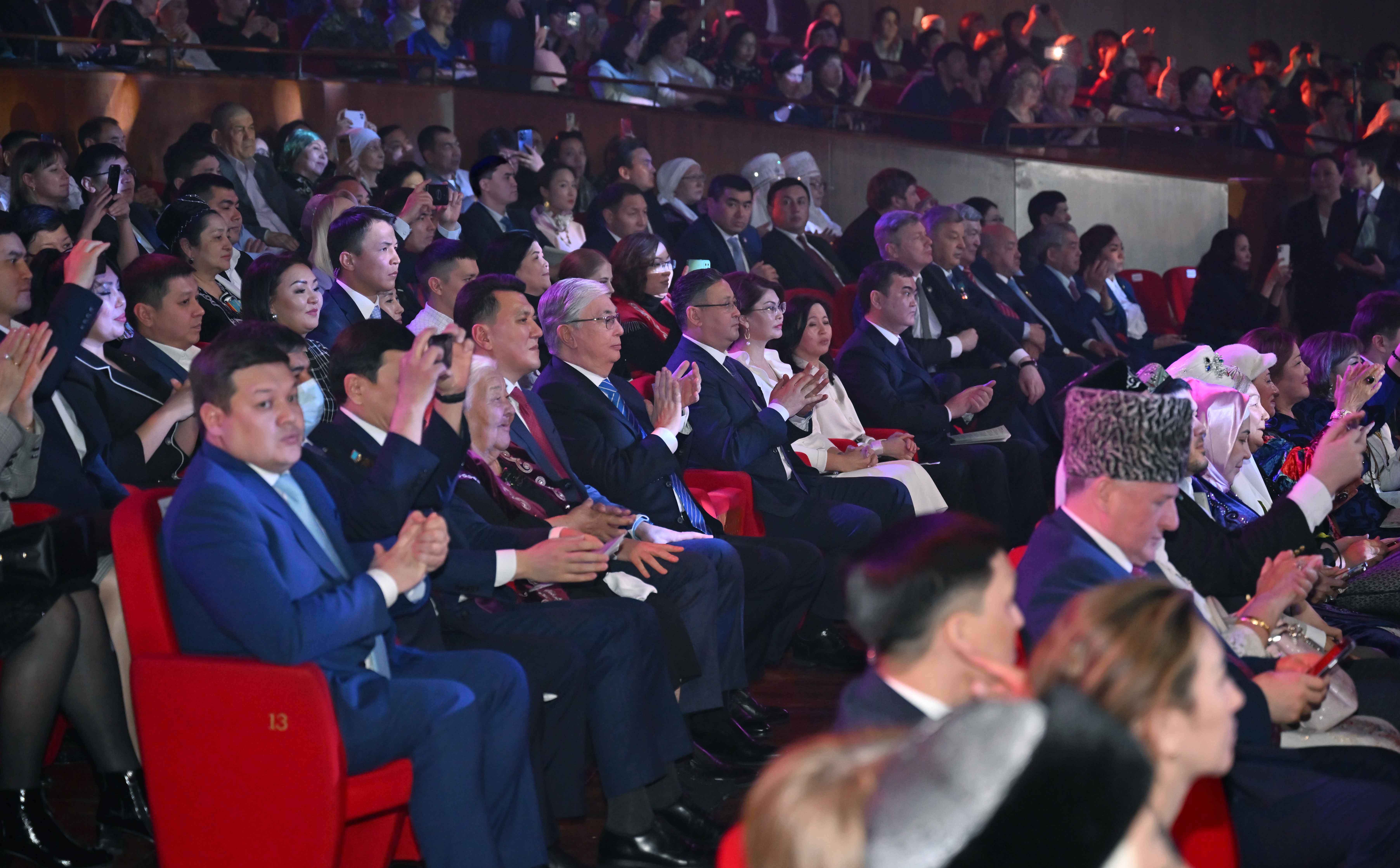 Сонымен қатар Мемлекет басшысы Шәмші Қалдаяқовтың шығармашылығына арналған отандық өнер жұлдыздарының концертін тамашалады.