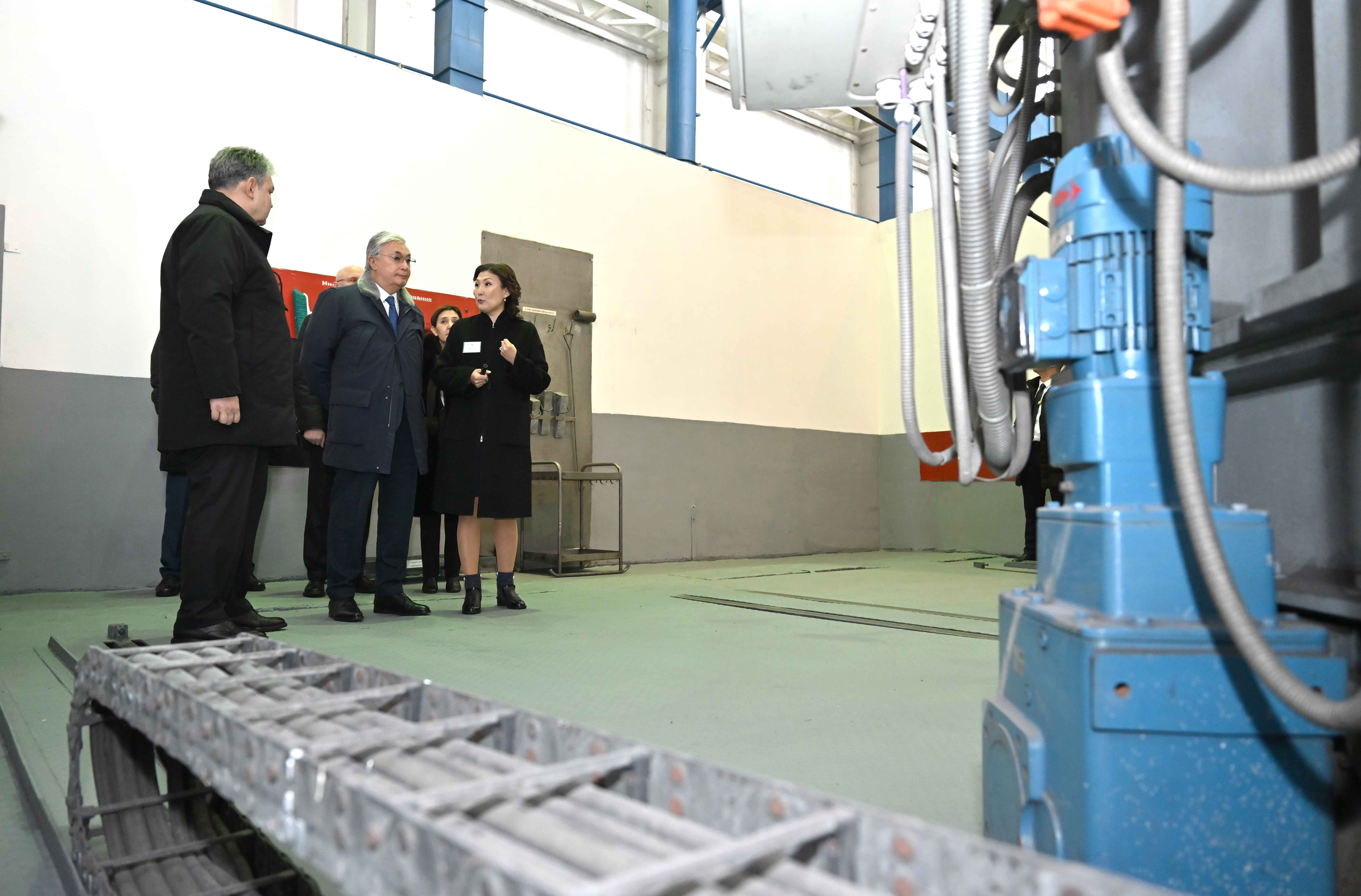 Сонымен қатар Қасым-Жомарт Тоқаев өндіріс цехтарын аралап көріп, комбинат жұмысшыларымен әңгімелесті.