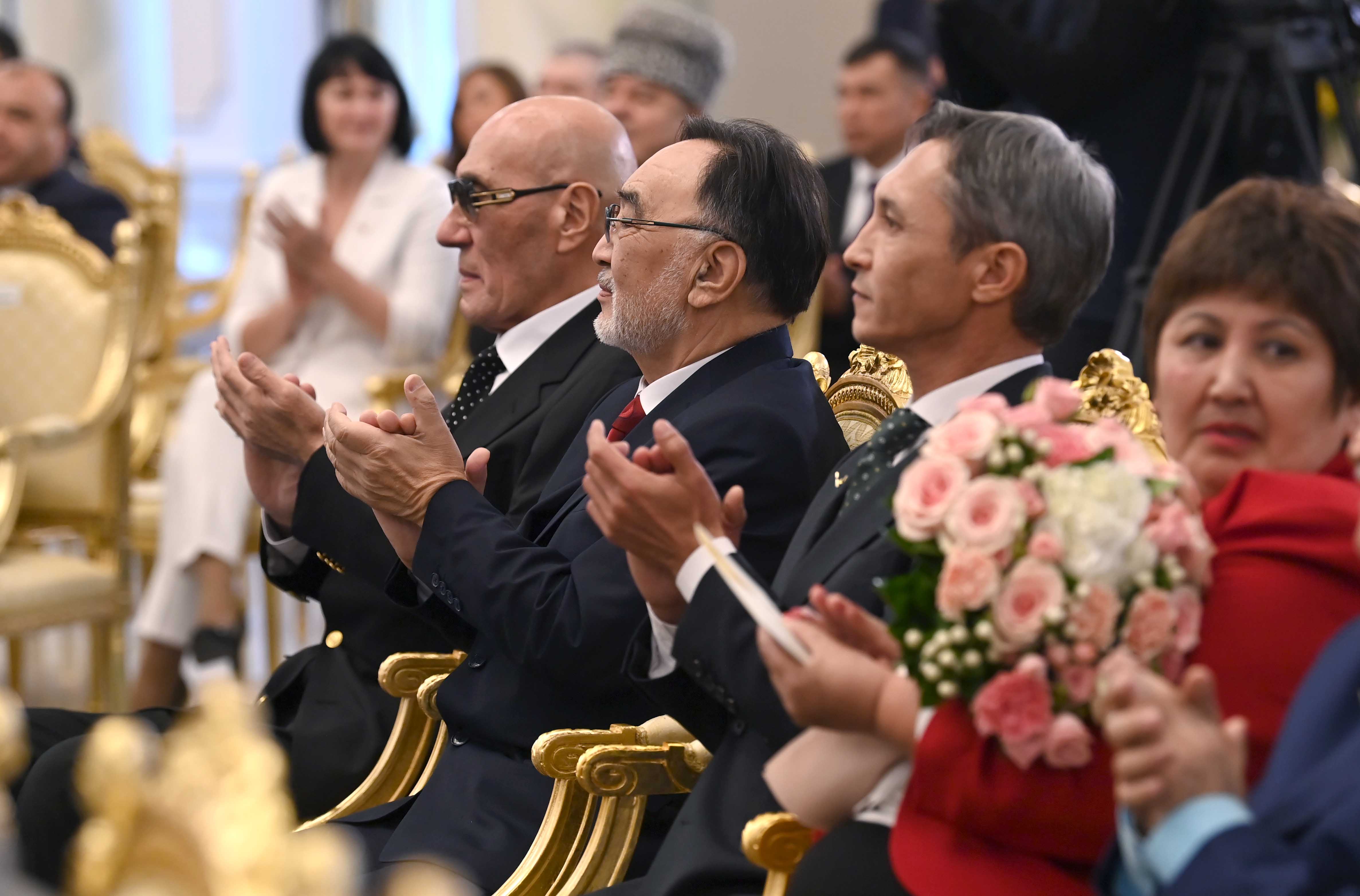 Президент сөзін қорытындылай келе, еліміздің дамуына елеулі үлес қосқан бір топ азаматқа жоғары мемлекеттік наградалар, сыйлықтар мен атақтар табыс етті.