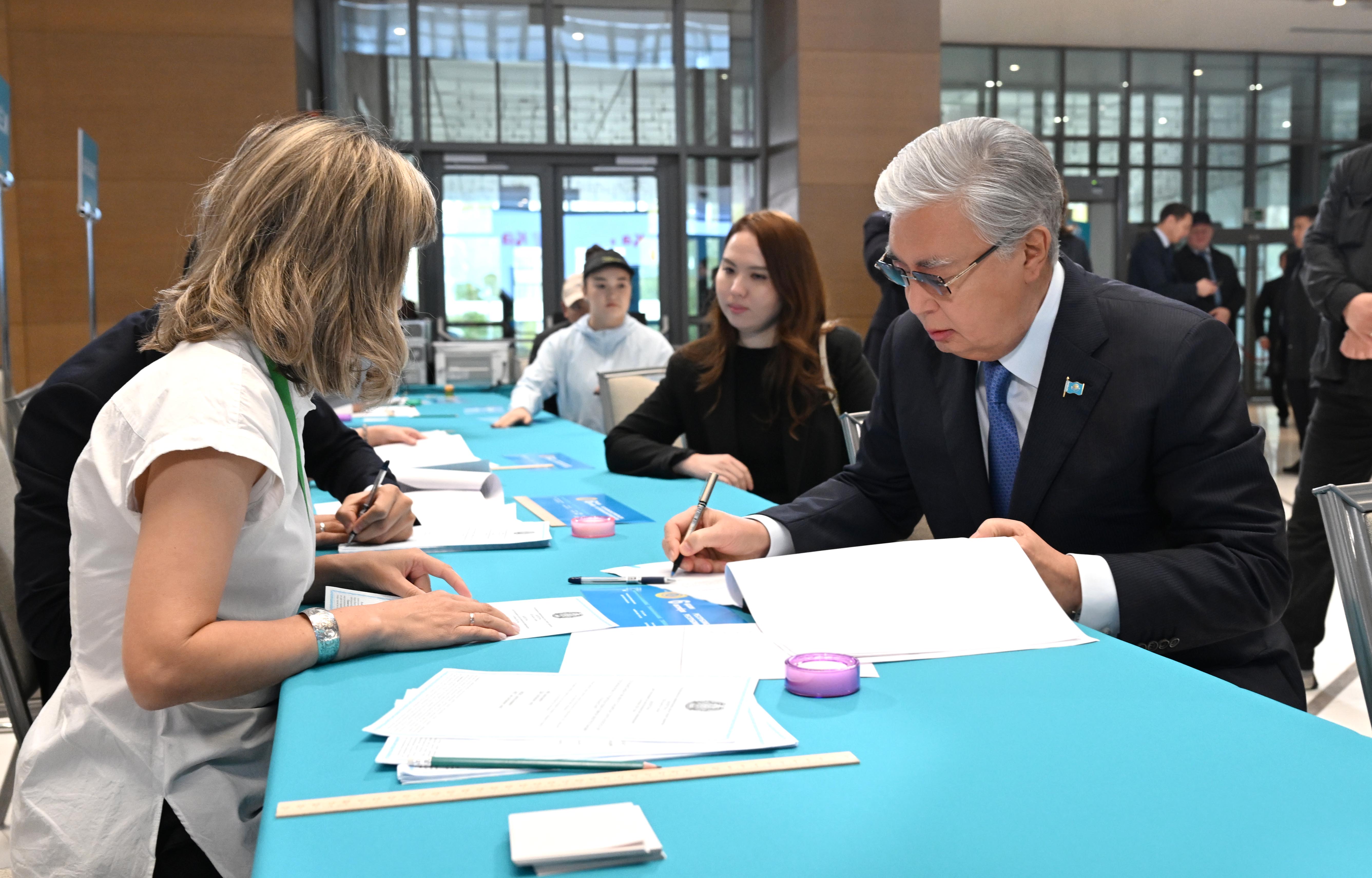 Қасым-Жомарт Тоқаев Президент орталығында орналасқан №211 референдум учаскесіне барып, АЭС құрылысына қатысты республикалық референдумда дауыс берді.