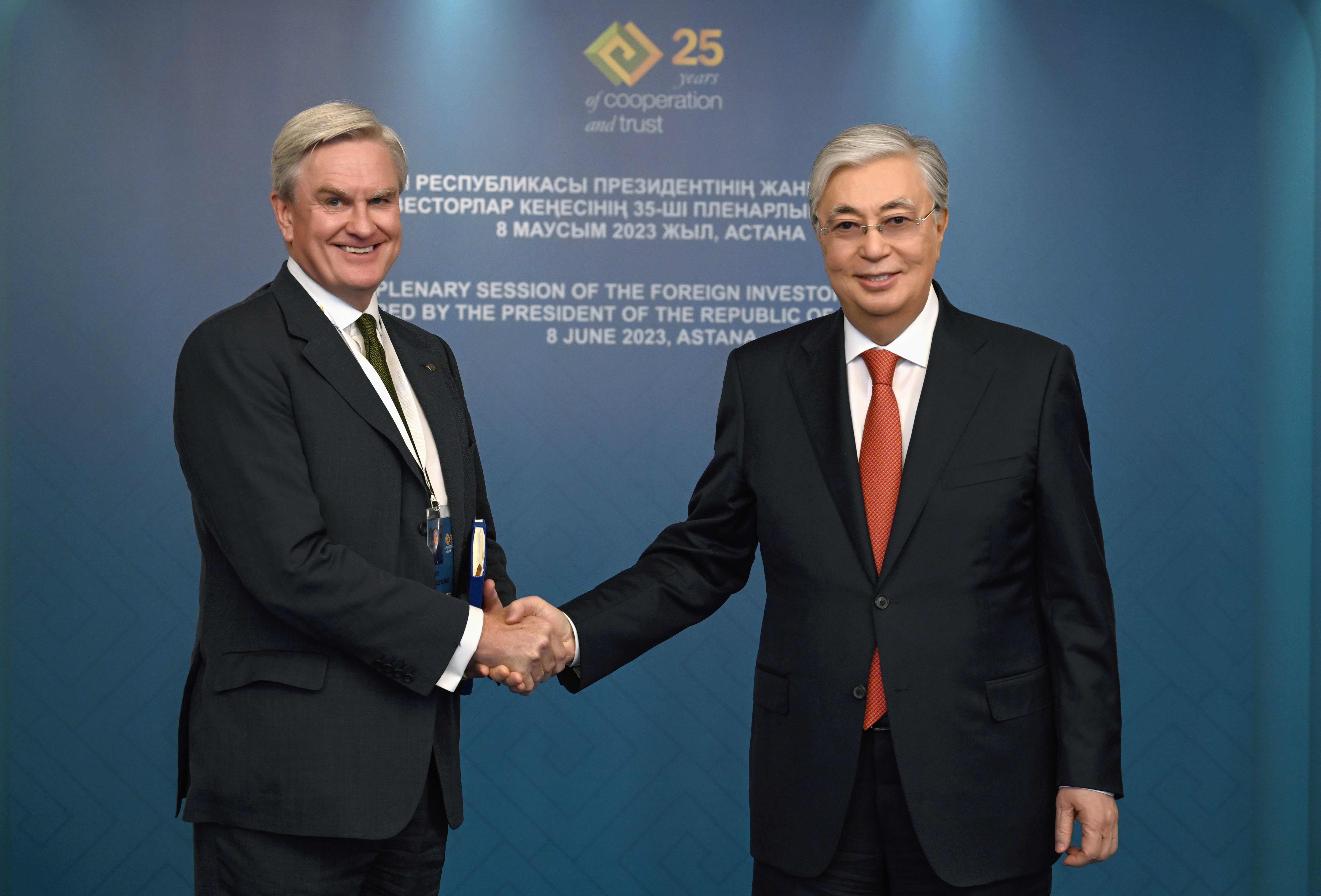 Мемлекет басшысы Шетелдік инвесторлар кеңесінің отырысына қатысқан халықаралық қаржы институттарының және ірі компаниялардың басшыларымен бірқатар кездесу өткізді.