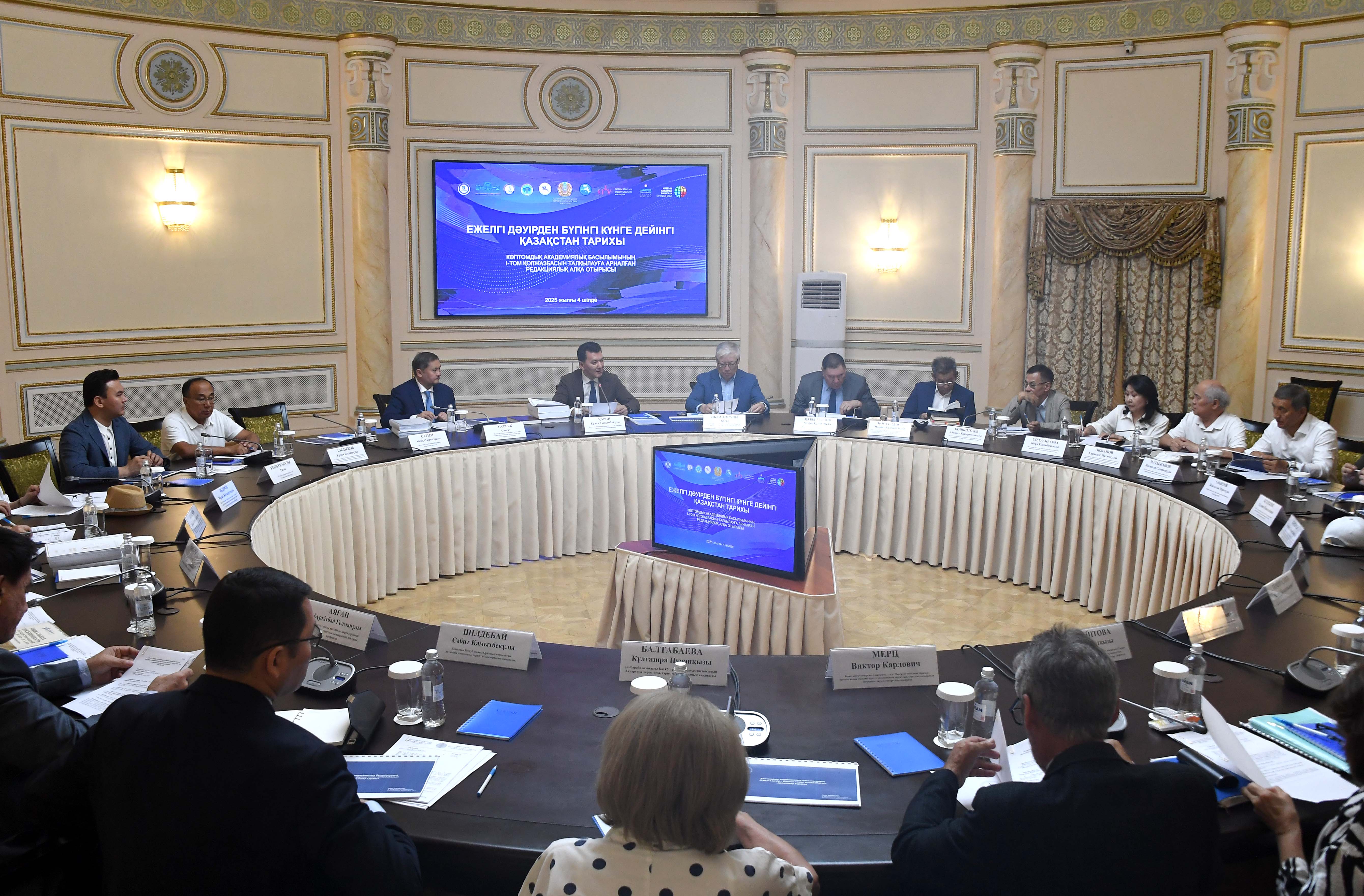 Бүгін Мемлекеттік кеңесші Ерлан Қариннің төрағалығымен «Қазақстан тарихы: ежелгі дәуірден бүгінге дейін» атты академиялық 7 томдықты дайындау жөніндегі редакция алқасының алғашқы отырысы өтті.