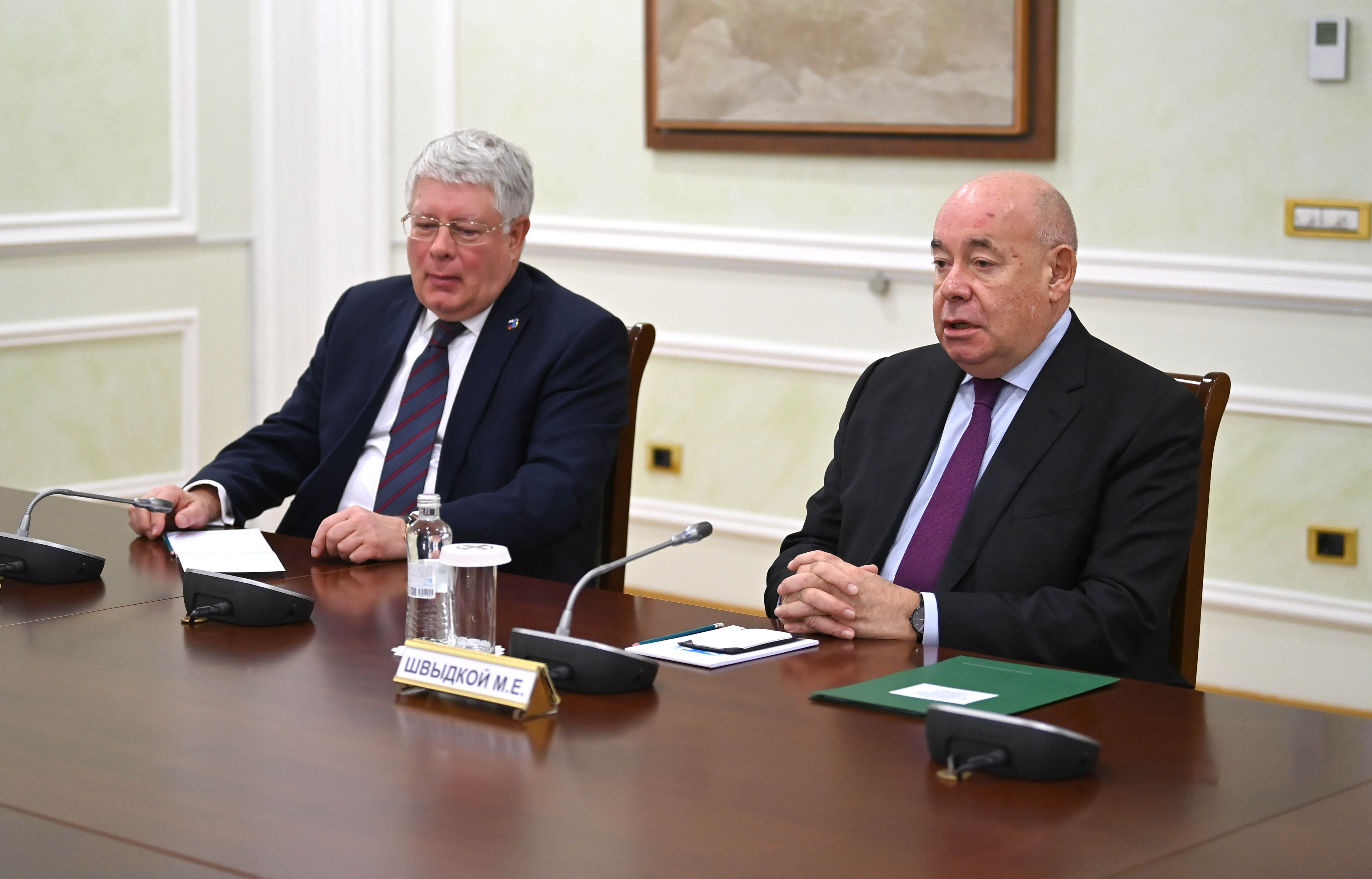 Государственный советник Ерлан Карин провел встречу со специальным представителем Президента России по международному культурному сотрудничеству Михаилом Швыдким.