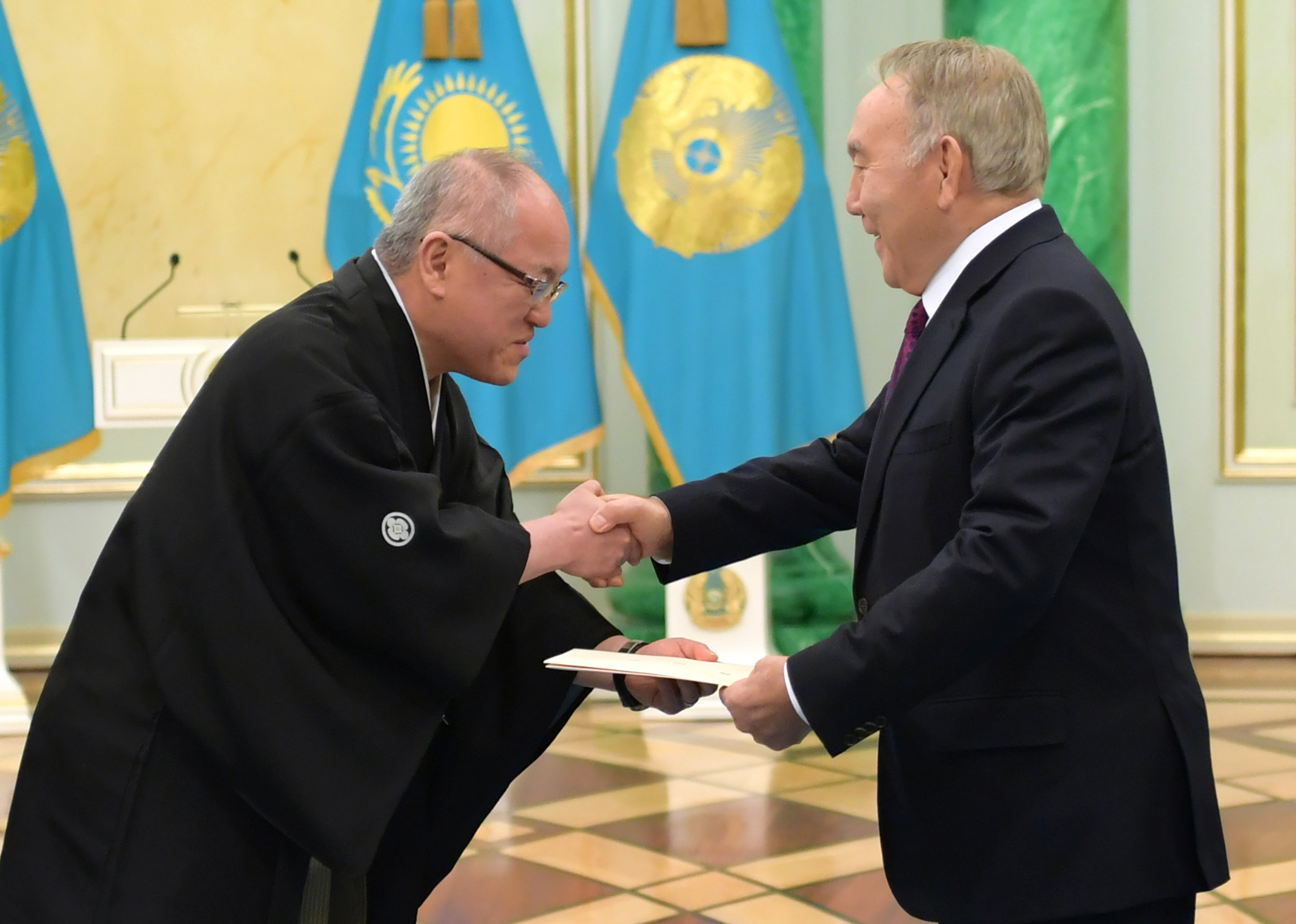 В ходе церемонии верительные грамоты Главе государства вручили Чрезвычайные и Полномочные послы: Республики Таджикистан – Хайрулло Ибодзода, Японии – Тацухико Касаи, Чешской Республики – Рудольф Гикл, Республики Хорватия – Рефик Шабанович и Социалистической Республики Вьетнам – Нгуен Тхи Хонг Оань.
