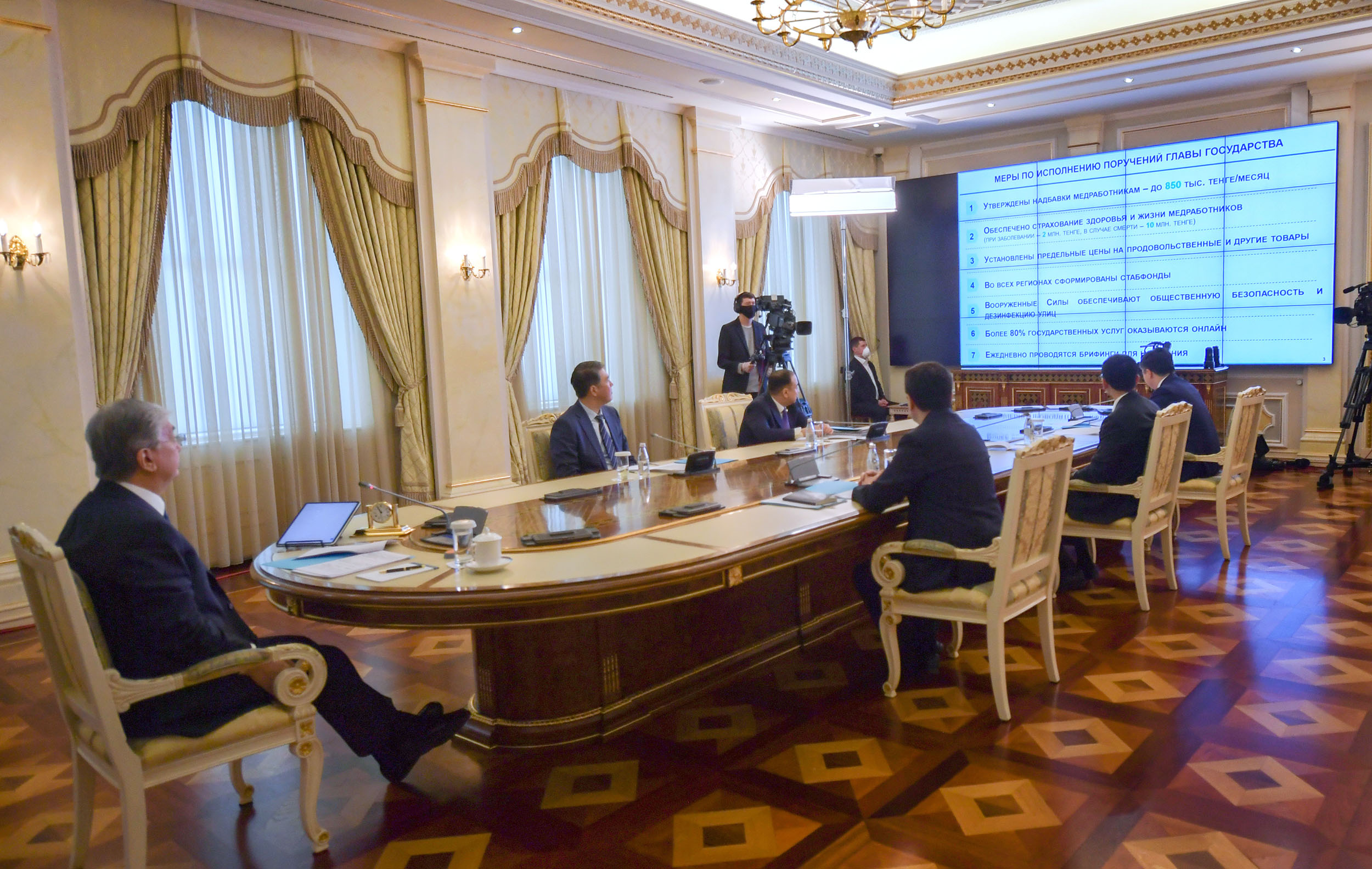 Под председательством Касым-Жомарта Токаева состоялось очередное заседание Государственной комиссии по чрезвычайному положению, в котором в режиме видеосвязи участвовали акимы областей и городов республиканского значения, а также руководители государственных органов и правоохранительных структур.