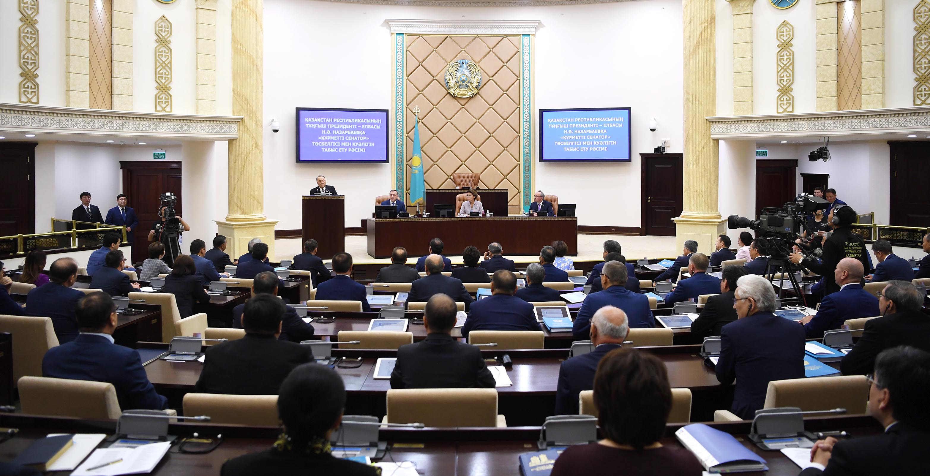 Перед началом пленарного заседания Сената Парламента состоялась церемония присвоения Елбасы статуса «Почетный сенатор».