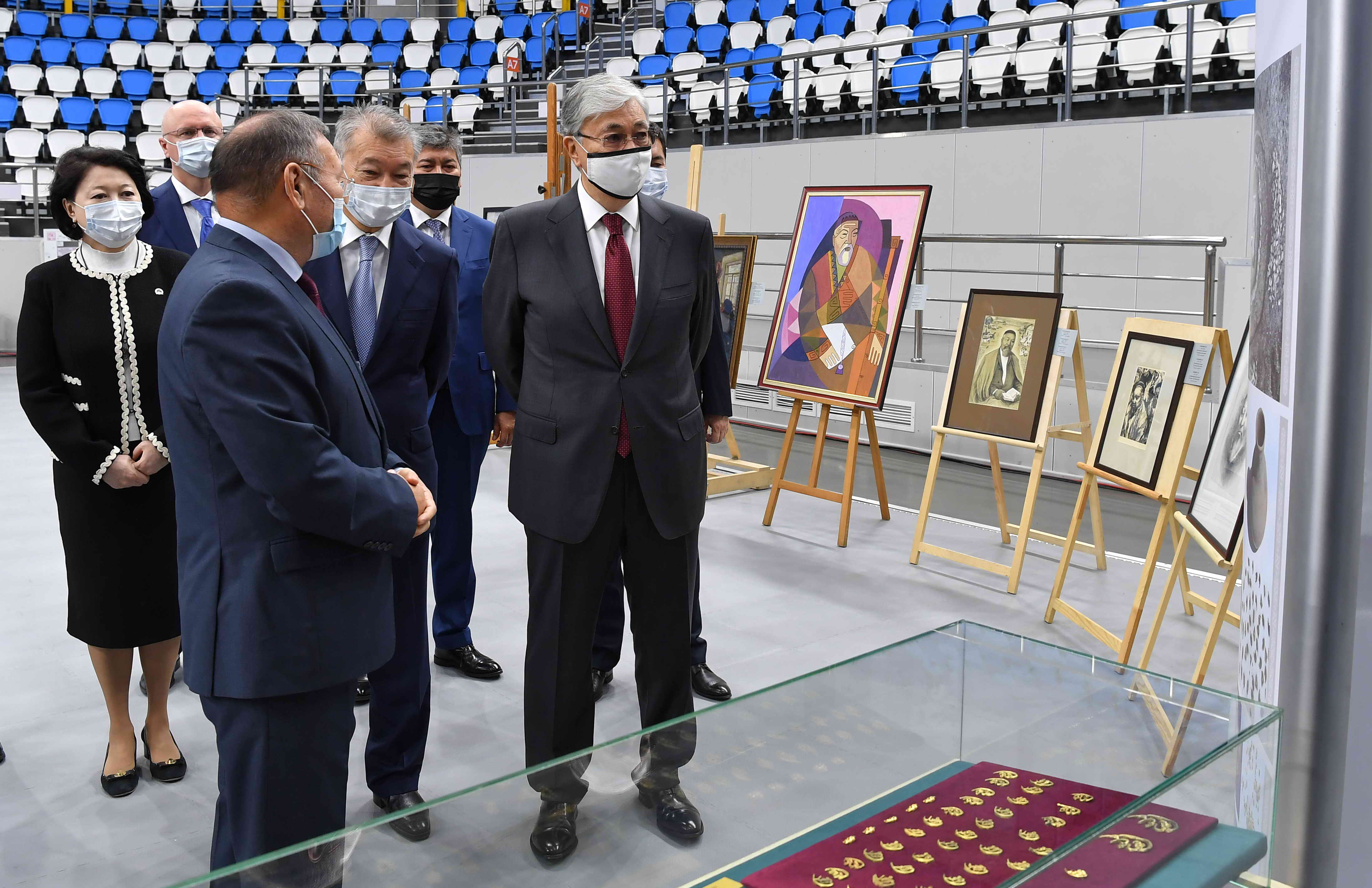 В экспозицию вошли 18 картин из фондов Восточно-Казахстанского музея искусств и Музея изобразительных искусств имени семьи Невзоровых. Кроме того, Касым-Жомарт Токаев посетил археологическую выставку «Золото Великой степи». Затем состоялась беседа Президента с учеными-абаеведами.