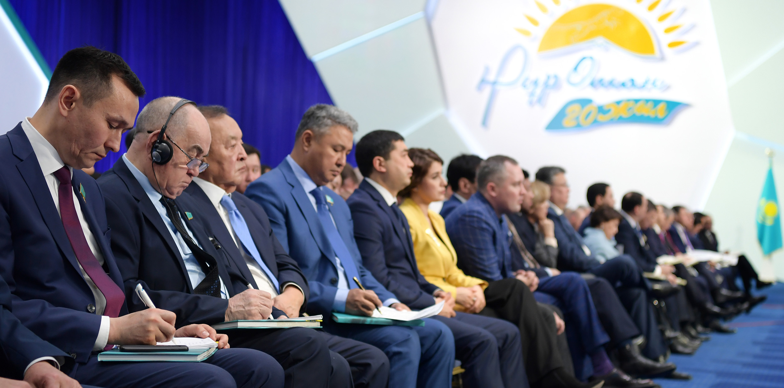 В работе съезда партии «Нұр Отан», приуроченного к ее 20-летию, приняли участие делегаты, избранные на региональных конференциях, депутаты Парламента, руководители органов государственного управления, национальных холдингов и компаний, представители гражданского общества, неправительственных и молодежных структур, международных организаций, дипломатического корпуса, первичных партийных организаций, средств массовой информации, деятели науки и культуры, ветераны партии.