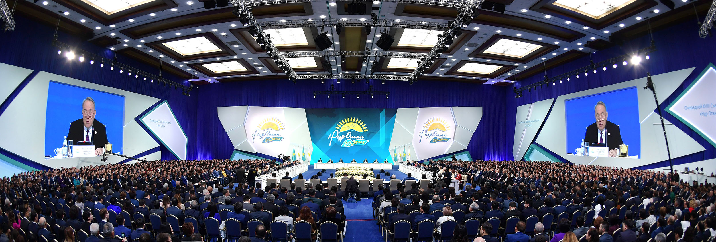 В своем выступлении Глава государства напомнил о достижениях Казахстана за прошедшие 20 лет, особо подчеркнув роль партии «Нұр Отан» во всех позитивных изменениях, произошедших в стране.