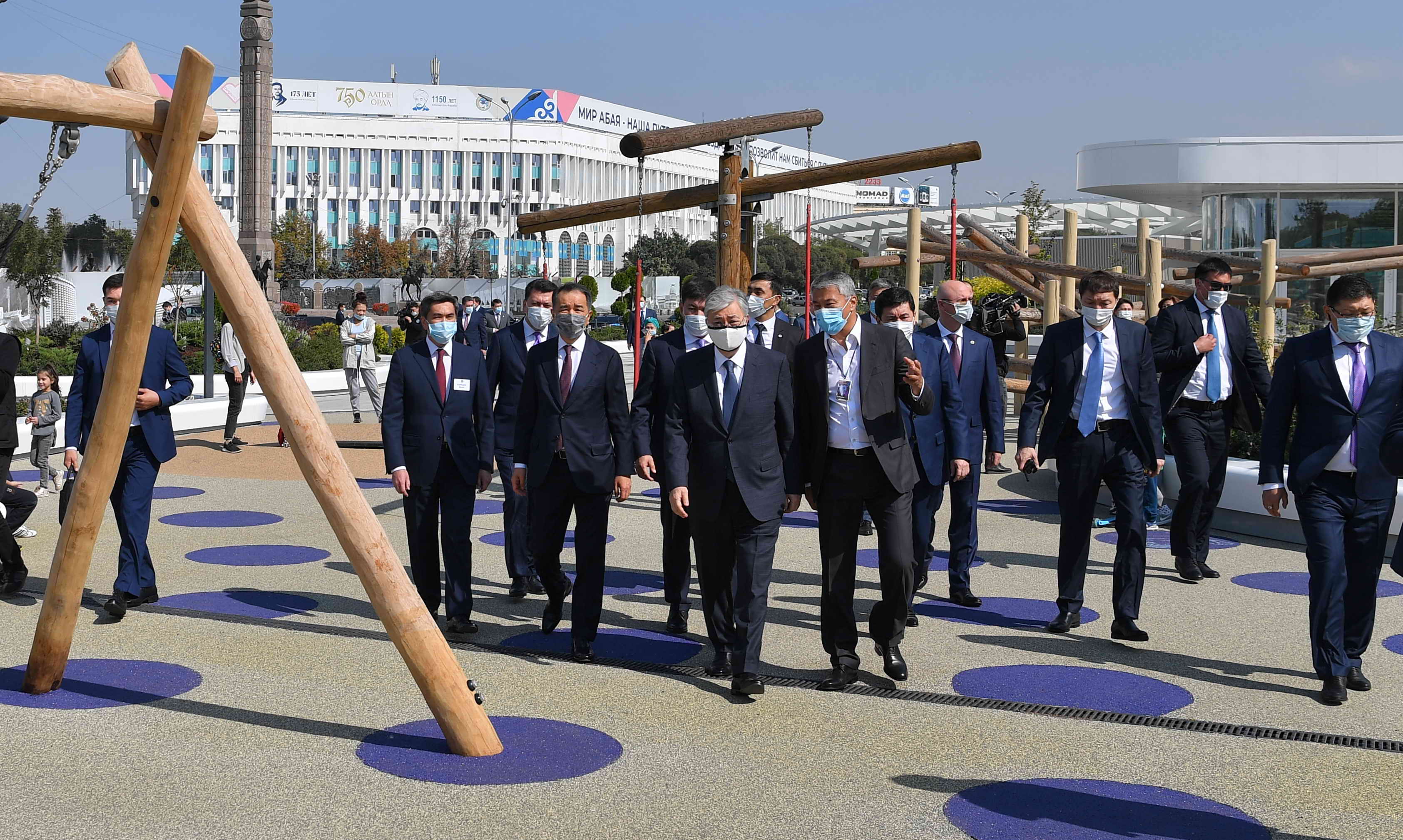 Касым-Жомарт Токаев посетил обновленное общественное пространство «Алмалы» на площади Республики
