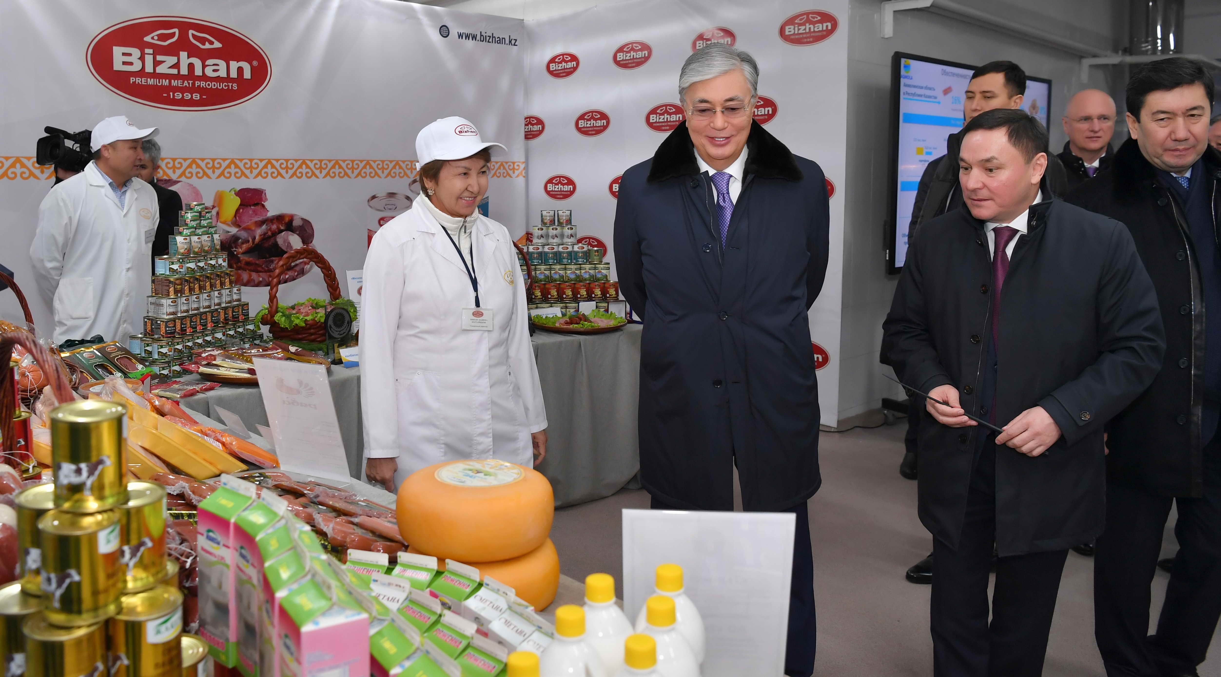 Глава государства осмотрел производственные помещения и ознакомился с представленными образцами продукции перерабатывающих предприятий области.