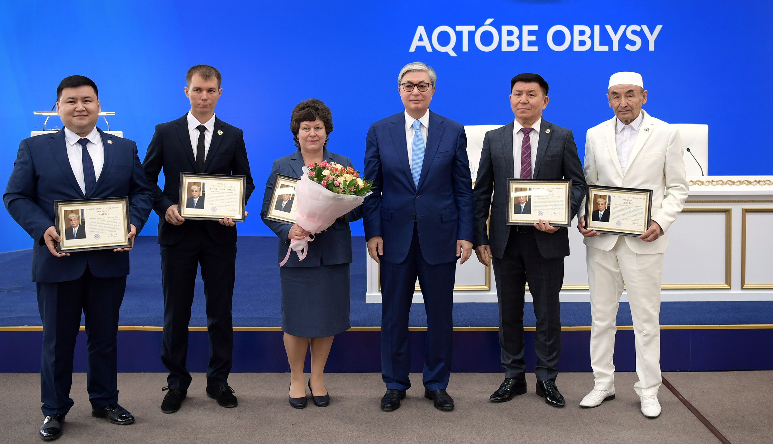 В завершение мероприятия Касым-Жомарт Токаев вручил благодарственные письма поэту Б. Калмаганбетову, ветерану труда С. Кусаиновой, художественному руководителю и дирижеру Казахского камерного хора М. Куспанову, мастеру по эксплуатации автотранспорта Актюбинского завода ферросплавов В. Плугину, медицинской сестре Центра социального обслуживания Л. Маршениной.