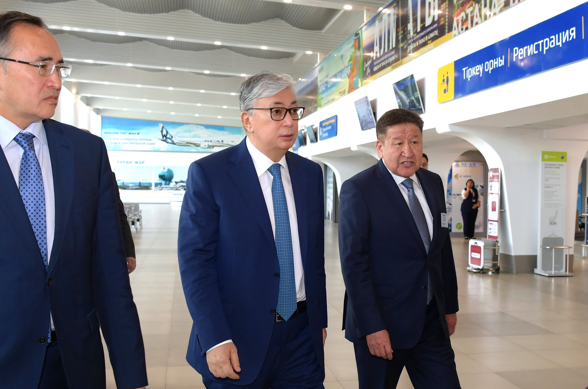 Глава государства был проинформирован о развитии международного аэропорта Жамбылской области в качестве одной из современных воздушных гаваней страны. Президенту доложили о росте потенциала аэропорта, открытии новых региональных и международных рейсов. Персонал аэропорта составляет 250 сотрудников. В 2018 году пассажиропоток превысил 63 тысячи человек.