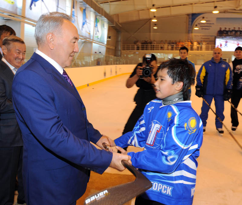 После этого Нурсултан Назарбаев посетил закрытый хоккейный модуль с искусственным льдом. Спортивный комплекс был создан при финансовой поддержке ТОО Корпорация «Казахмыс». Данный объект представляет собой уникальную спортивную площадку с синтетическим ледовым покрытием, которая позволяет заниматься хоккеем с шайбой и другими видами спорта на коньках в течение всего года.
