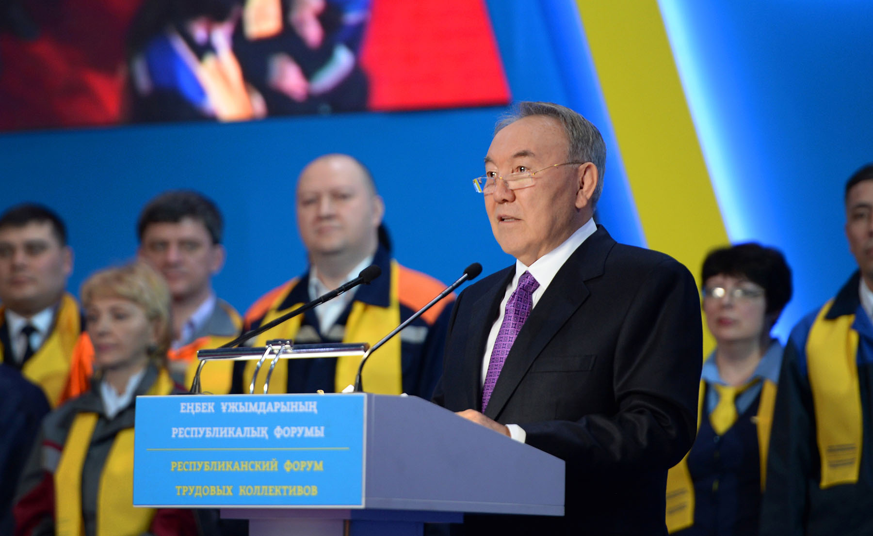 В своем выступлении Нурсултан Назарбаев подчеркнул значимую роль людей труда в развитии страны.