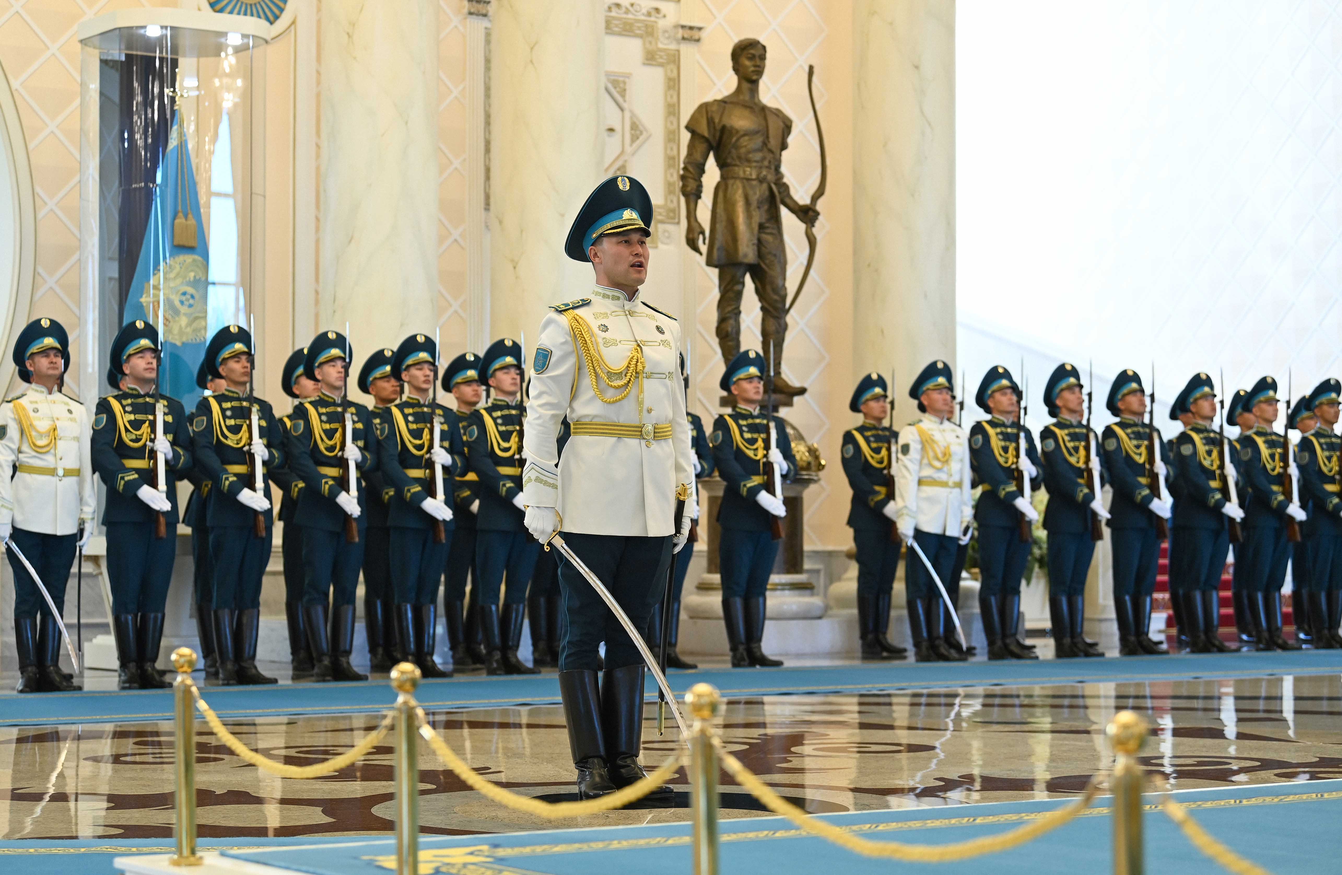 Касым-Жомарт Токаев и Абдалла II представили друг другу членов делегаций, после чего начальник роты почетного караула отдал приветственный рапорт, прозвучали гимны Казахстана и Иордании. Далее главы государств направились в зал переговоров.