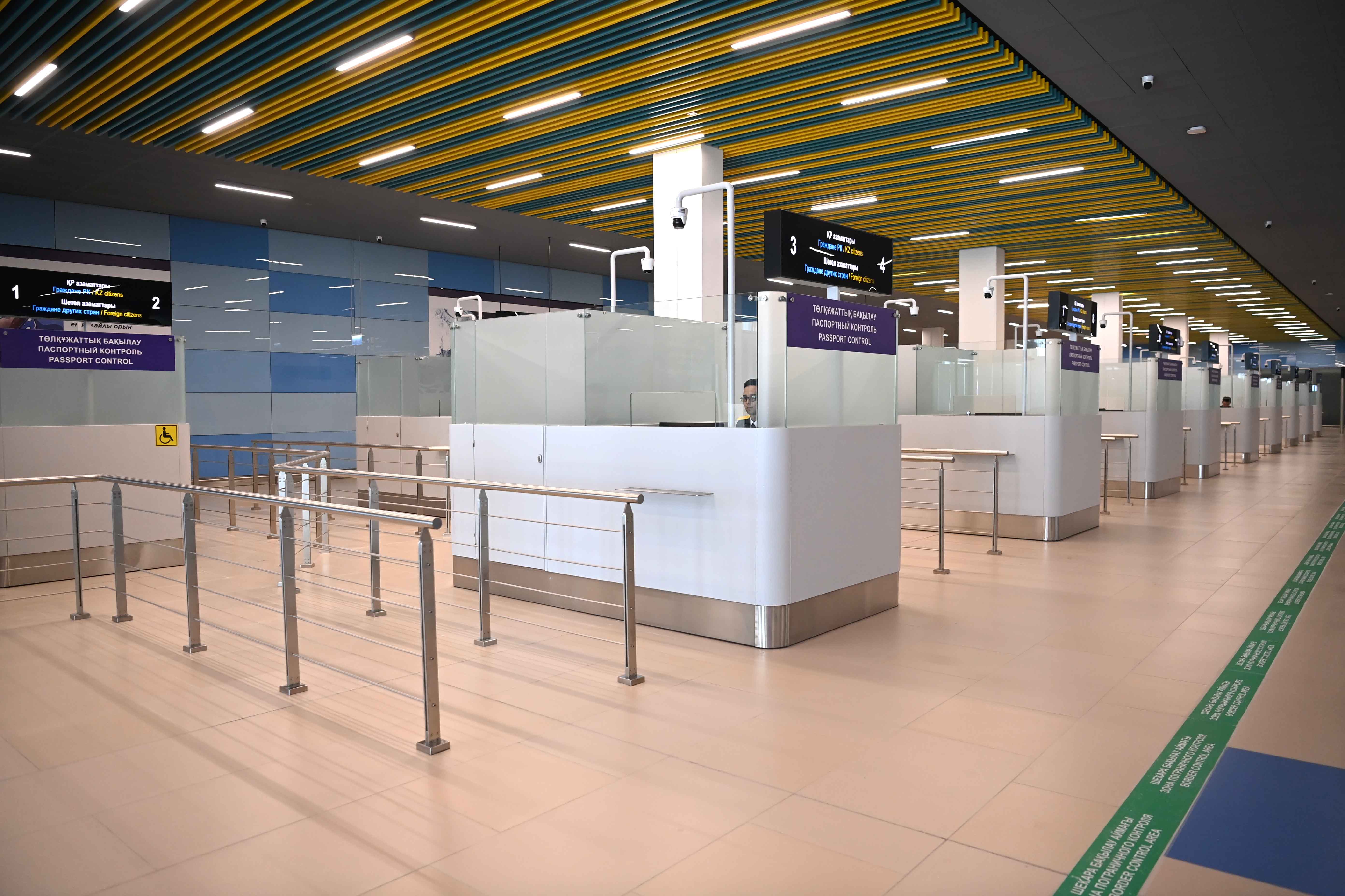 В преддверии открытия терминала Главе государства рассказали о ходе строительства и представили зоны регистрации, пограничного и таможенного контроля, багажное отделение.