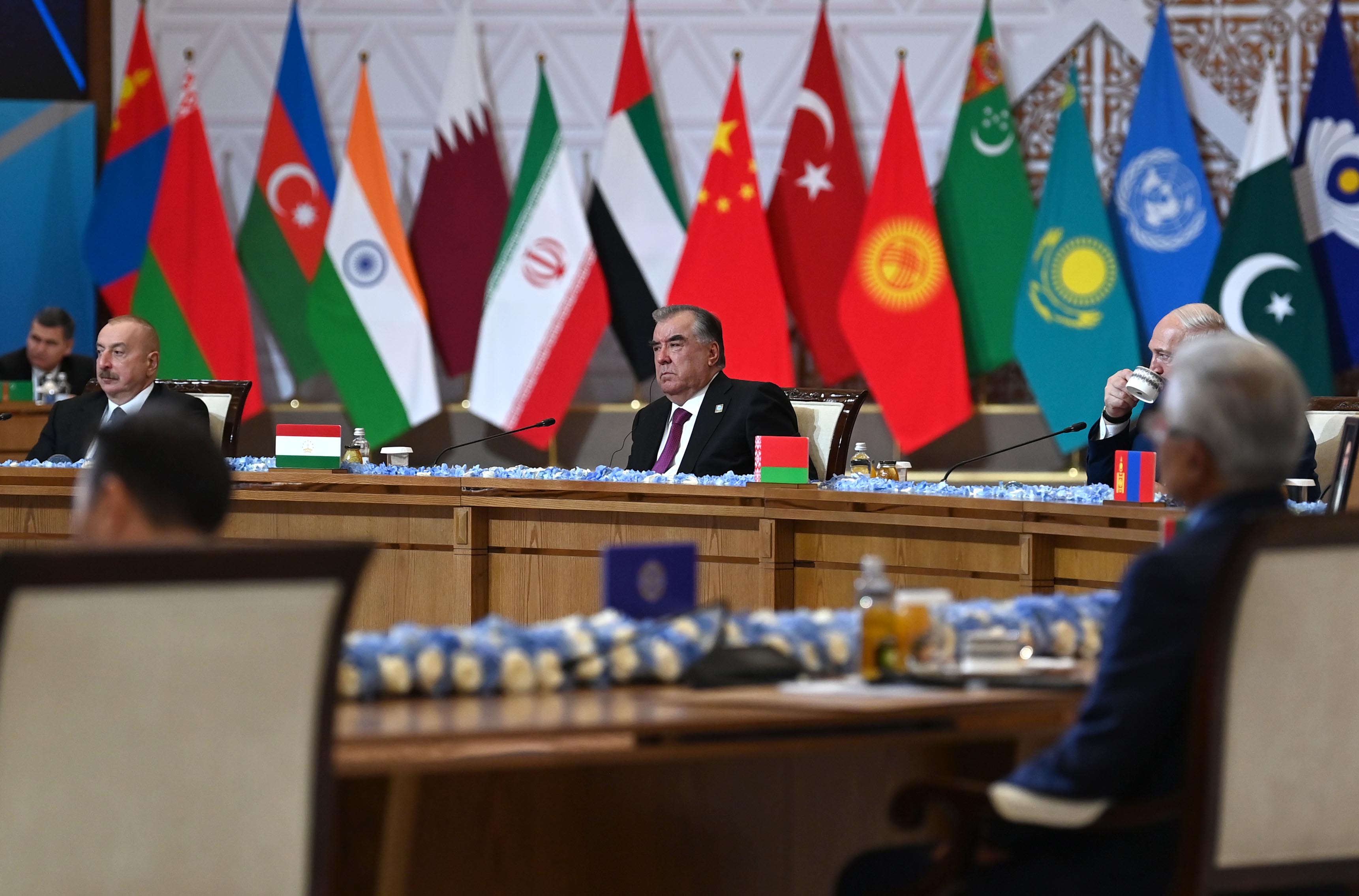 Также на саммите выступили Генеральный секретарь ООН Антониу Гутерриш, Президент Беларуси Александр Лукашенко, исполняющий обязанности Президента Ирана Мохаммед Мохбер, Председатель КНР Си Цзиньпин, Президент Кыргызстана Садыр Жапаров, Премьер-министр Пакистана Шахбаз Шариф, Президент России Владимир Путин, Президент Таджикистана Эмомали Рахмон, Президент Узбекистана Шавкат Мирзиёев, министр иностранных дел Индии Субраманьям Джайшанкар, Президент Монголии Ухнаагийн Хурэлсух, Президент Азербайджана Ильхам Алиев, Председатель Халк Маслахаты Туркменистана Гурбангулы Бердымухамедов, Президент Турции Реджеп Тайип Эрдоган, член Верховного совета ОАЭ, правитель эмирата Рас-Эль-Хайма шейх Сауд бен Сакр аль-Касими.