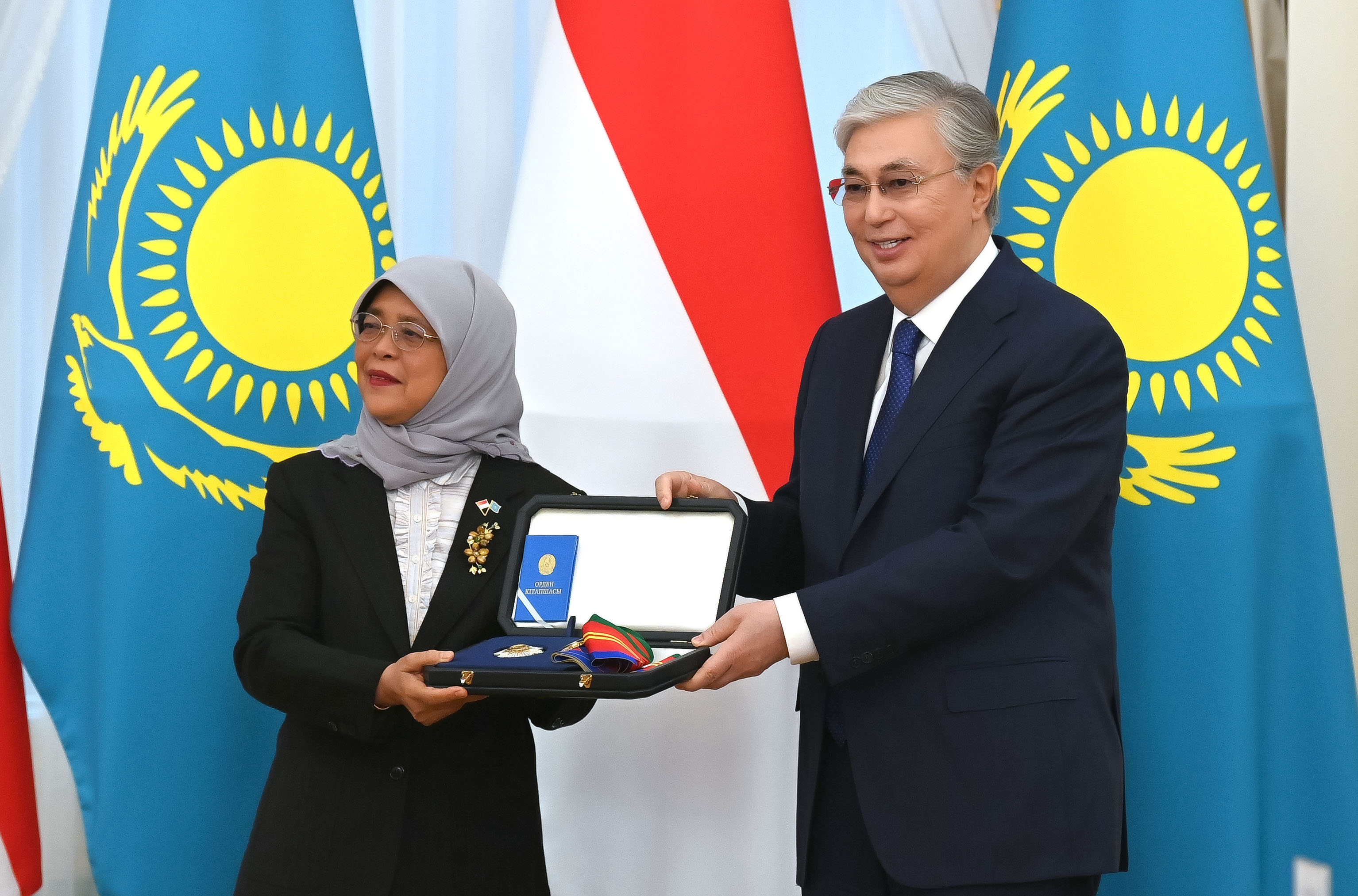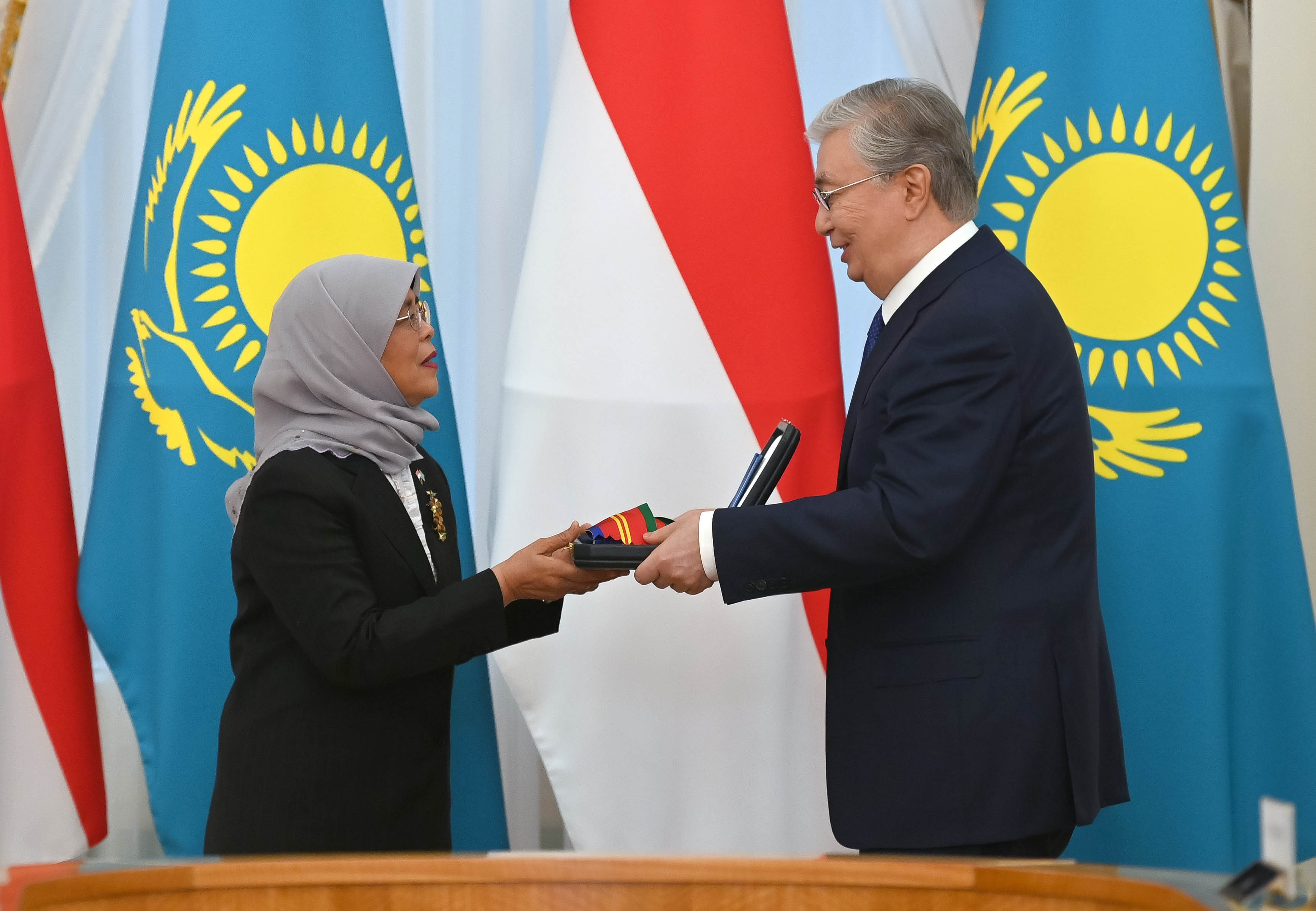 Касым-Жомарт Токаев вручил Президенту Сингапура Халиме Якоб орден «Достық» I степени.