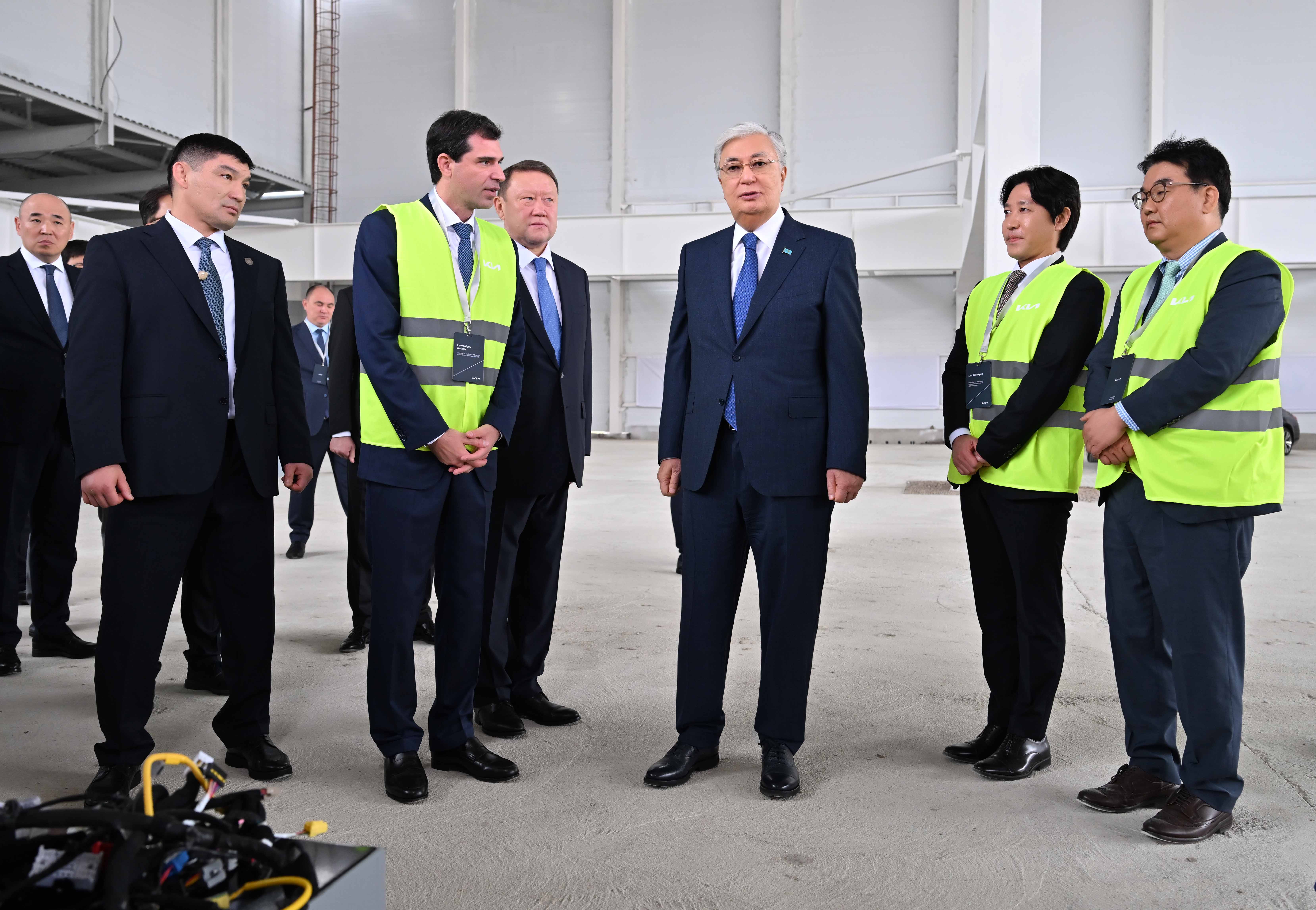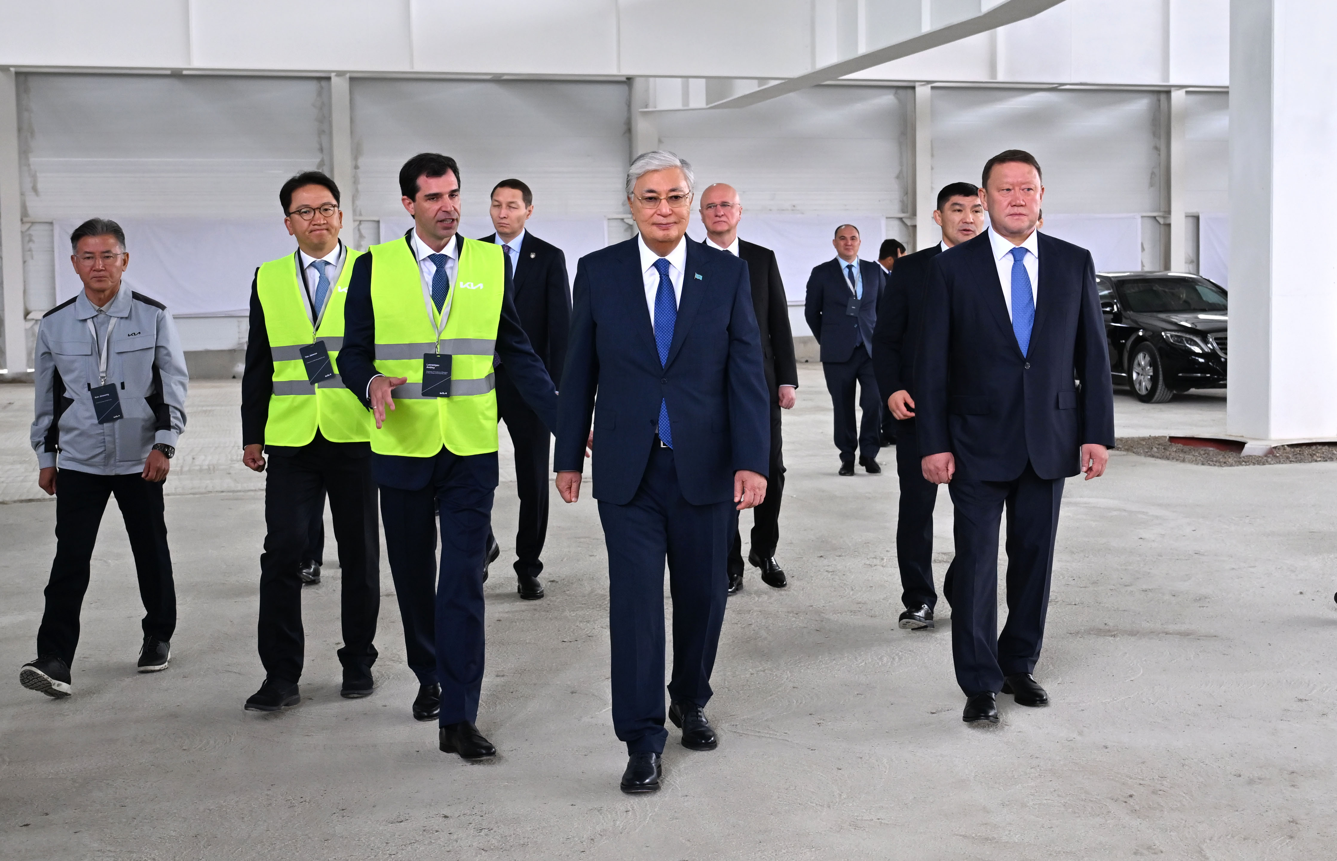 Президент Касым-Жомарт Токаев посетил строительную площадку завода по производству автомобилей KIA в Костанайской области.