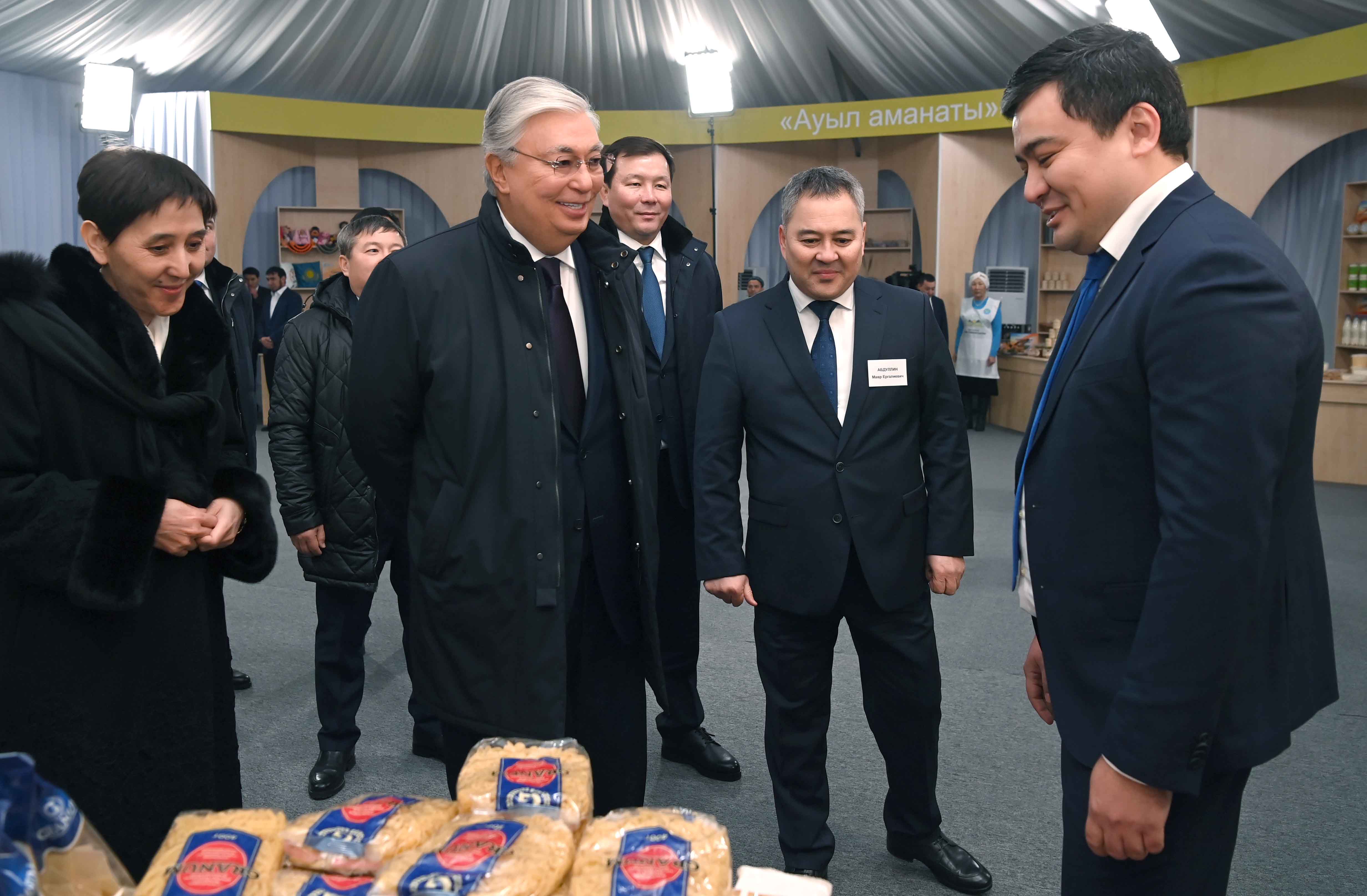 После ознакомления с проектами и продукцией сельхозтоваропроизводителей региона Касым-Жомарт Токаев побеседовал с местными предпринимателями.