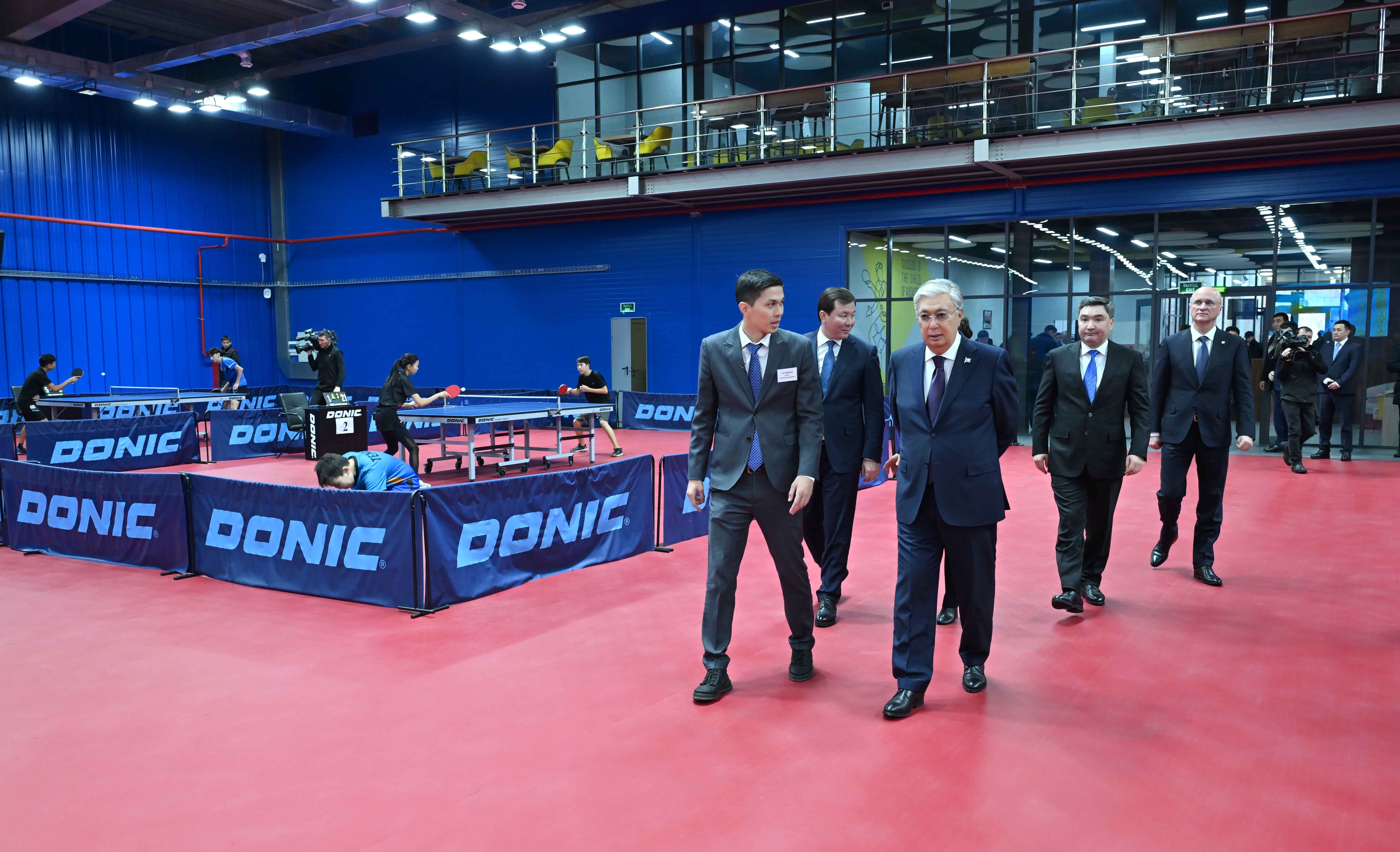 Касым-Жомарт Токаев посетил центр настольного тенниса в Актобе.