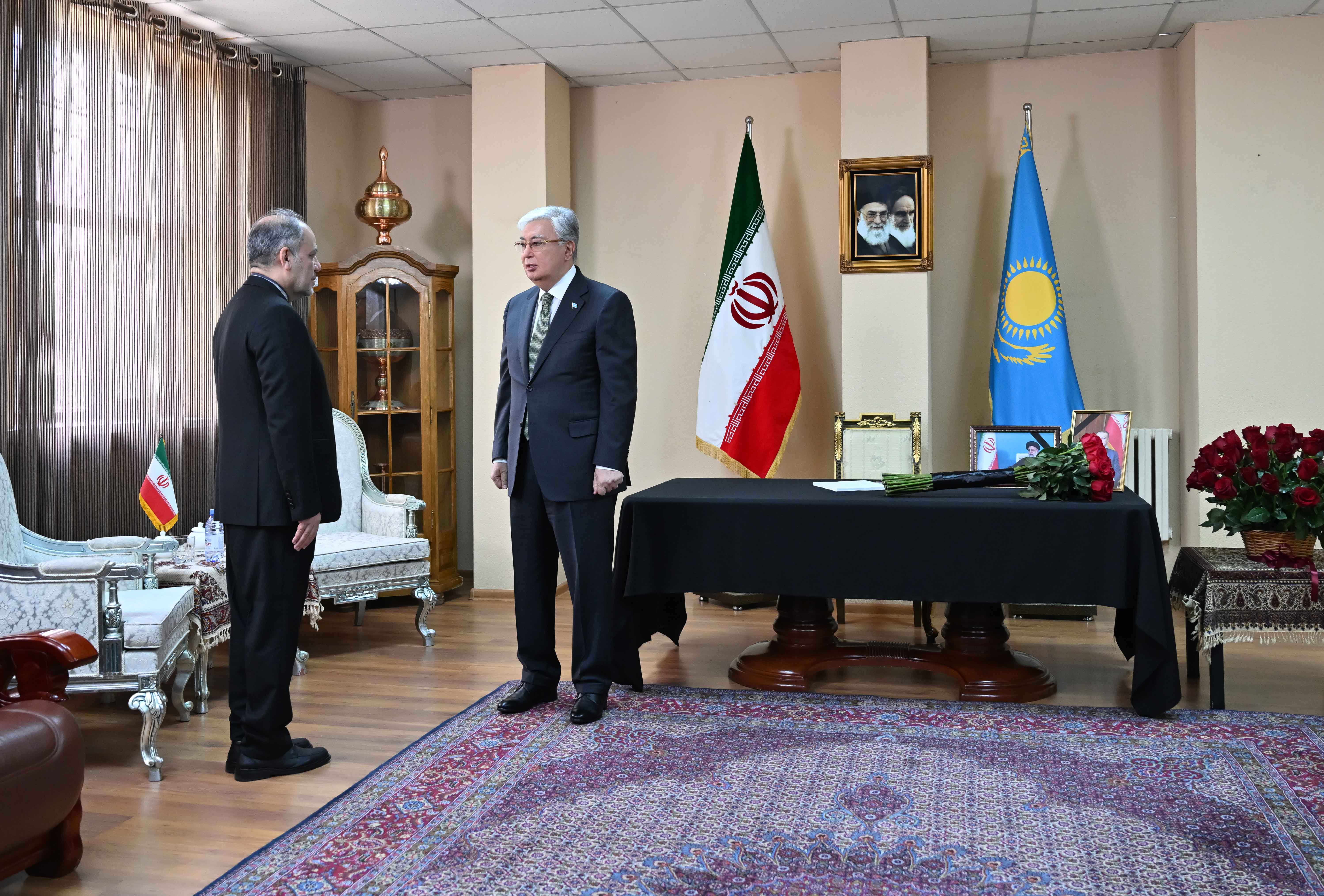 Президент Касым-Жомарт Токаев посетил Посольство Исламской Республики Иран в Астане и выразил сочувствие и поддержку иранскому народу в связи с гибелью Президента Ибрахима Раиси и членов правительственной делегации в результате крушения вертолета.