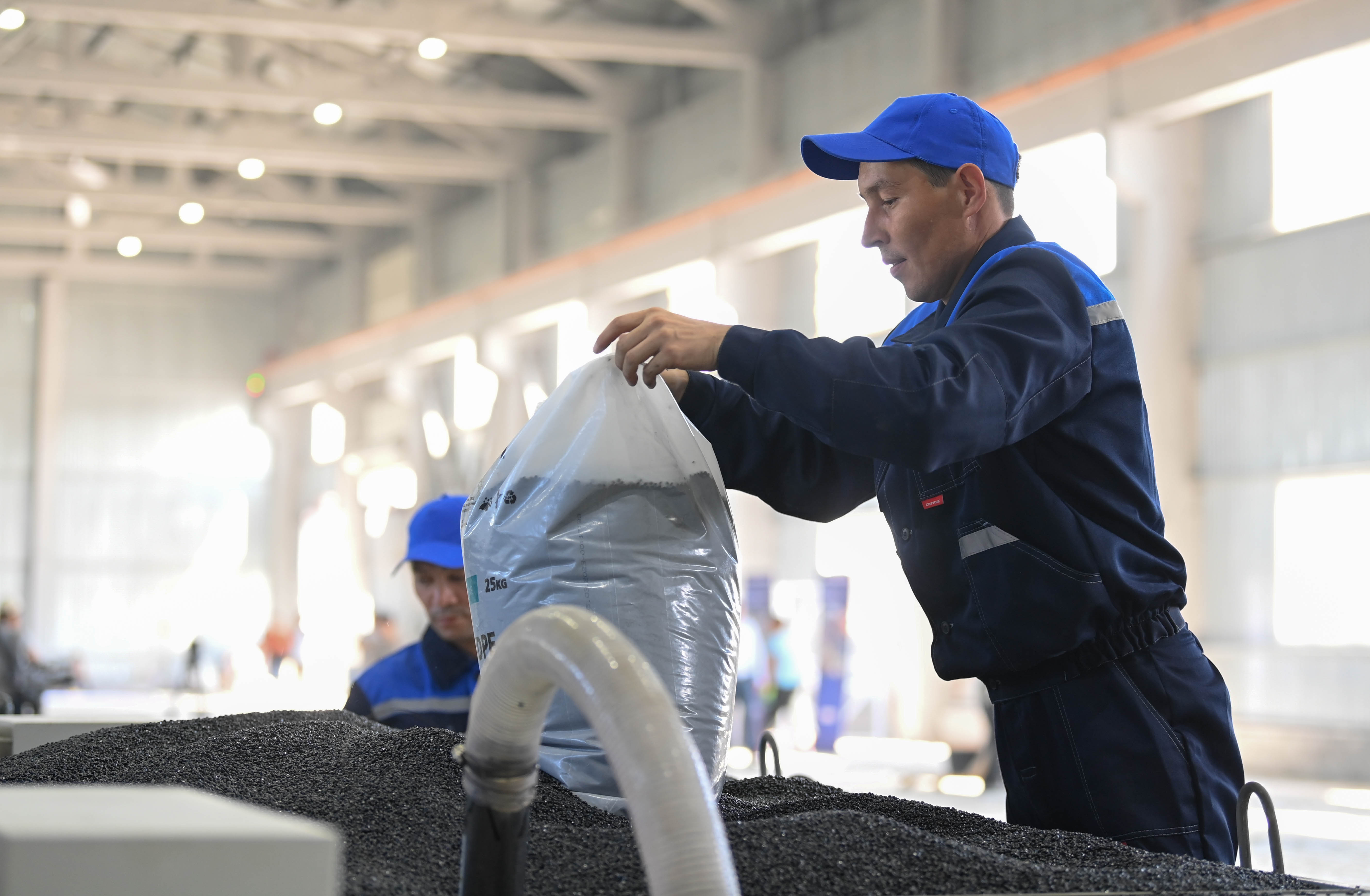 Касым-Жомарт Токаев осмотрел цеха предприятия и ознакомился с продукцией завода. Здесь выпускаются строительные материалы: бетон, фундаментные блоки, кирпичи и плиты. Недавно на заводе запустили линию по производству полиэтиленовых труб большого диаметра, которые используются при монтаже магистральных трубопроводов хозяйственно-питьевого и технического водоснабжения.