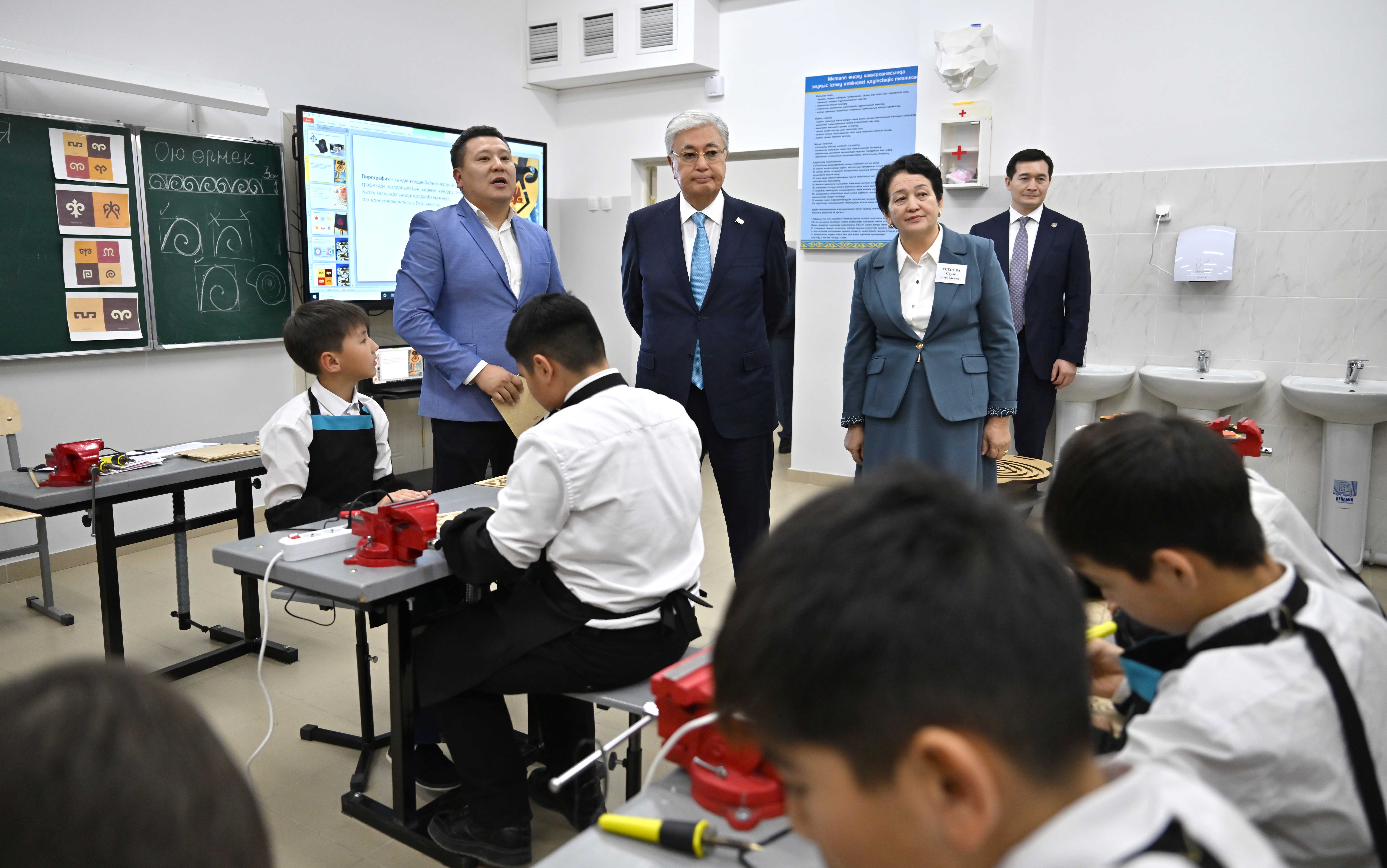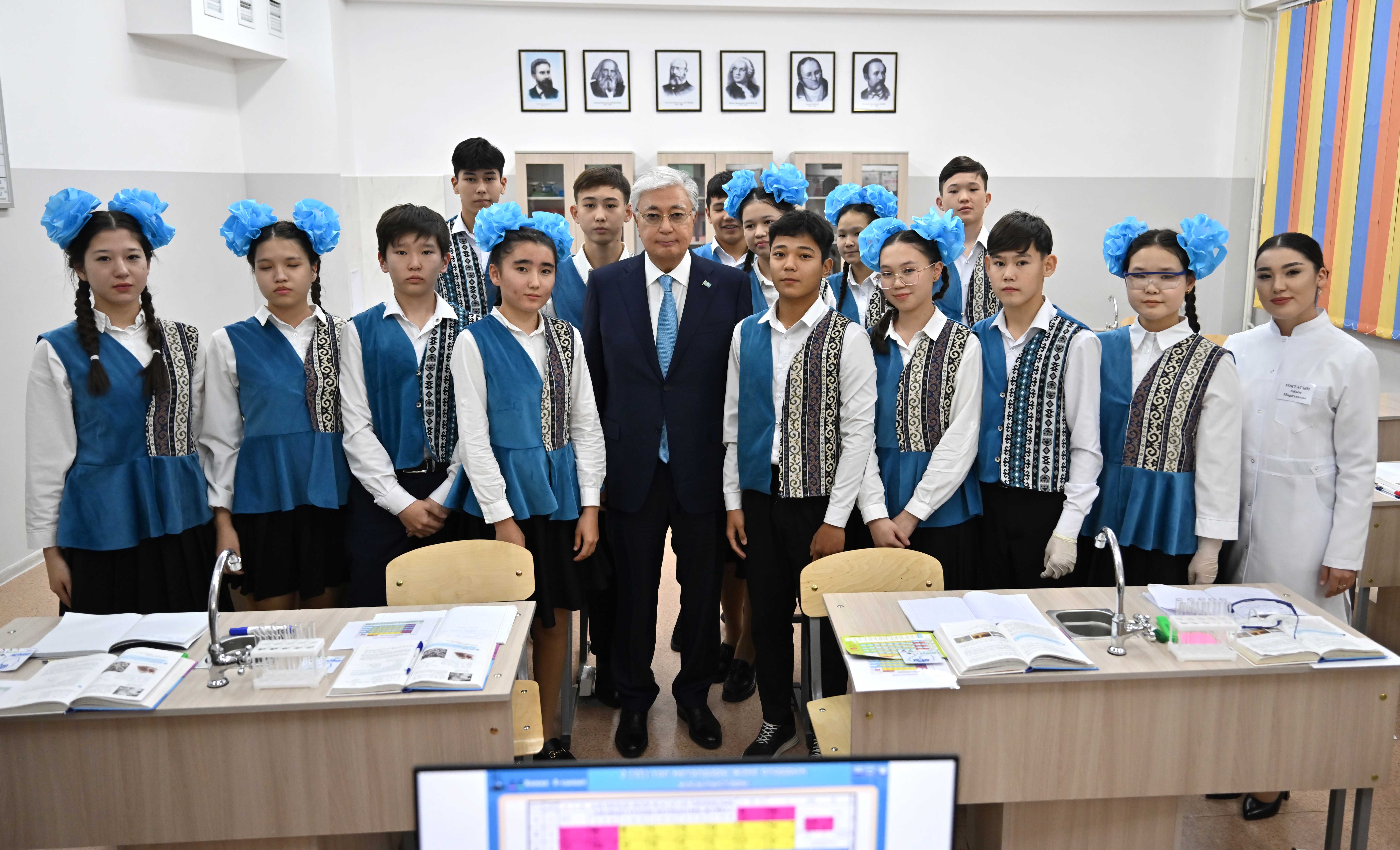 Глава государства посетил среднюю школу в селе Ынтымак