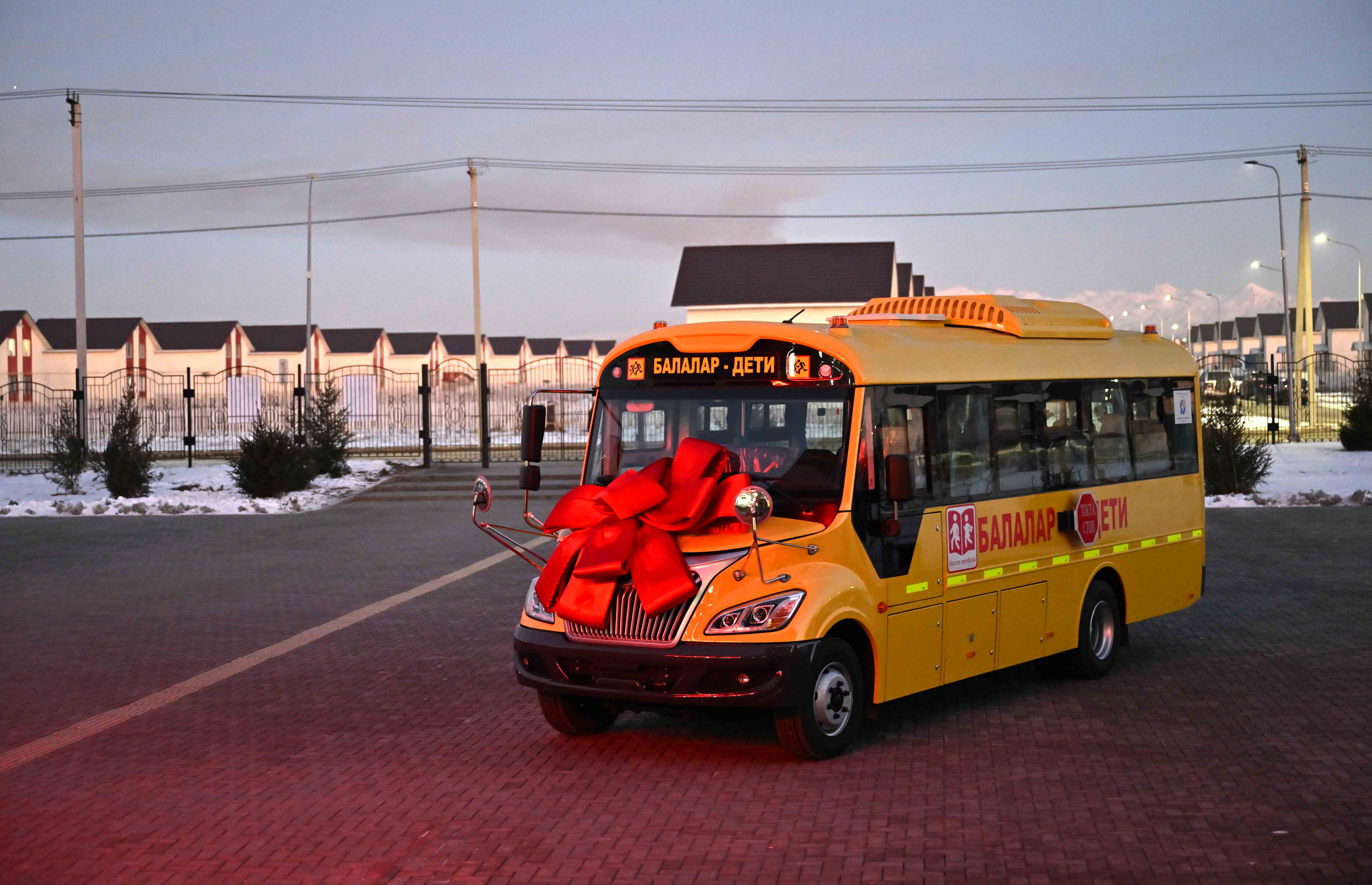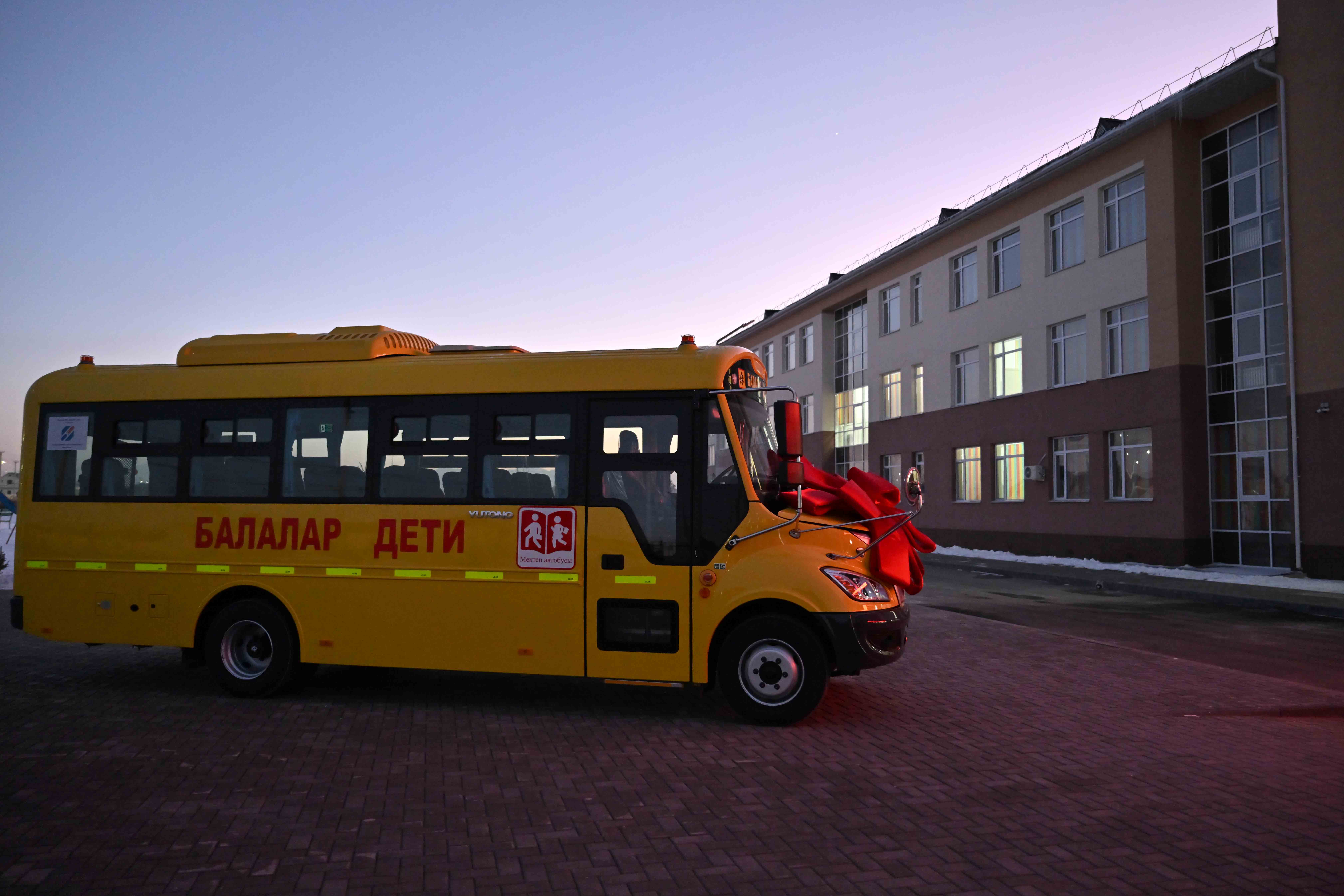 Президент осмотрел учебное заведение и побеседовал с учениками. Глава государства подарил образовательному учреждению школьный автобус.