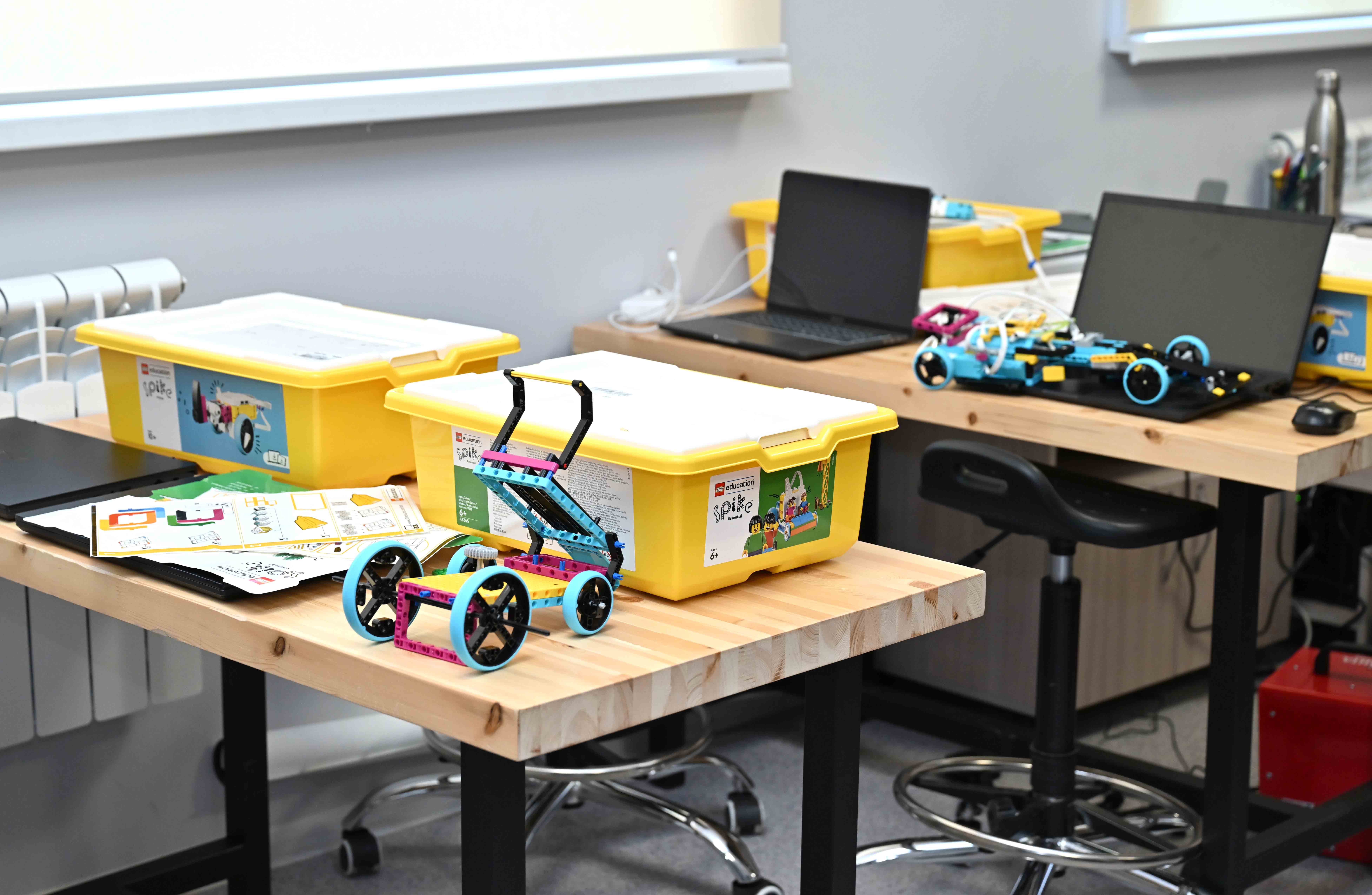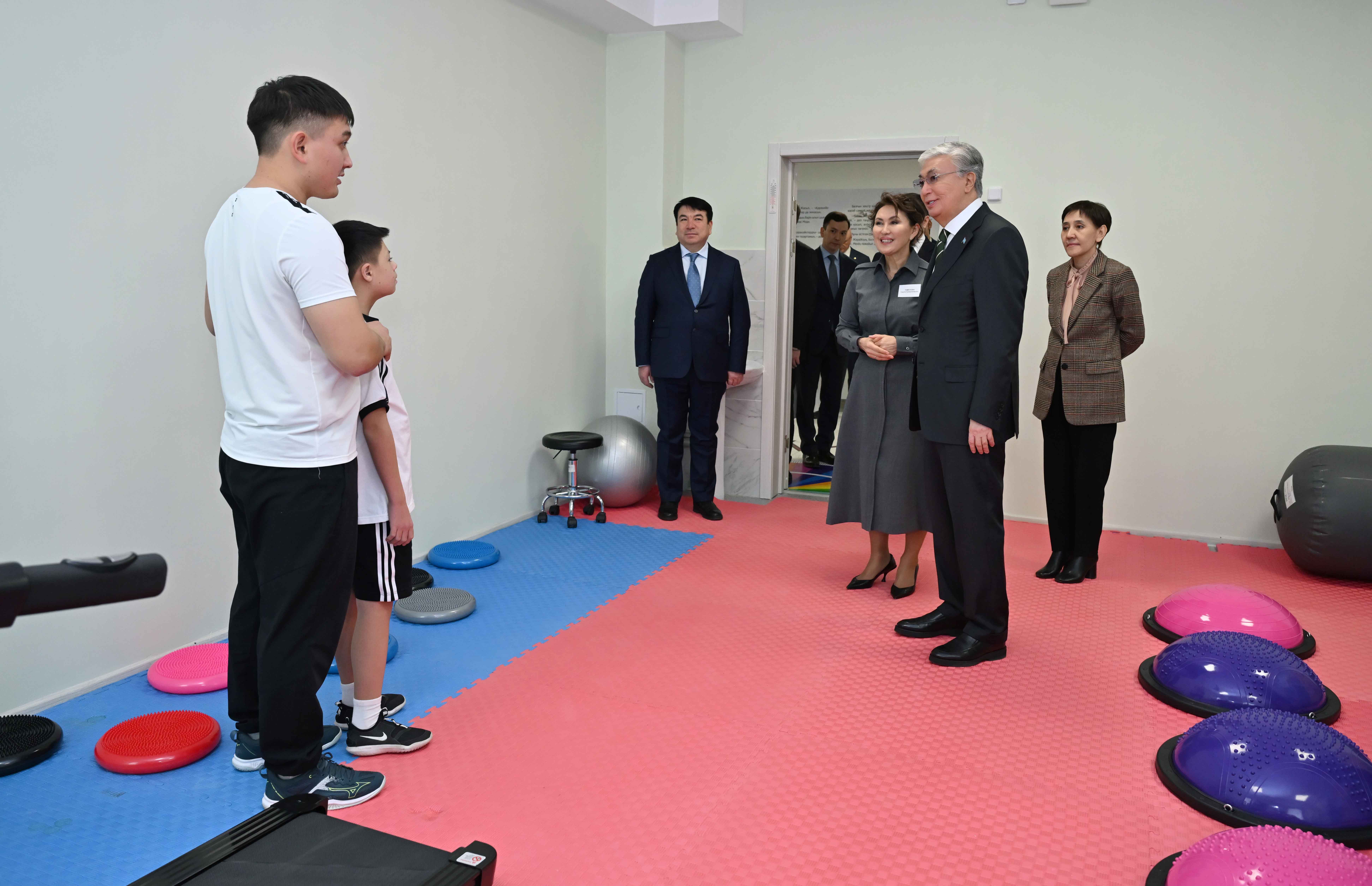 Глава государства осмотрел спортивный зал, кабинет робототехники и пообщался с учениками.