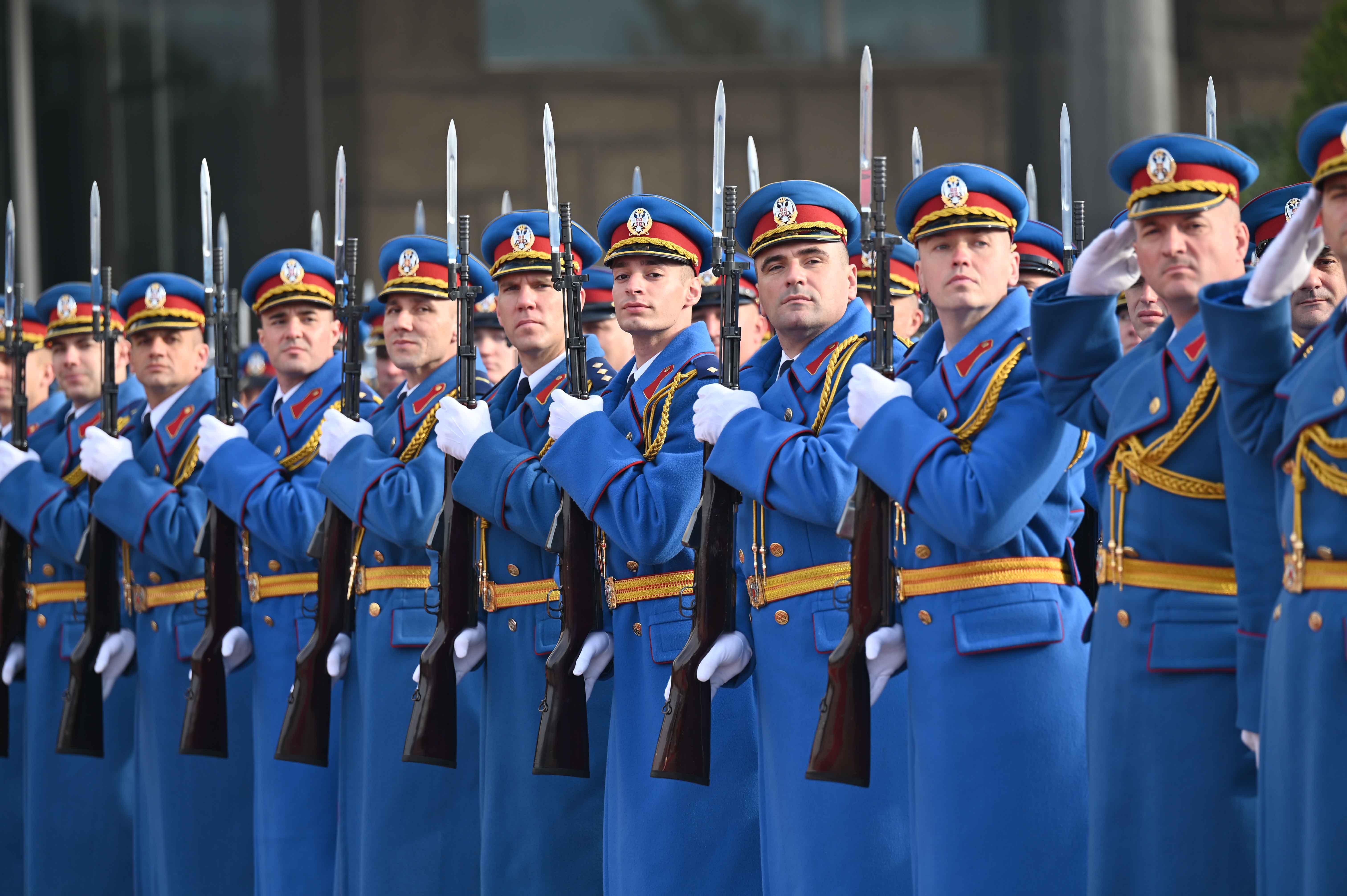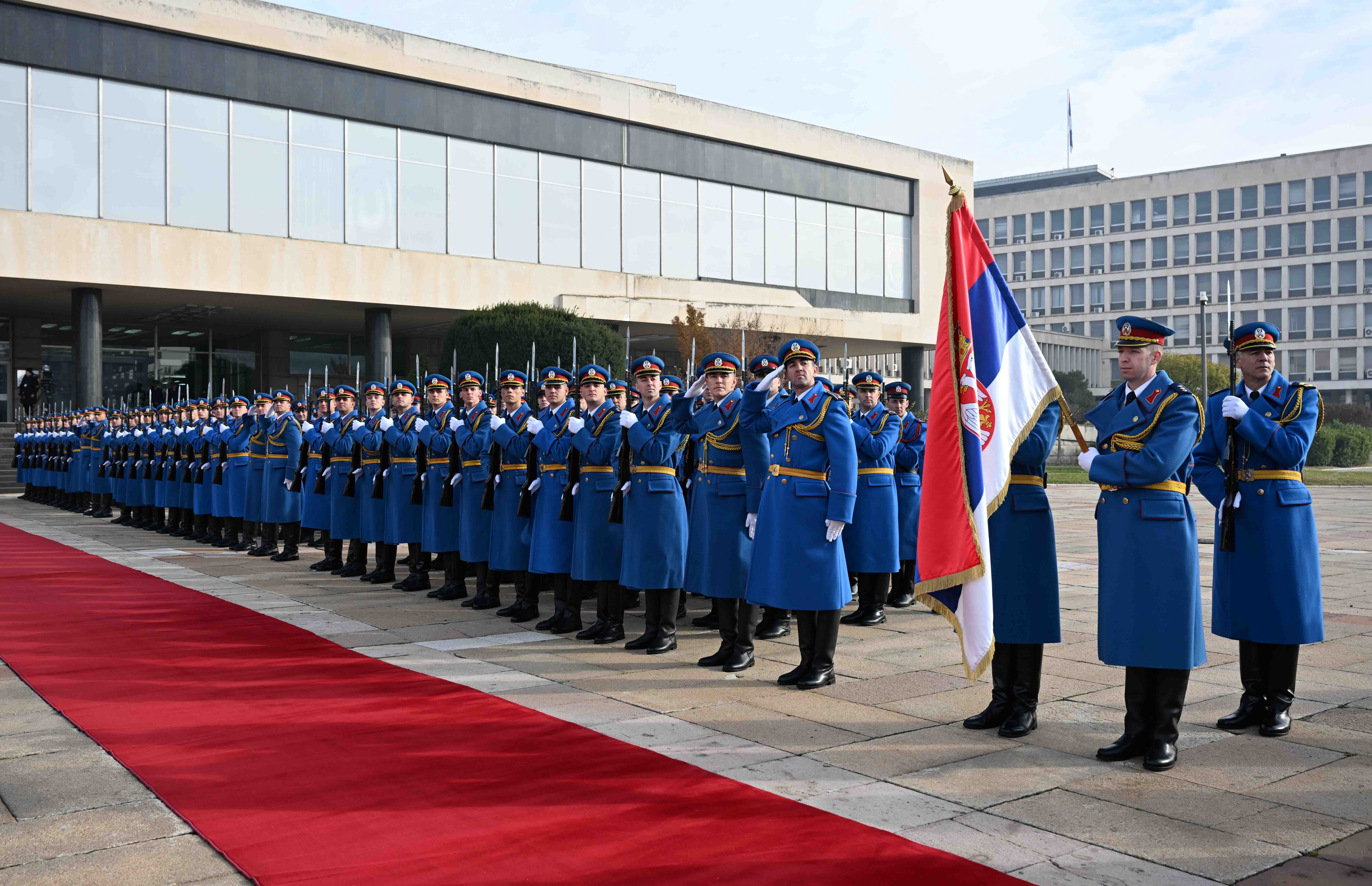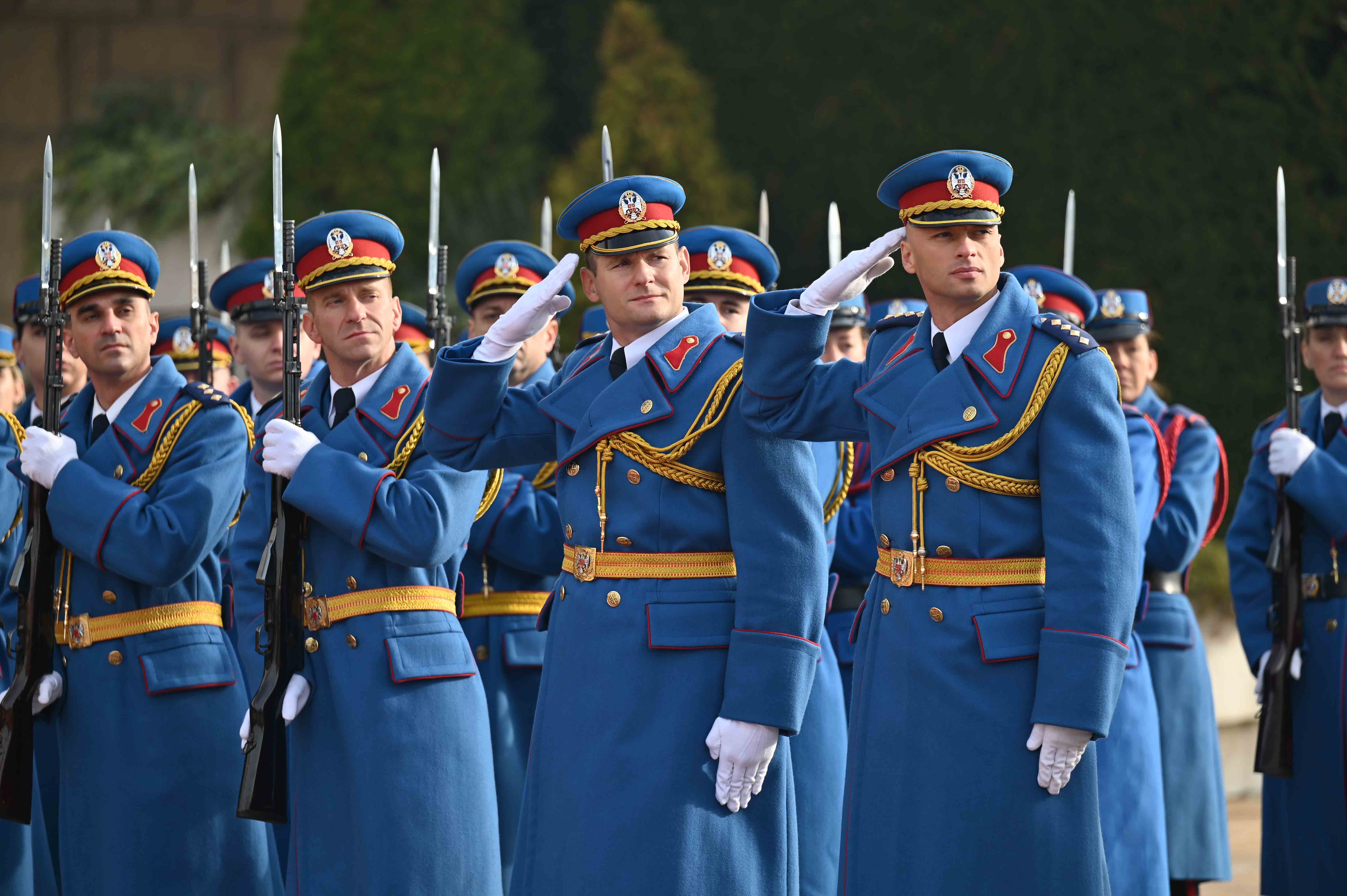 Переговорам предшествовала церемония официальной встречи на площади перед Дворцом Сербии. В честь прибытия Президента Казахстана был выстроен почетный караул. После рапорта начальника почетного караула прозвучали гимны обеих стран, а также было произведено 10 артиллерийских залпов. Затем президенты представили друг другу членов официальных делегаций.