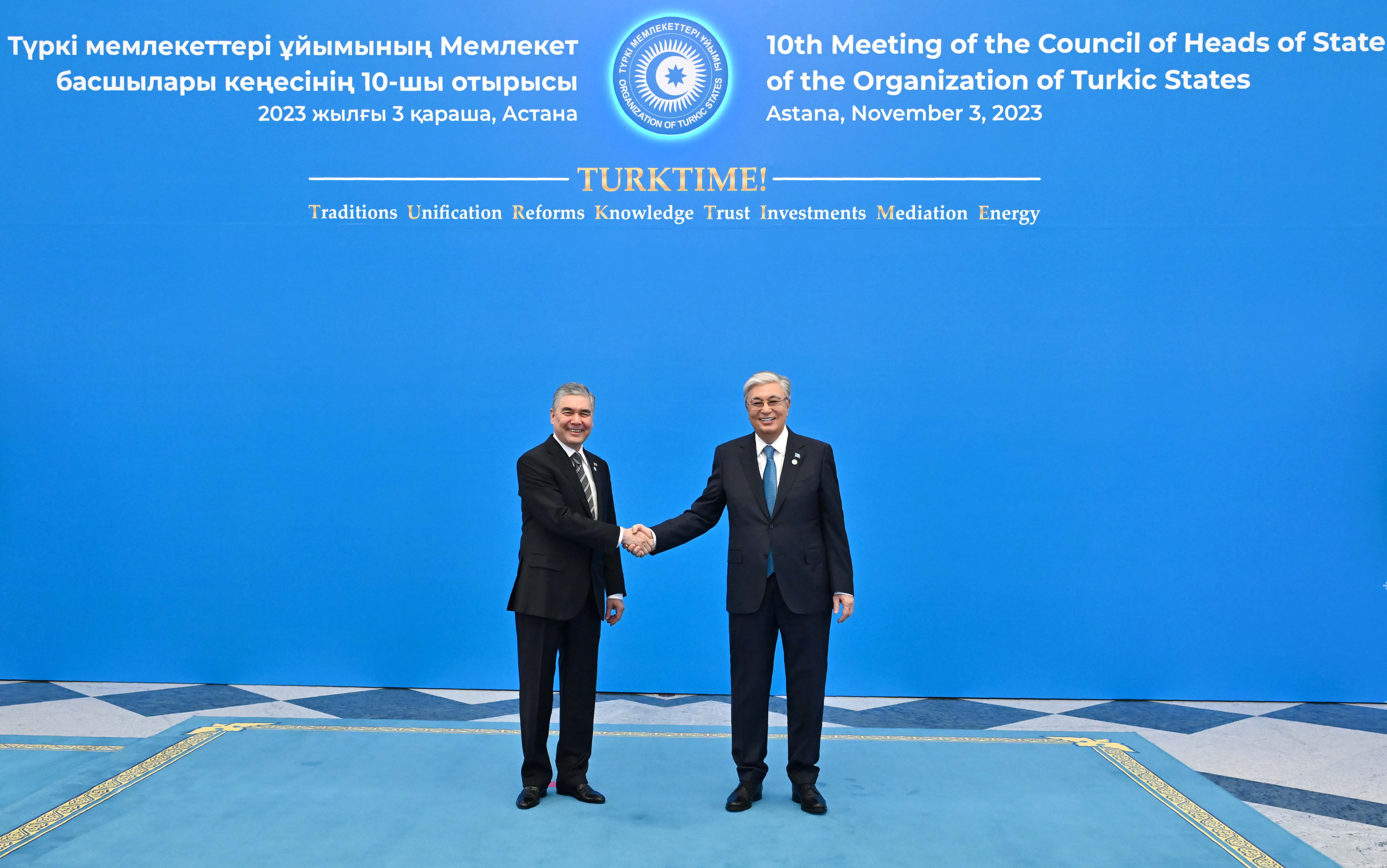 В свою очередь Гурбангулы Бердымухамедов поблагодарил Касым-Жомарта Токаева за приглашение принять участие в работе юбилейного саммита ОТГ и высоко оценил взаимодействие двух стран.