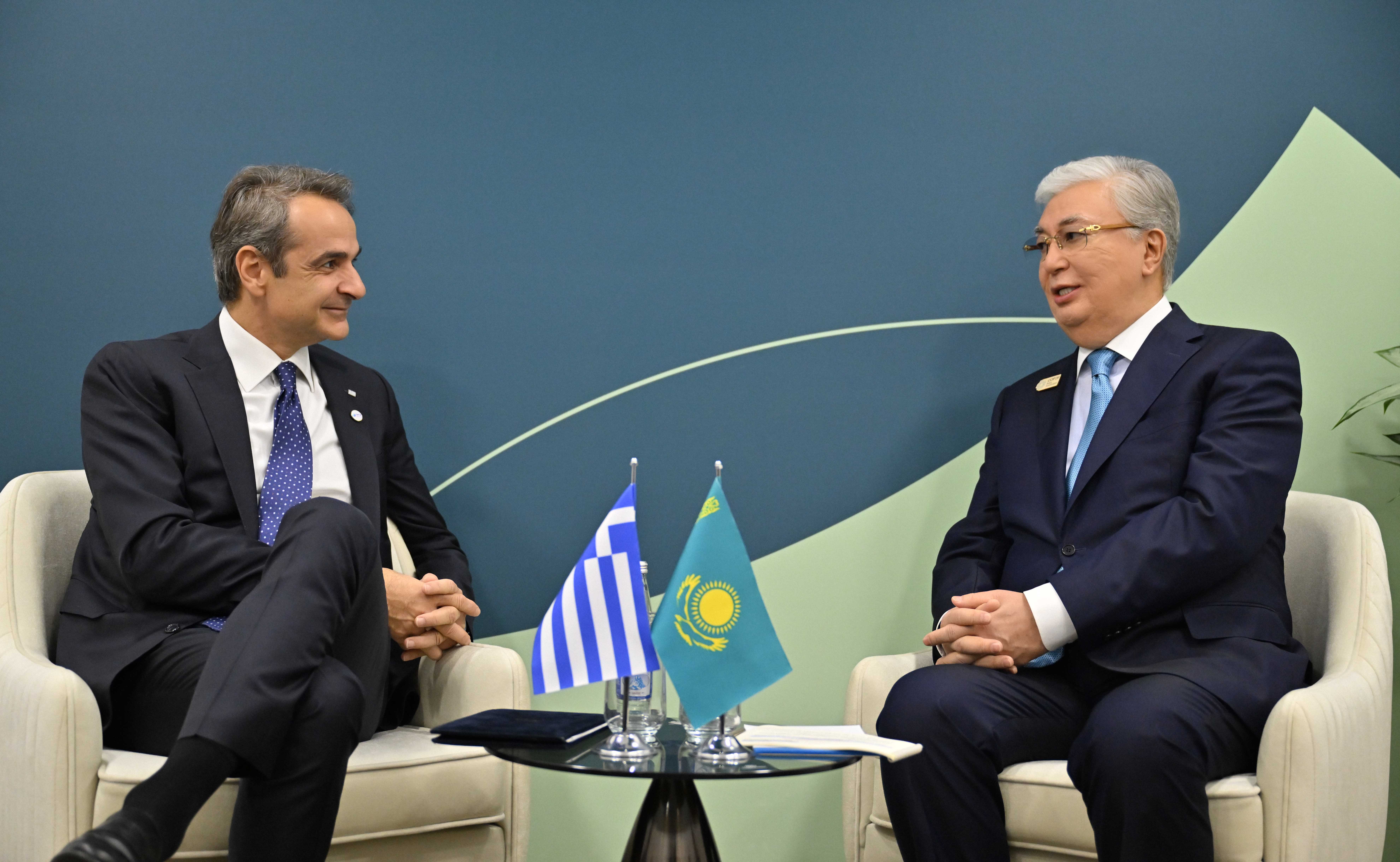 На полях Конференции сторон Рамочной конвенции ООН об изменении климата (COP29) Президент Касым-Жомарт Токаев провел встречу с Премьер-министром Греции Кириакосом Мицотакисом.