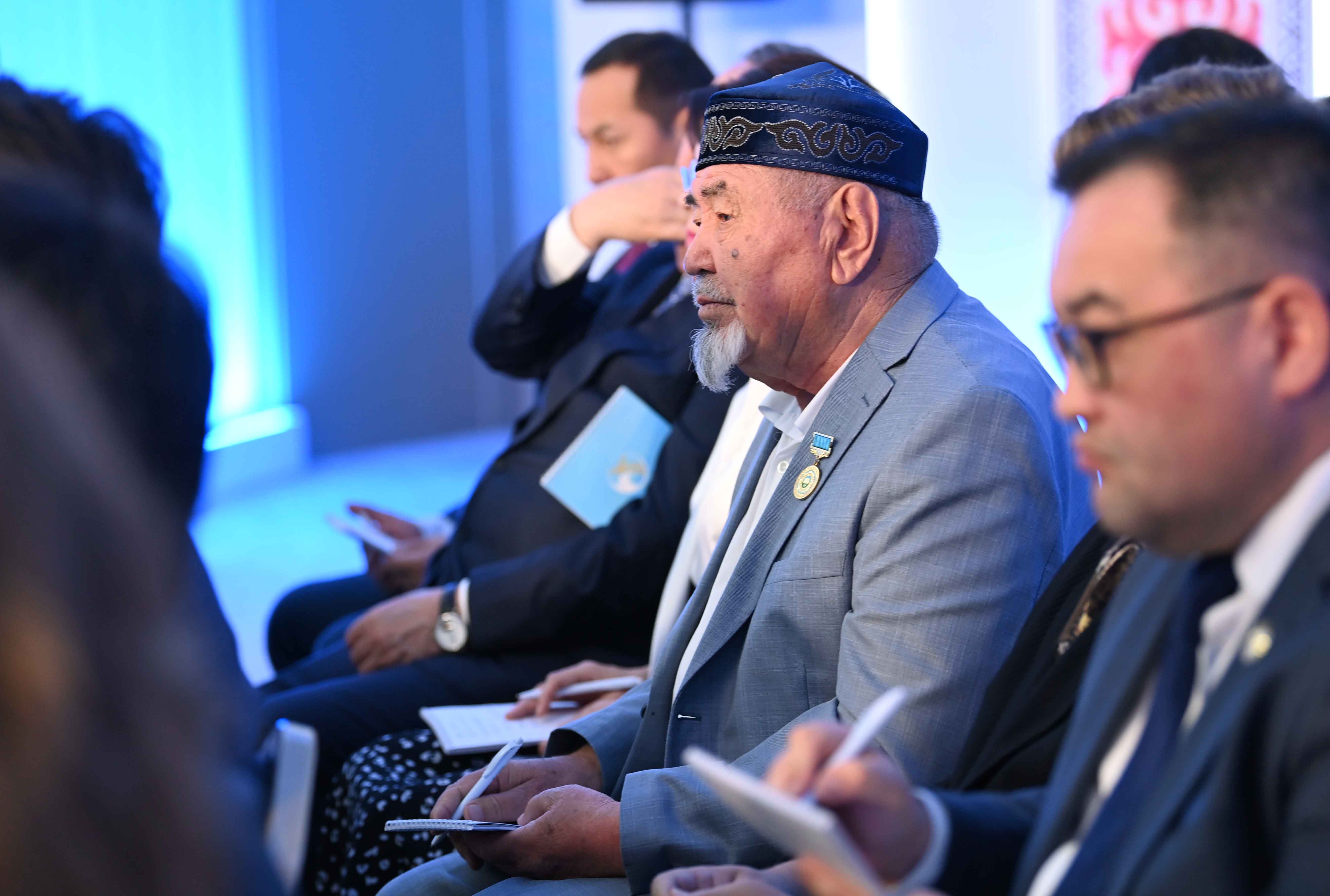 Модератором заседания выступил Государственный советник, заместитель председателя Национального курултая Ерлан Карин. В ходе мероприятия с докладами также выступили члены Национального курултая научный руководитель Центра исследований прикладной экономики, видный общественный деятель Жаксыбек Кулекеев, Қазақстанның Еңбек Ері, Вадим Басин, председатель республиканского общественного объединения «Казахстанский союз юристов» Серик Акылбай, депутат Мажилиса Парламента Жулдыз Сулейменова, ректор Казахской национальной академии искусств имени Т. Жургенова, заслуженный деятель Казахстана Азамат Сатыбалды.