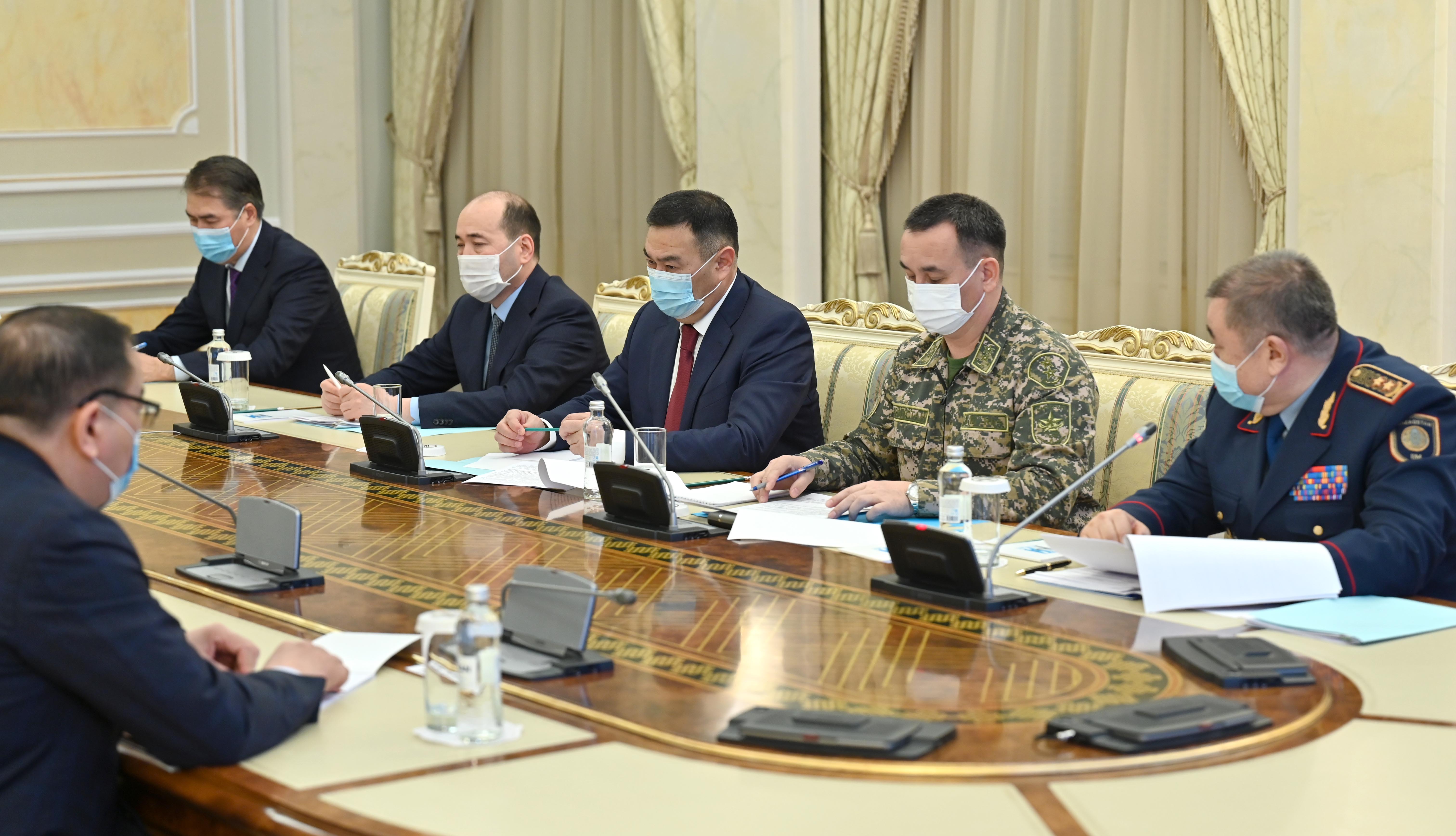 Под председательством Президента Касым-Жомарта Токаева состоялось заседание оперативного штаба, в ходе которого с докладами выступили генеральный прокурор, председатель Комитета национальной безопасности, и.о. министров внутренних дел и обороны.
