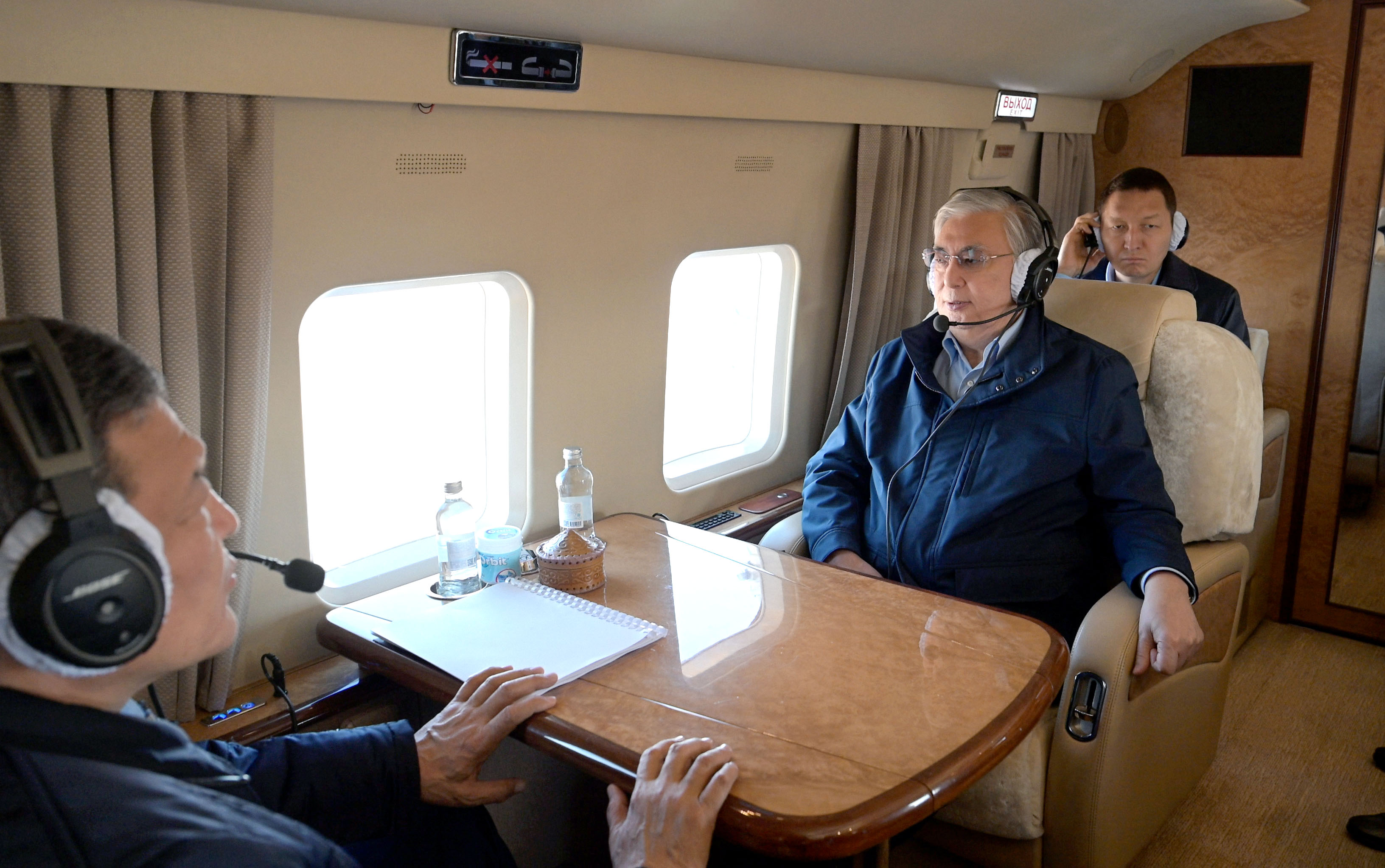 Рабочая поездка Президента Касым-Жомарта Токаева в Северо-Казахстанскую область началась с облета Кызылжарского района, окрестностей Петропавловска, а также Сергеевского водохранилища.