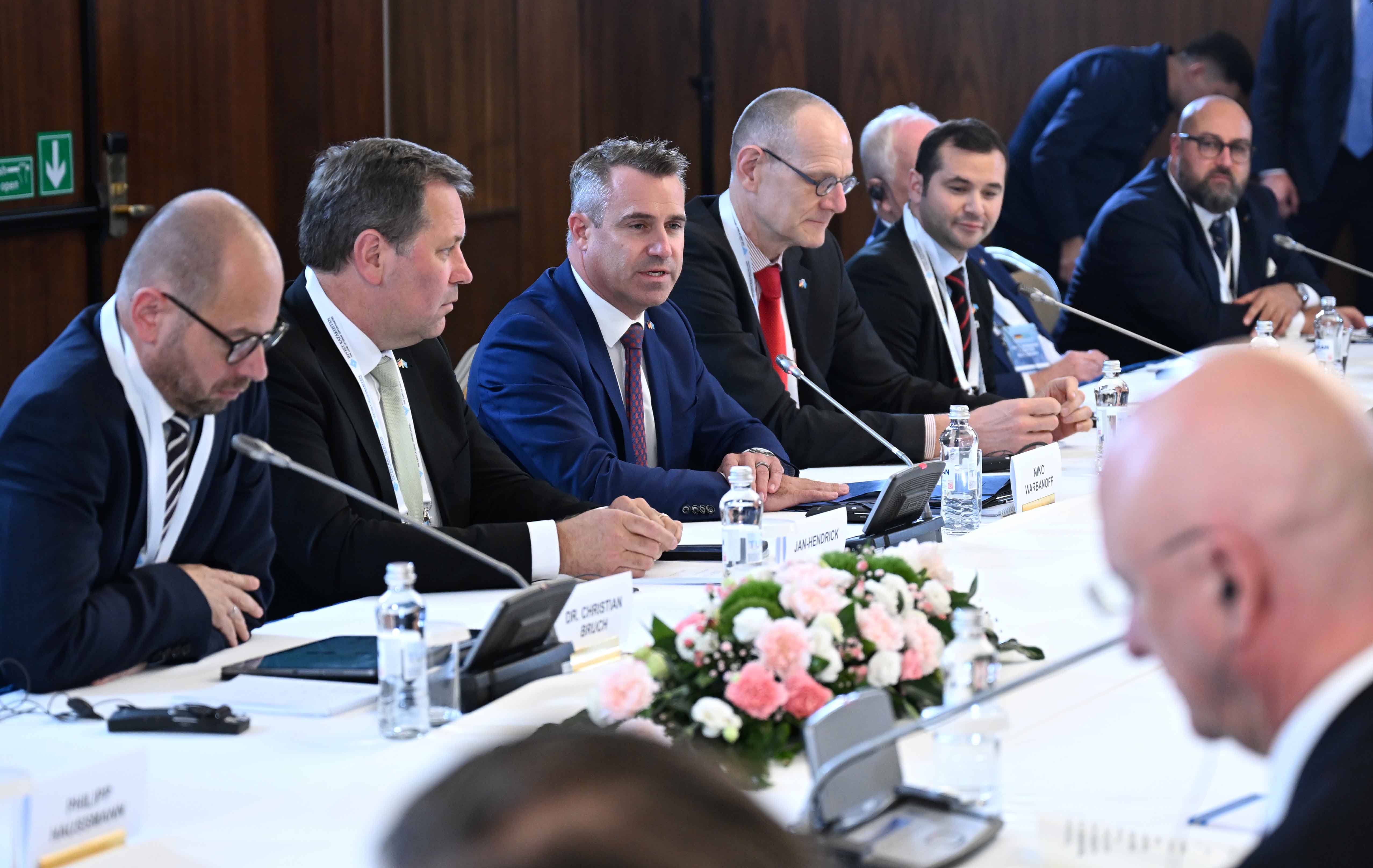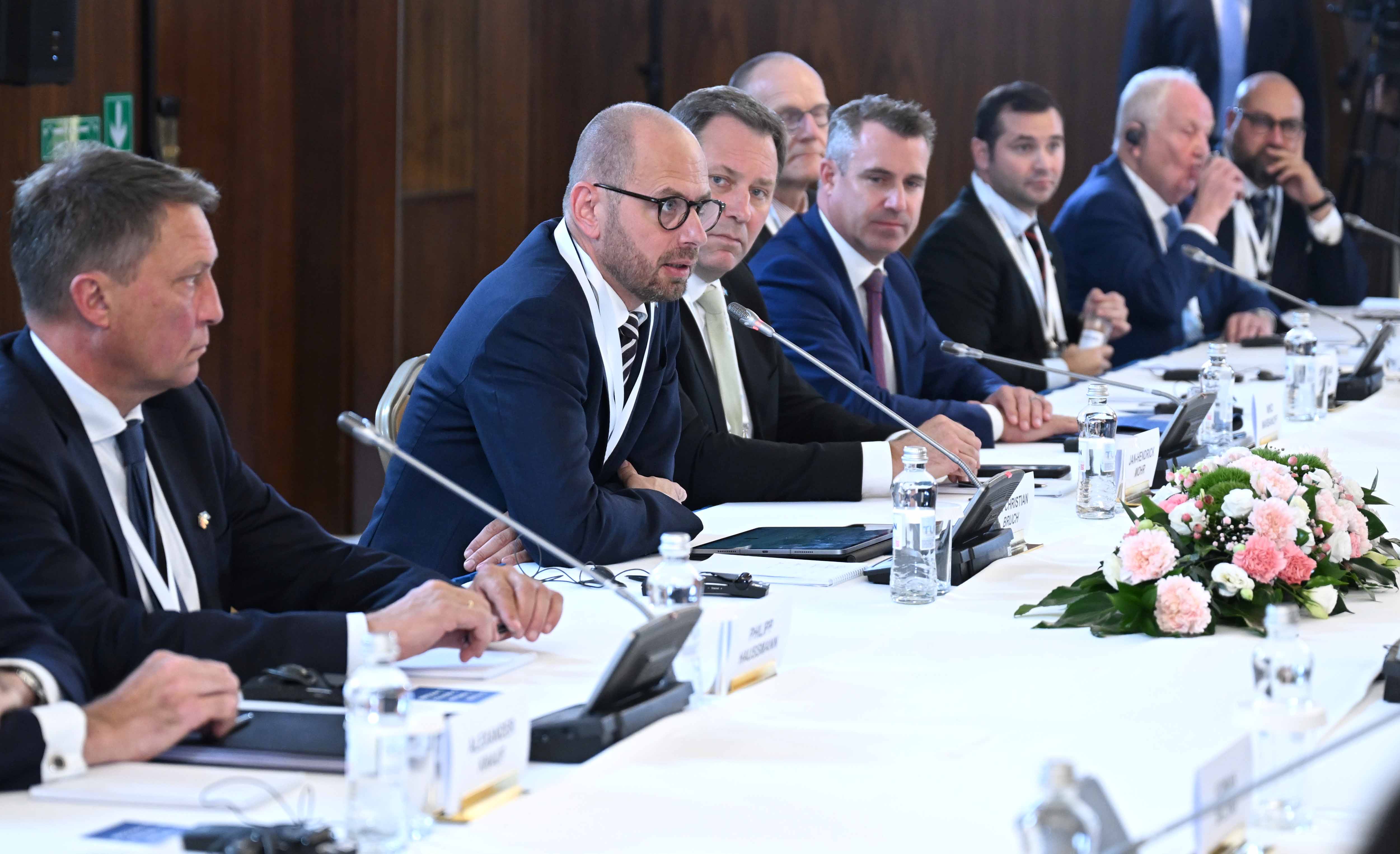На мероприятии присутствовали председатель правления компании Siemens Energy AG, заместитель председателя Восточного комитета германской экономики Кристиан Брух, председатель правления CLAAS Group Ян-Хендрик Мор, председатель исполнительного совета компании DB E.C.O. Group, представитель Рабочей группы по Центральной Азии ВКГЭ Нико Варбанофф, президент SVEVIND Energy GmbH, почетный консул Казахстана в Саксонии Вольфганг Кропп, председатель правления компании Aurubis AG Торальф Хааг, председатель правления компании Siemens Healthineers AG Берндт Монтаг, председатель правления компании GP Günter Papenburg AG Гюнтер Папенбург, председатель правления компании HMS Bergbau AG Дэннис Швиндт, член правления по Международному финансированию KfW Bankengruppe Кристиане Лайбах, представитель управляющих партнеров компании KNAUF Gruppe Александр Кнауф, член правления Herrenknecht AG Мартин-Дэвид Херренкнехт, главный исполнительный директор компании Ernst Klett AG Филипп Хаусманн, генеральный директор компании Rhenus SE & Co. KG Тобиас Бартц.