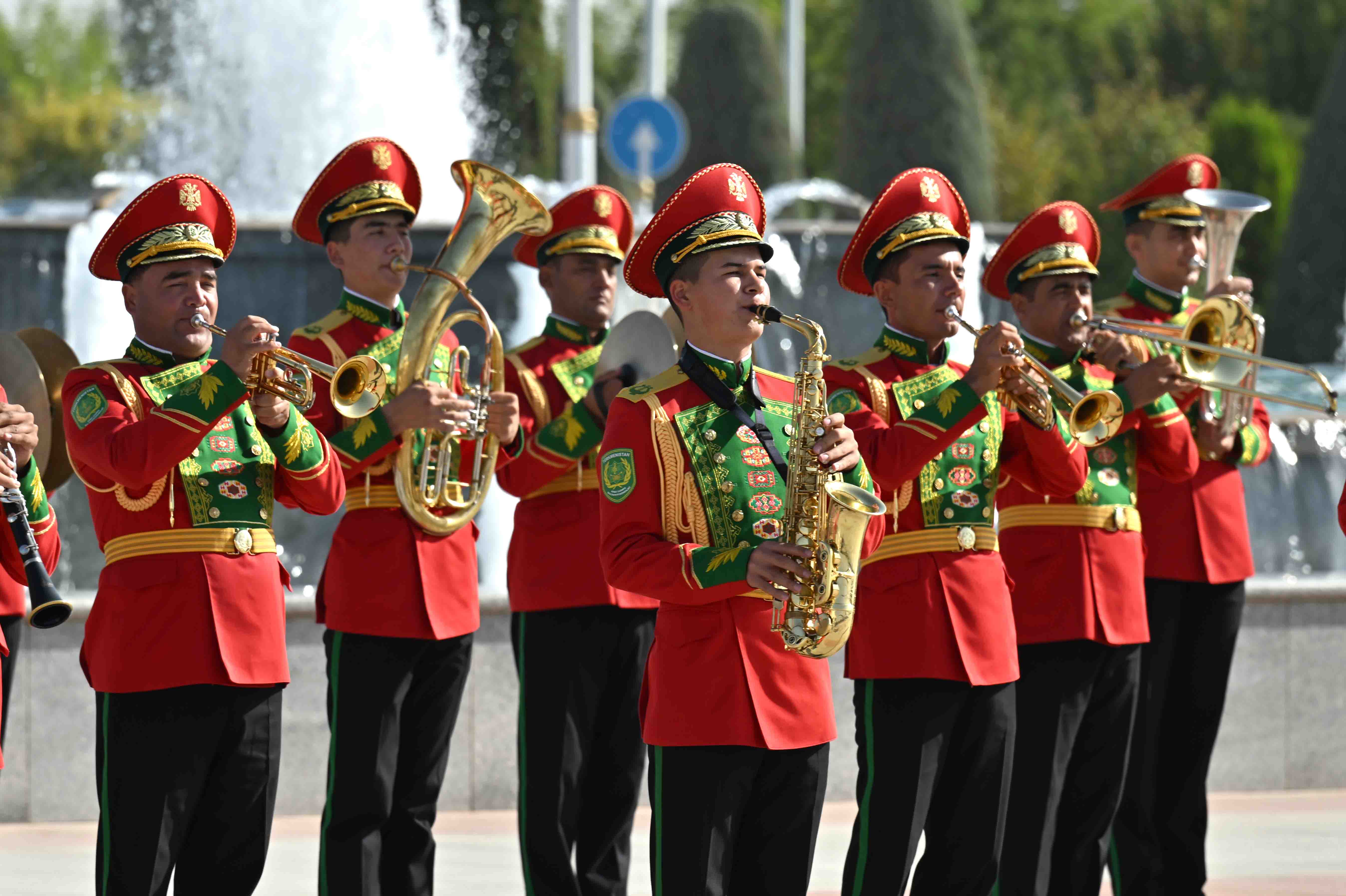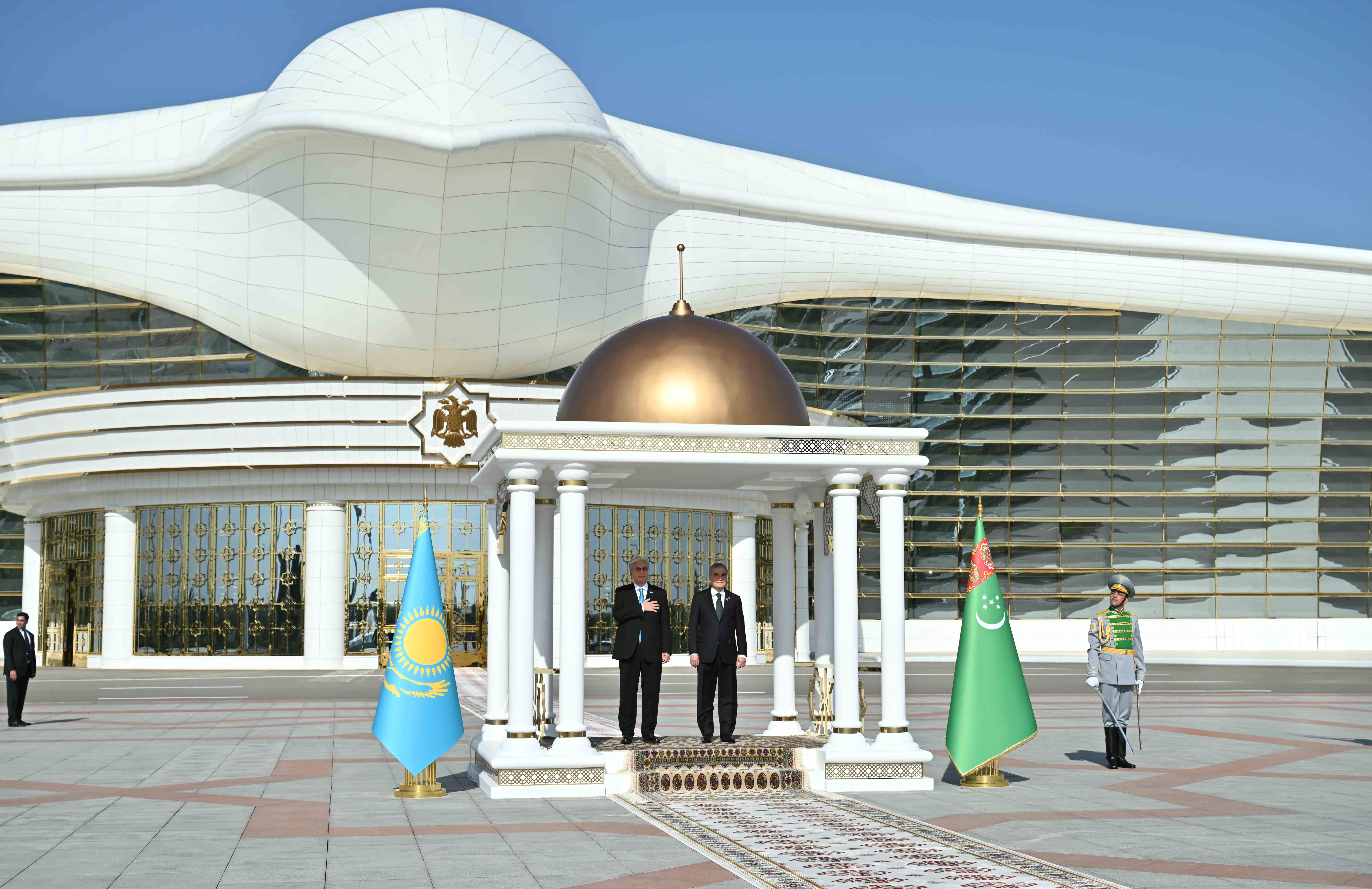 Национальный лидер туркменского народа лично встретил Касым-Жомарта Токаева в аэропорту Ашхабада. У трапа президентского борта была выстроена рота почетного караула, начальник которого отдал приветственный рапорт, затем прозвучали государственные гимны двух стран.