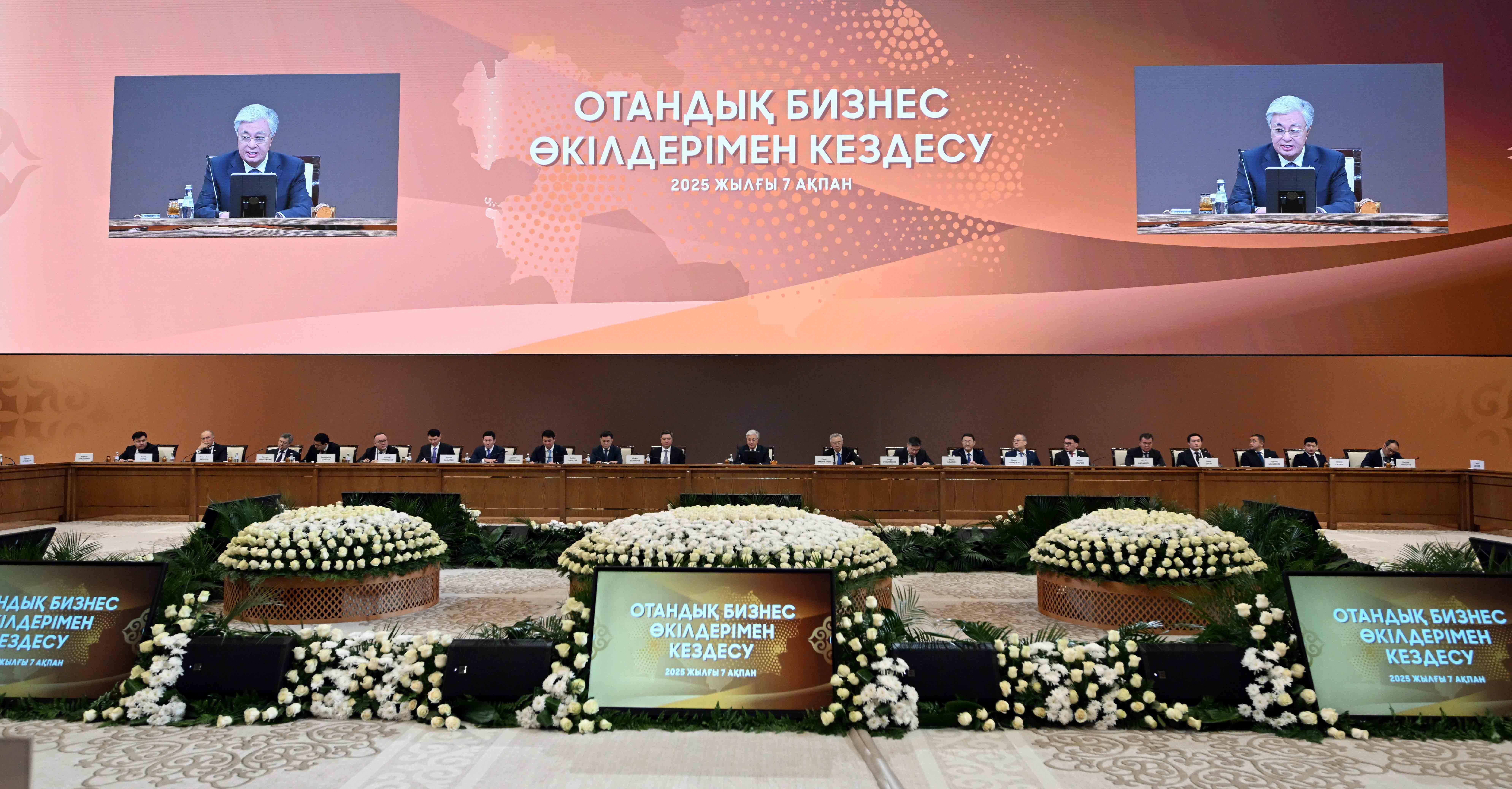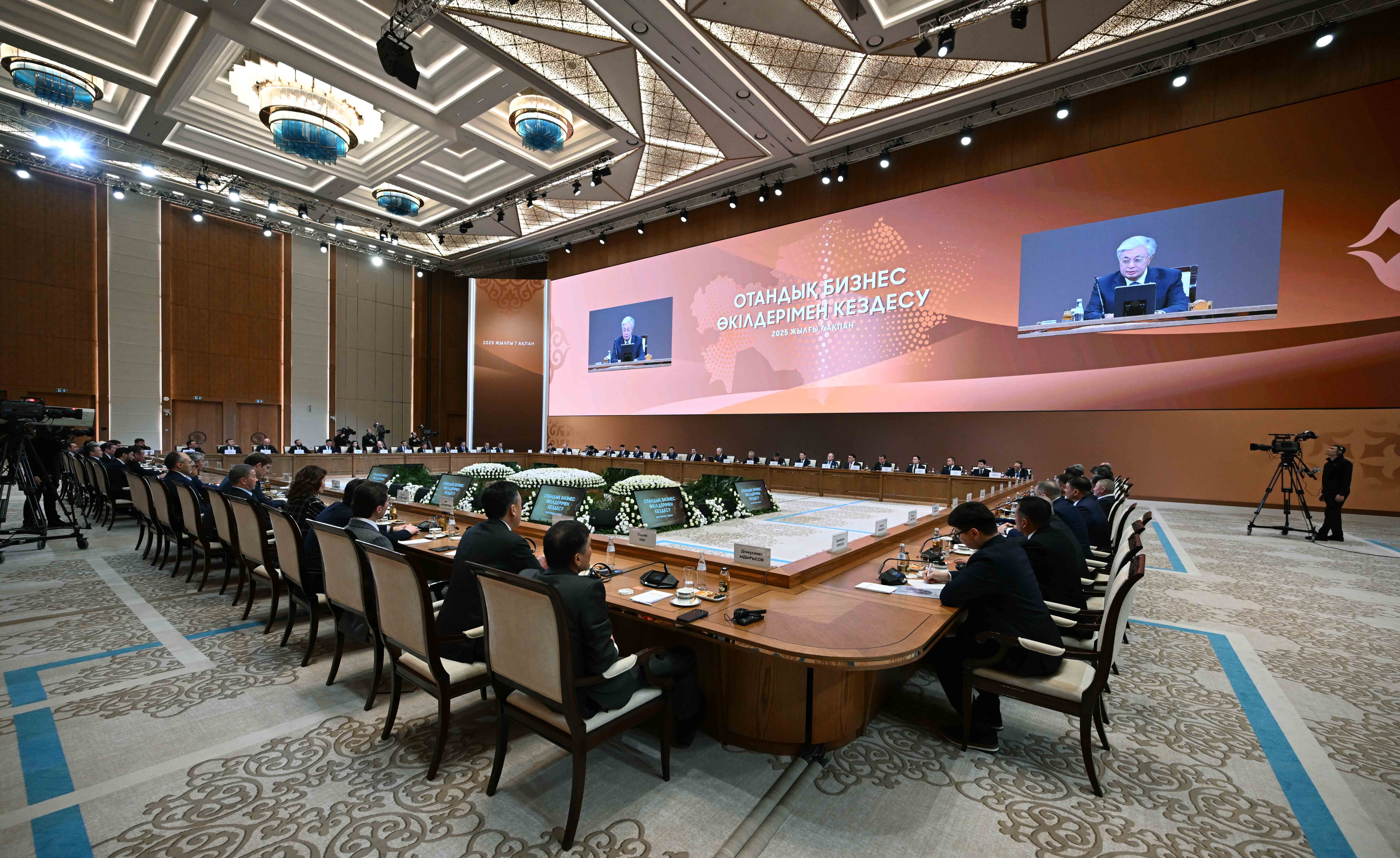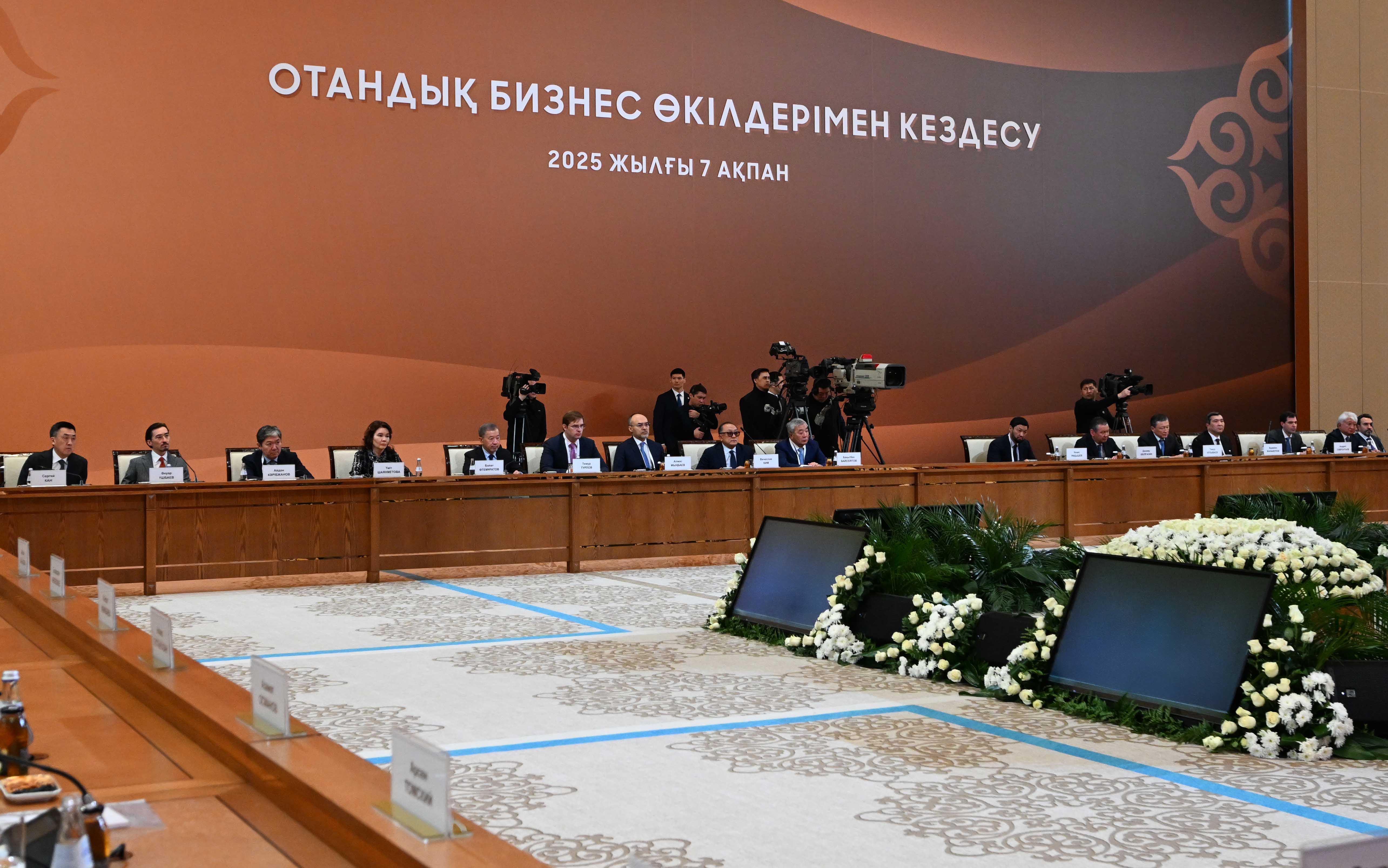 В ходе встречи с докладами выступили заместитель Премьер-министра – министр национальной экономики Серик Жумангарин, президент ТОО «Группа компаний Resmi», АО «RG Brands» Кайрат Мажибаев, председатель совета директоров ТОО «Казахмыс Холдинг» Эдуард Огай, главный исполнительный директор InDrive Арсен Томский, генеральный директор ТОО AUDACIA Express Бакытбек Кадиров, председатель правления АО «Народный Банк Казахстана» Умут Шаяхметова, председатель совета директоров холдинга BI-Group Айдын Рахимбаев, совладелец компании «Karazhal Operating», председатель президиума Национальной конфедерации работодателей Paryz Жумабек Жаныкулов, директор ТОО «Евразия инвест» Иван Георгиади, генеральный директор ТОО «Карагандинский фармацевтический комплекс» Сергей Барон, председатель президиума НПП «Атамекен» Раимбек Баталов.