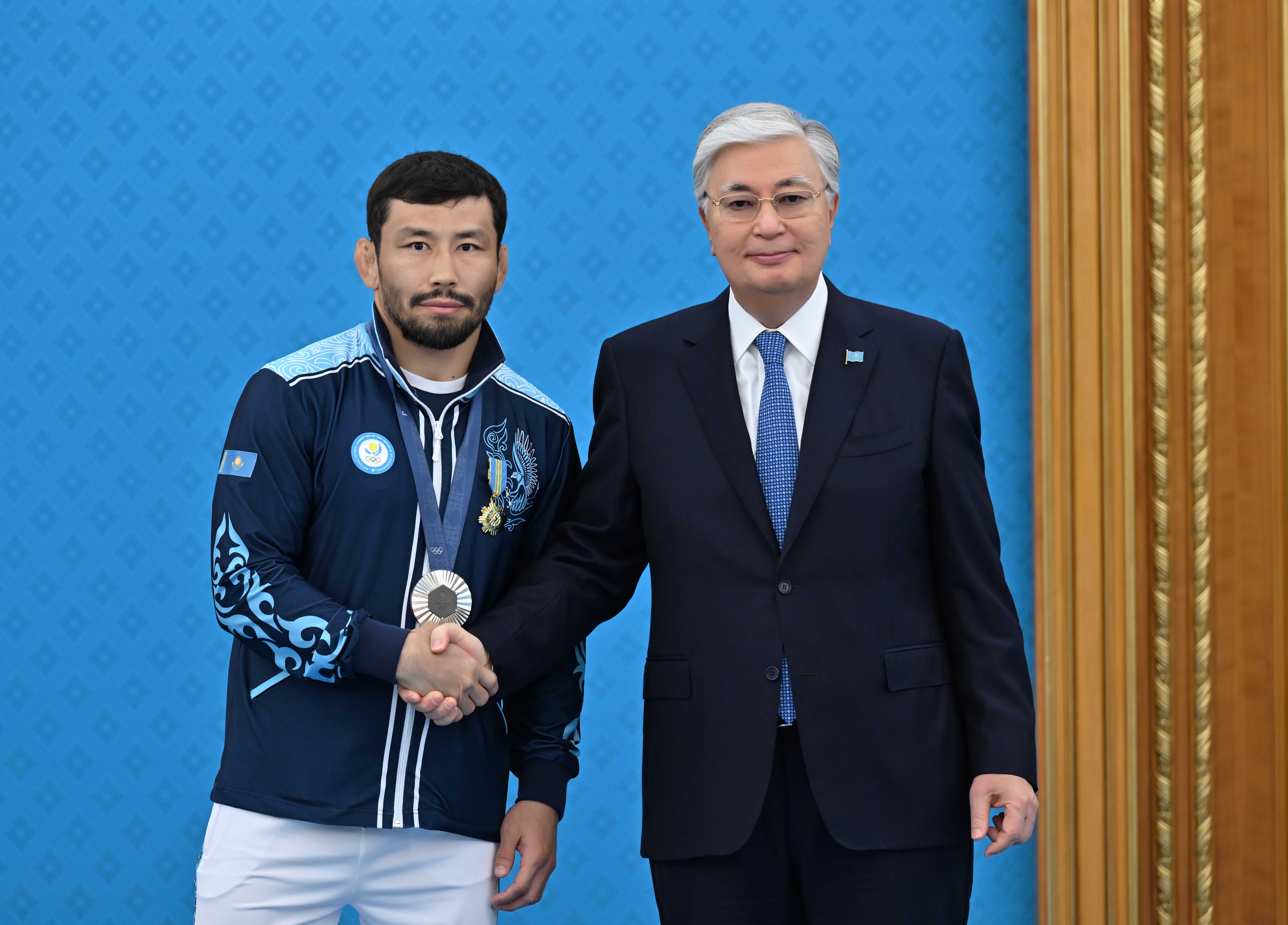 – Историческим достижением также можно назвать серебряную медаль Наримана Курбанова. Впервые представитель отечественной гимнастики поднялся на олимпийский пьедестал. Замечательно выступили в Париже Демеу Жадыраев и Нурбек Оралбай. Наши стрелки Александра Ле и Ислам Сатпаев завоевали бронзу в стрельбе из пневматической винтовки. Это первая за 28 лет награда нашей страны в этом виде спорта. Дзюдоист Гусман Кыргызбаев и представительница сборной по боксу Назым Кызайбай вошли в число призеров. Каждая страна отправляет на Олимпиаду своих сильнейших спортсменов. Одержать победу на международном турнире и стать лучшим среди тысяч атлетов – задача не из легких. В таких соревнованиях планетарного масштаба каждая медаль в копилку страны имеет особое значение. Поэтому сегодня я хотел бы выразить искреннюю благодарность всем нашим спортсменам, завоевавшим награды на Олимпийских играх. Победы на аренах достигаются большими усилиями не только спортсменов, но и многих специалистов этой сферы. Выражаю благодарность тренерам и другим профессионалам, внесшим вклад в подготовку олимпийцев. Руководители Национального олимпийского комитета придали новый импульс развитию международного сотрудничества. В ответственные моменты вы были рядом с нашими спортсменами и оказывали им необходимую поддержку. Убежден, Национальный олимпийский комитет продолжит начатую работу и добьется конкретных результатов в будущем, – отметил Глава государства.