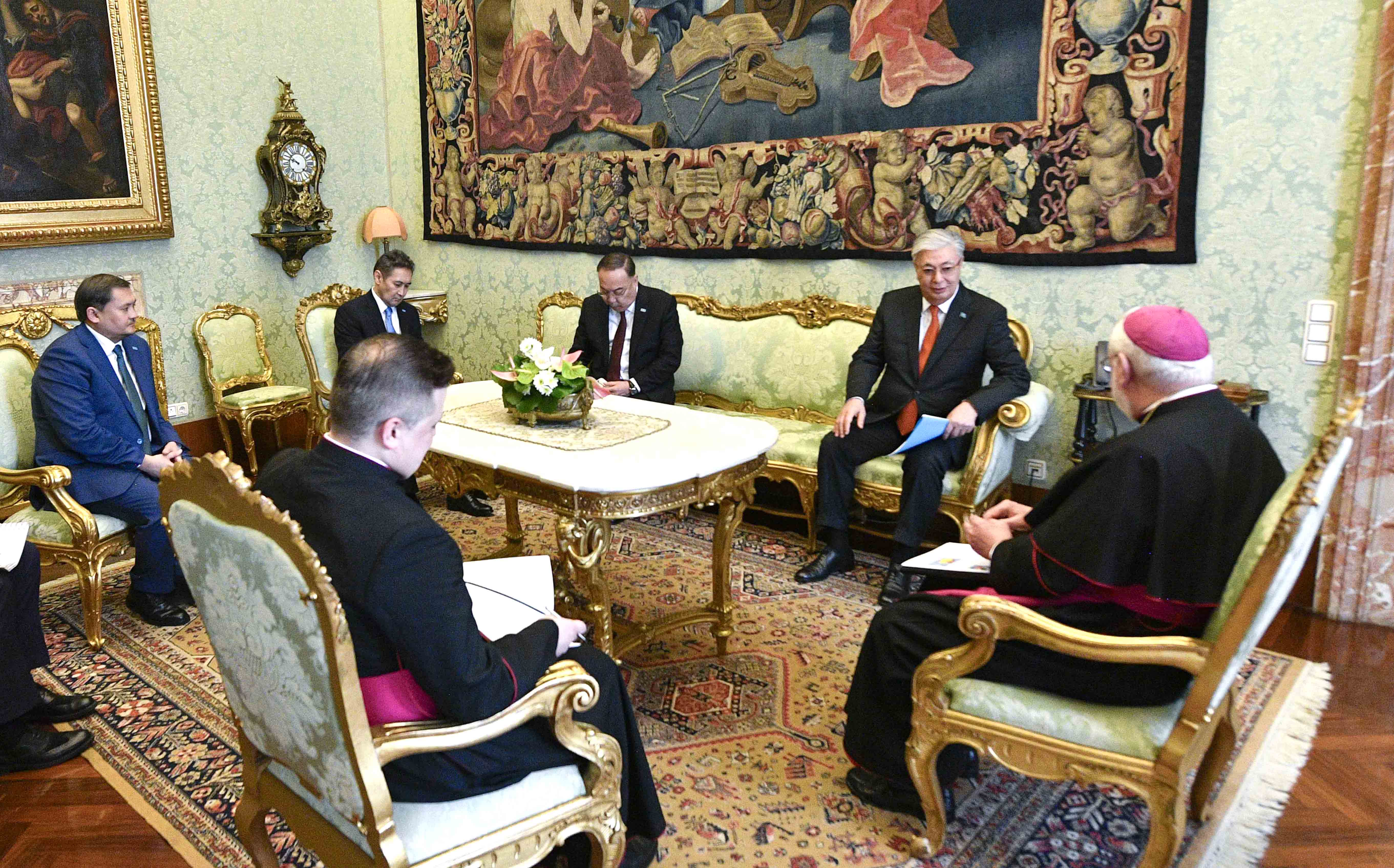 Касым-Жомарт Токаев поблагодарил архиепископа Пола Галлахера за готовность Библиотеки Ватикана и Апостольского архива на безвозмездной основе предоставить казахстанским ученым возможность изучить исторические материалы. Он также приветствовал сотрудничество Национального научного центра материнства и детства с Ватиканским педиатрическим госпиталем Bambino Gesu.