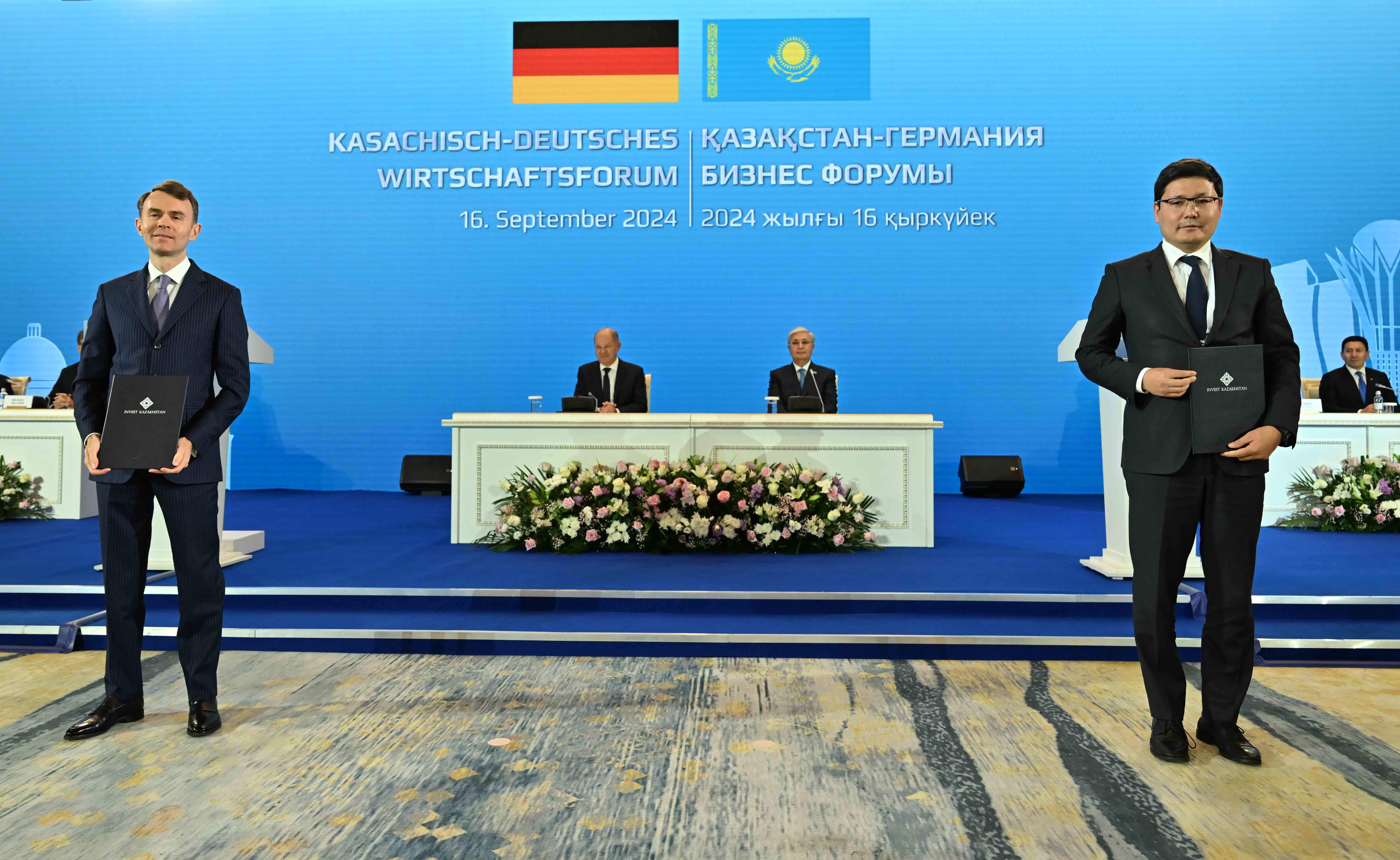 По итогам форума в присутствии Главы государства Касым-Жомарта Токаева и Канцлера ФРГ Олафа Шольца состоялся обмен следующими документами, подписанными в рамках бизнес-форума: