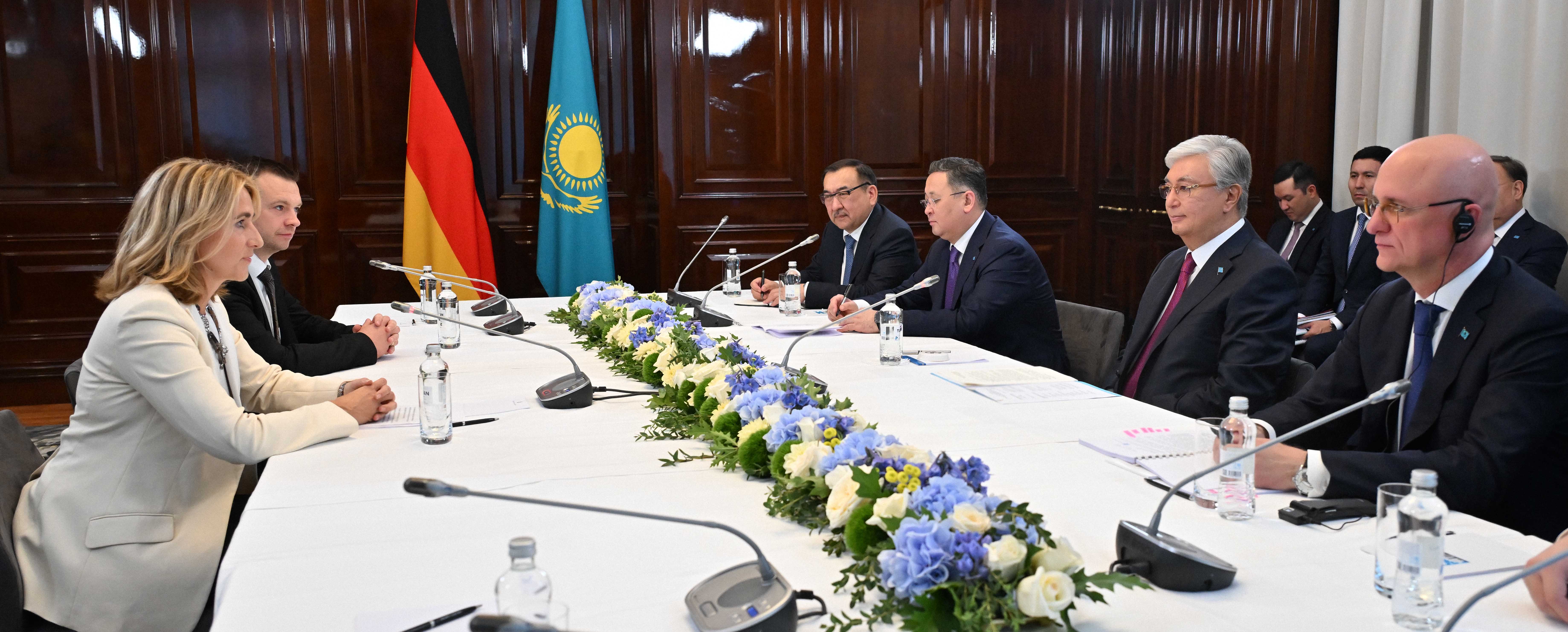 Касым-Жомарт Токаев был проинформирован о подписании Соглашения о финансовом сотрудничестве между Банком развития Казахстана и Банком Helaba по финансированию строительства химического завода по производству цианида натрия компанией AltynAlmas Reagents на сумму до 100 млн евро.
