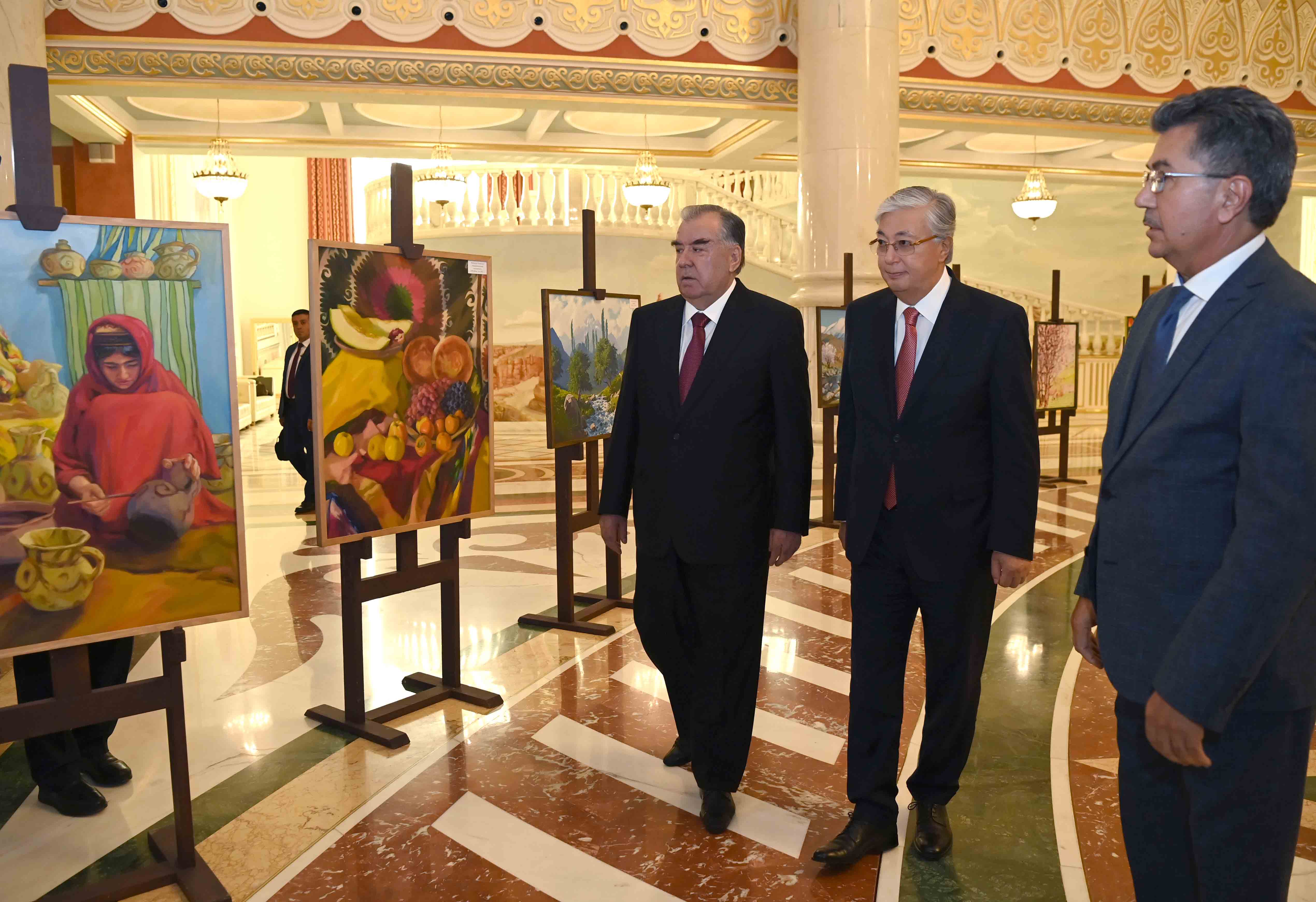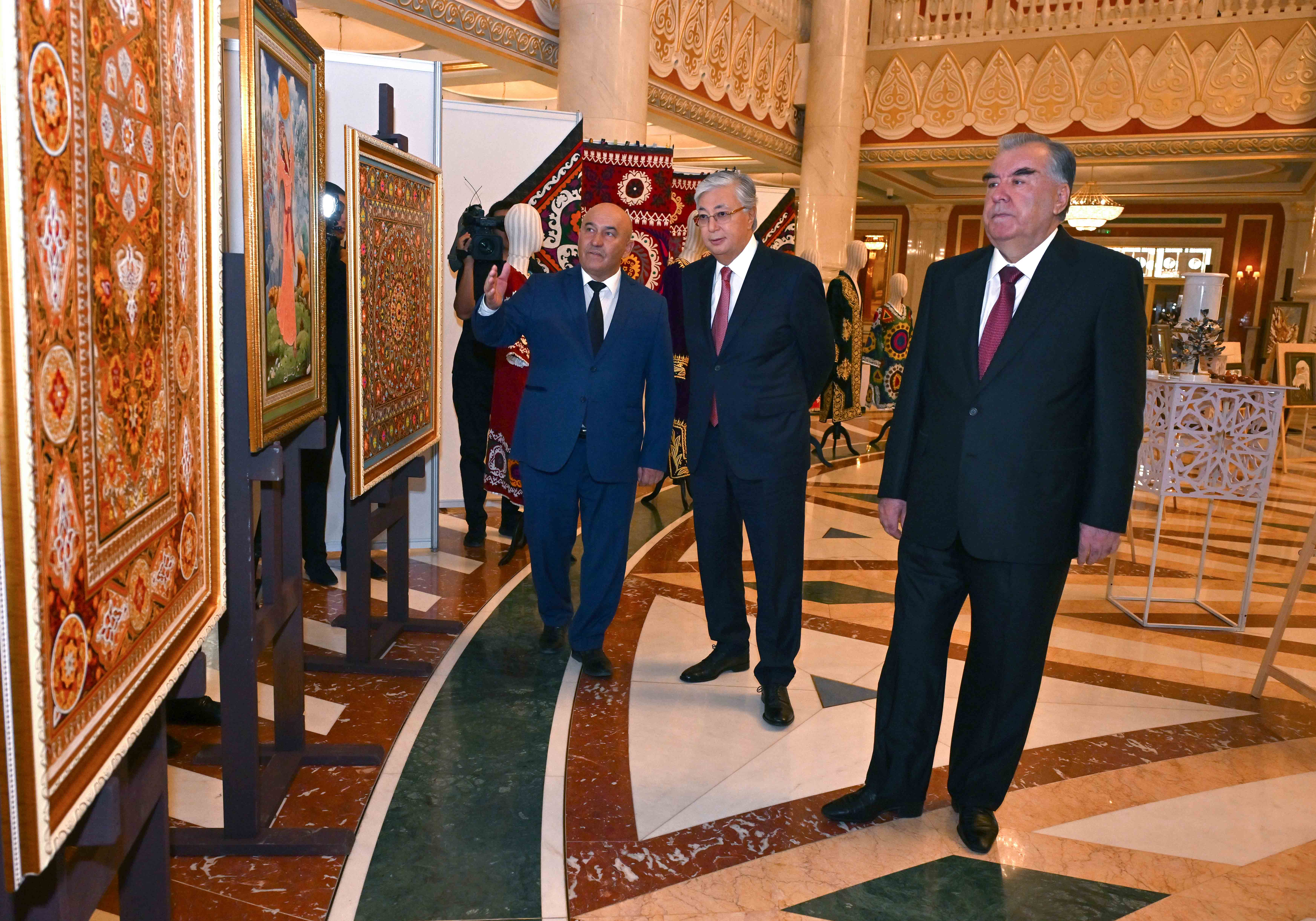 В рамках мероприятия Касым-Жомарт Токаев и Эмомали Рахмон осмотрели выставку народного творчества Таджикистана, организованную  в театре  «Астана Опера». В экспозицию вошли более 200 ремесленных изделий, изготовленных из камня, дерева, глины и драгоценных металлов. Также были представлены национальные костюмы с использованием традиционных орнаментов, картины известных таджикских художников и фотографии знаковых объектов Таджикистана.