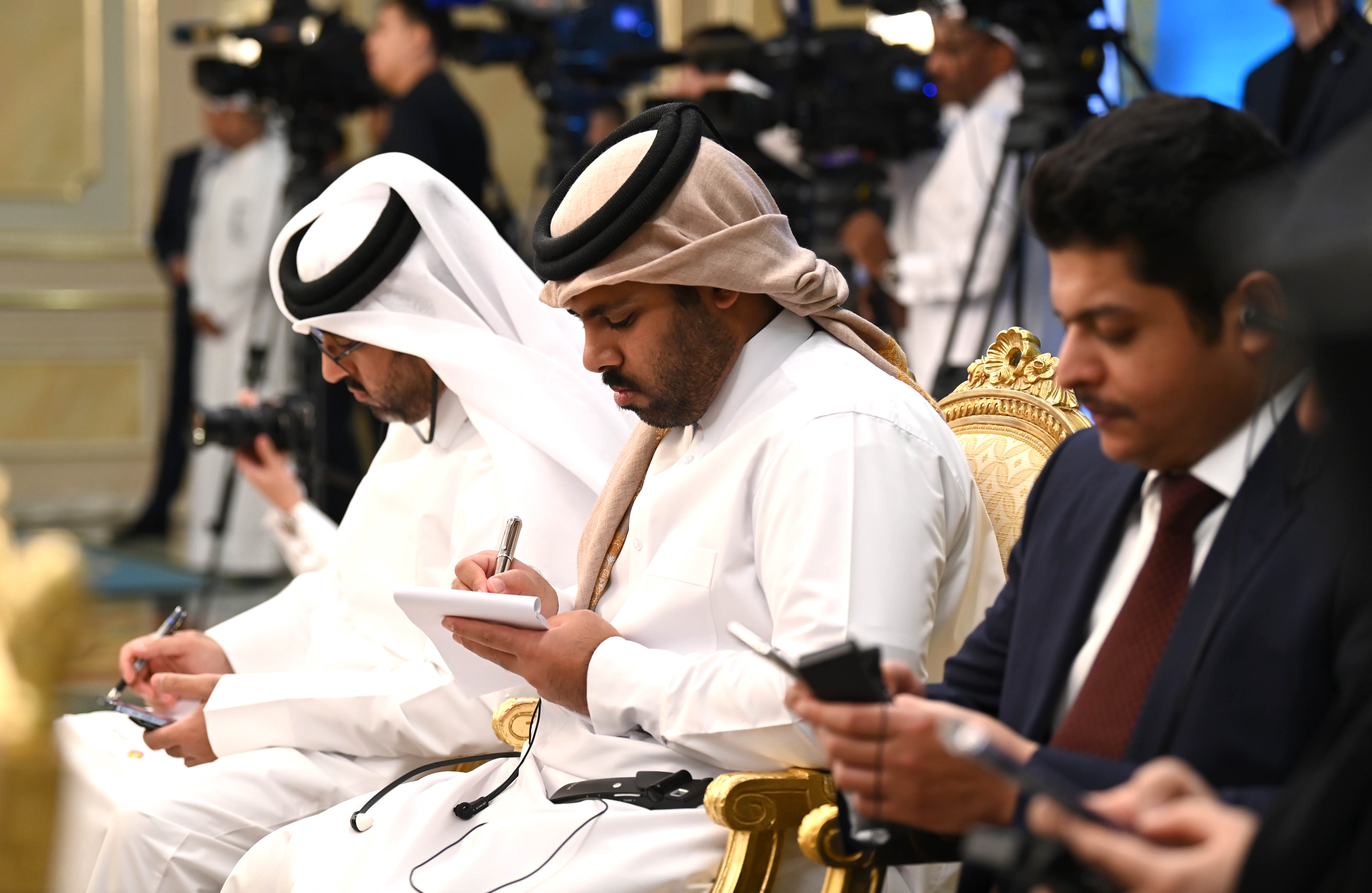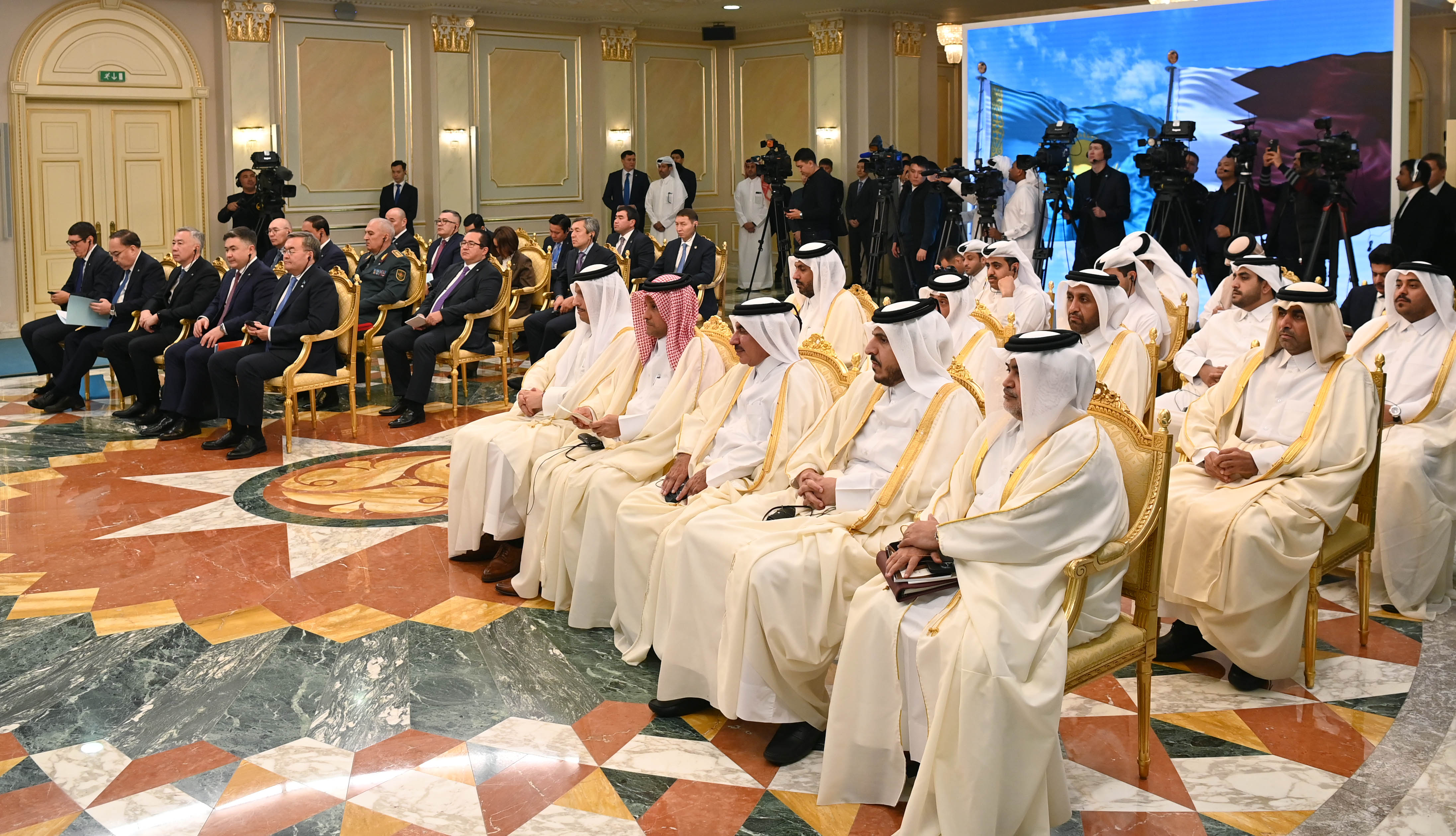 По окончании переговоров в узком и расширенном форматах Глава нашего государства Касым-Жомарт Токаев и Эмир Государства Катар шейх Тамим бен Хамад Аль Тани провели брифинг для представителей средств массовой информации.