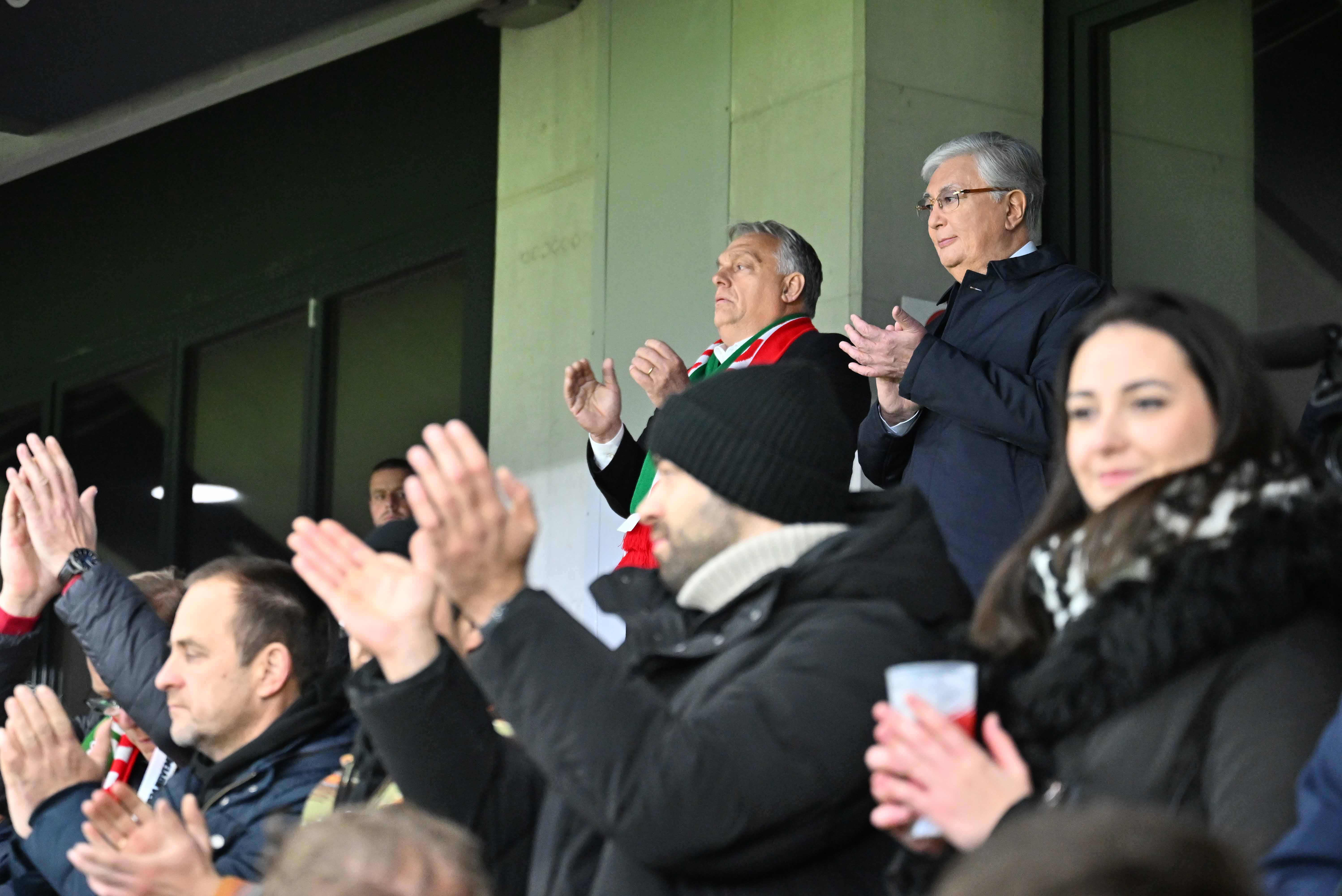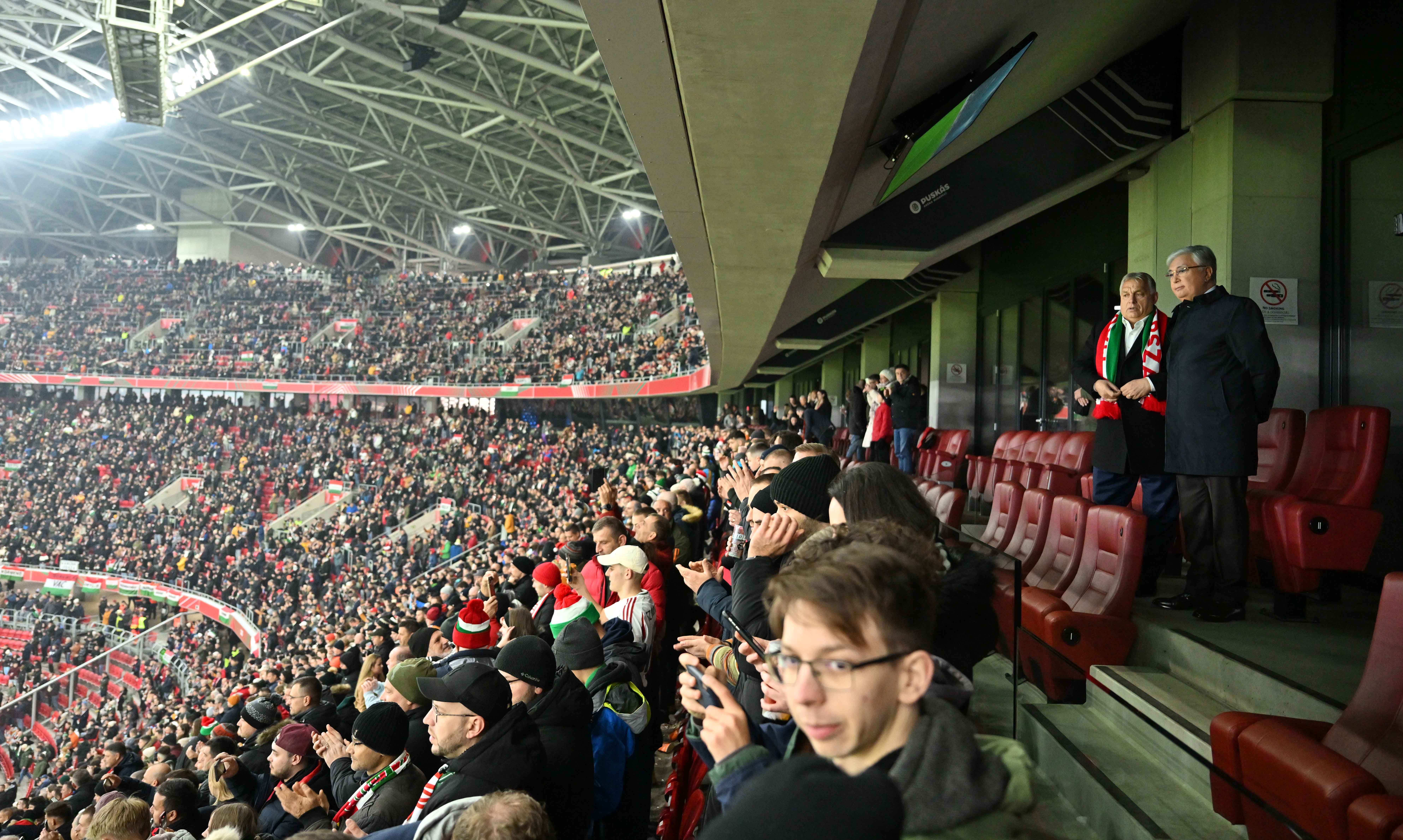 г.Будапешт, Венгрия Президент Касым-Жомарт Токаев, прибывший с государственным визитом в Будапешт, и Премьер-министр Виктор Орбан посетили футбольный матч сборных Венгрии и Германии в Лиге наций УЕФА, который проходит на стадионе Puskas Arena Park.