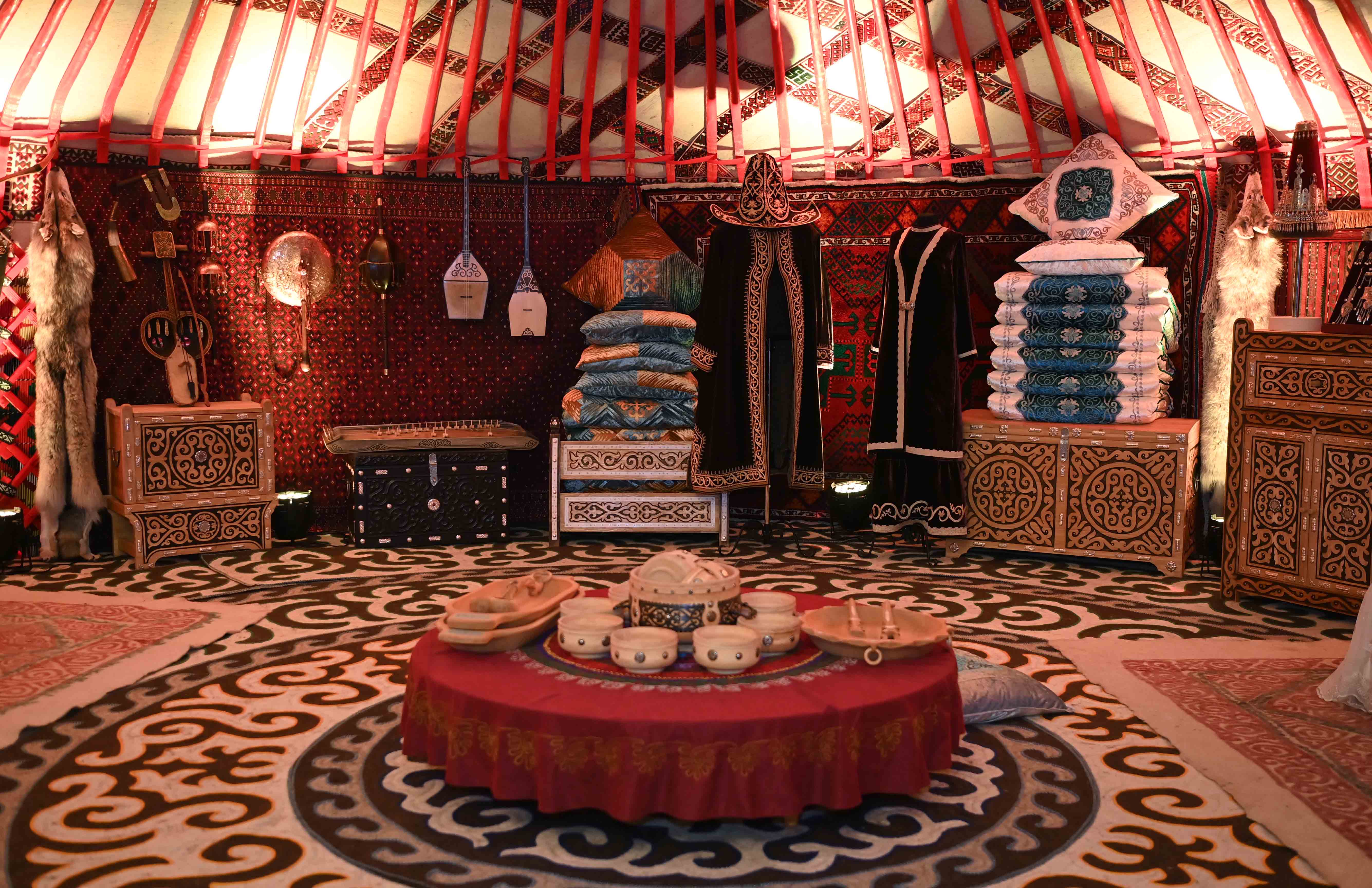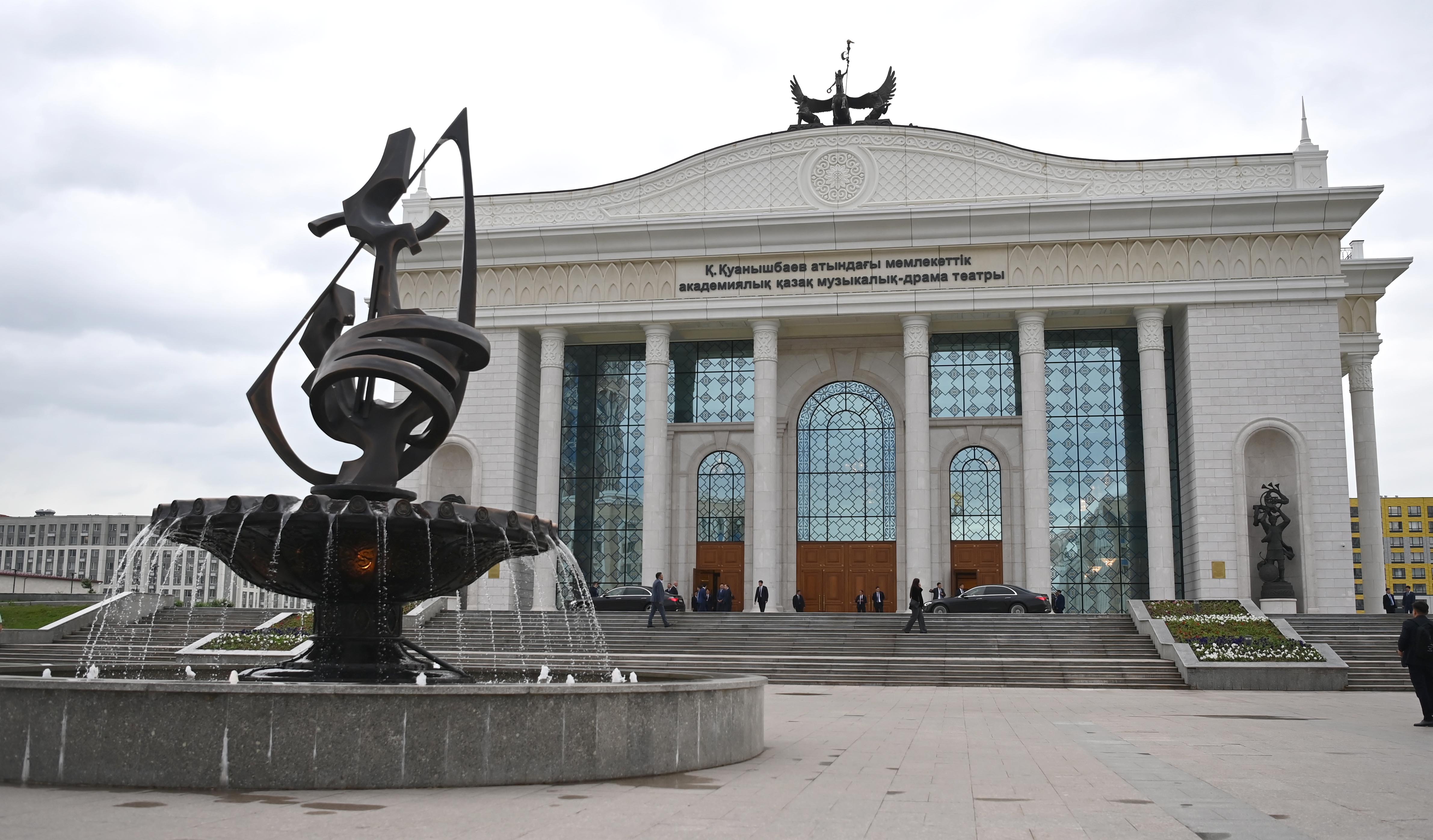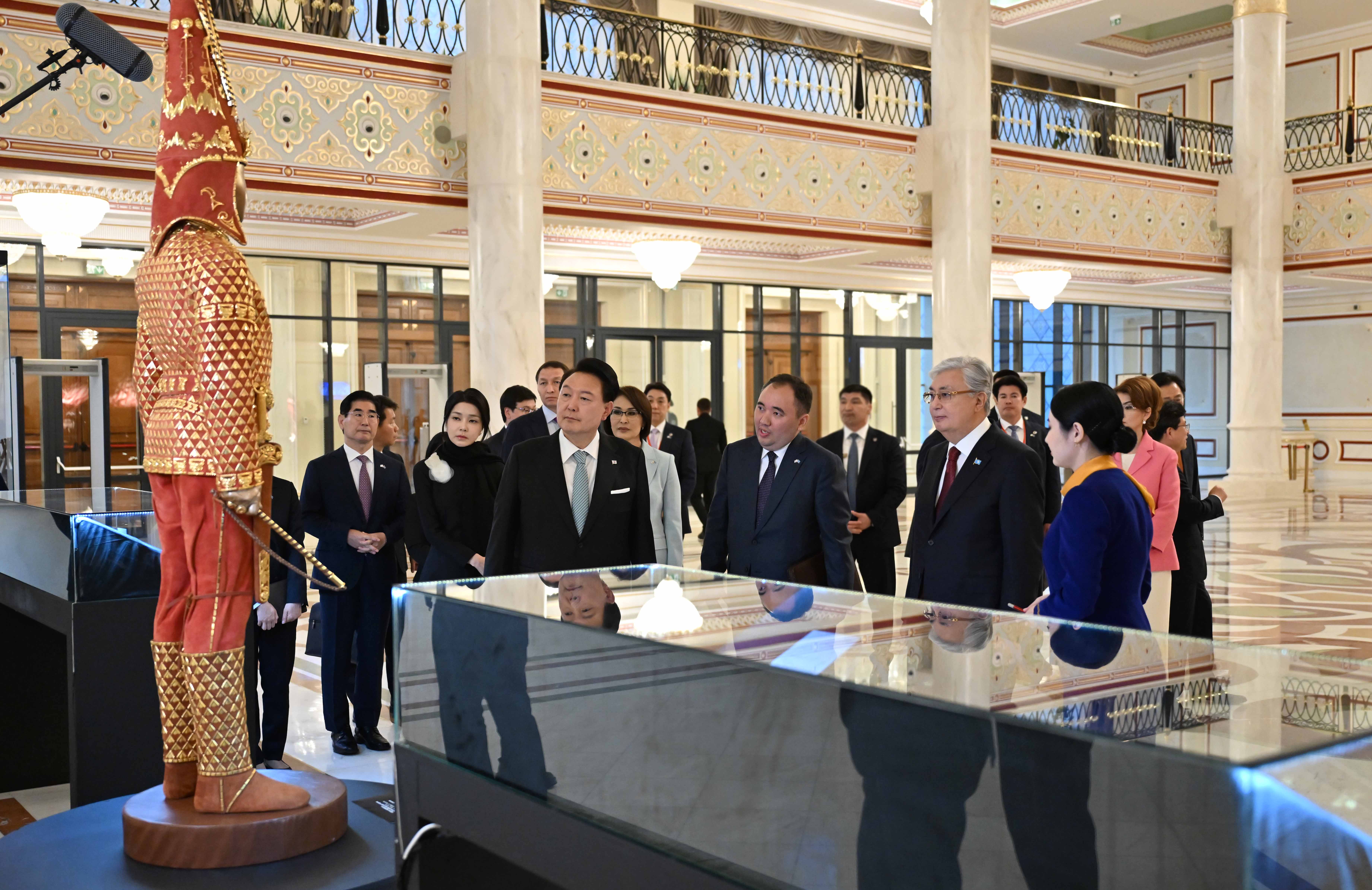 Перед началом мероприятия лидеры двух стран посетили выставку «Ұлы дала алтыны» («Золото Великой степи»), организованную в фойе Казахского национального музыкально-драматического театра имени Калибека Куанышбаева.